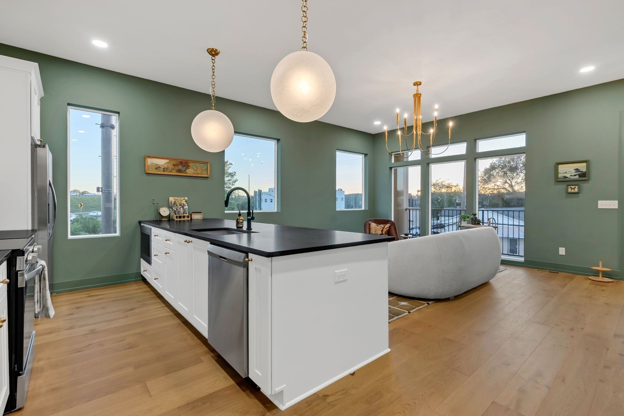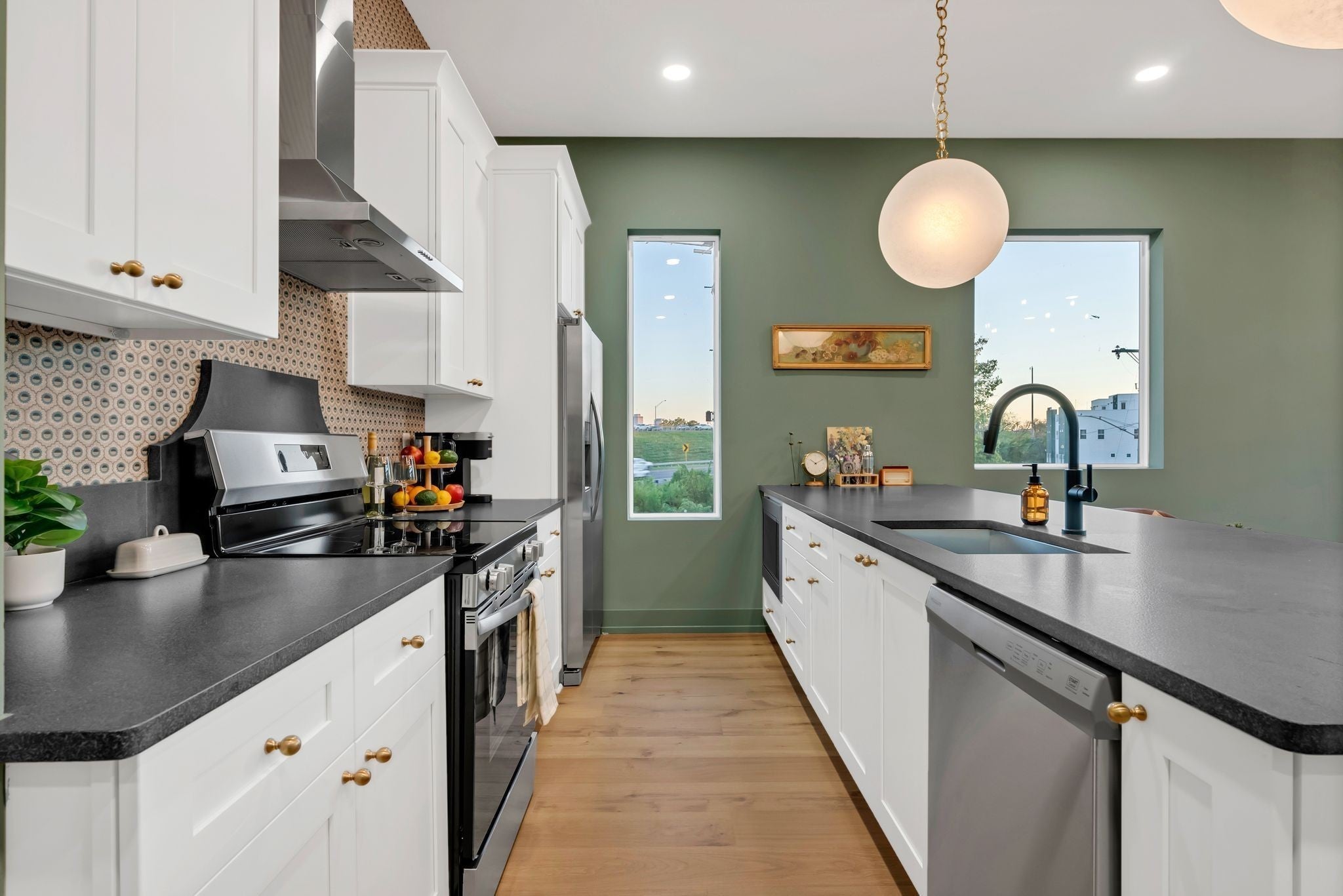 - Gas Range, Dishwasher, Disposal, Microwave, Refrigerator, Stainless Steel Appliance(s)