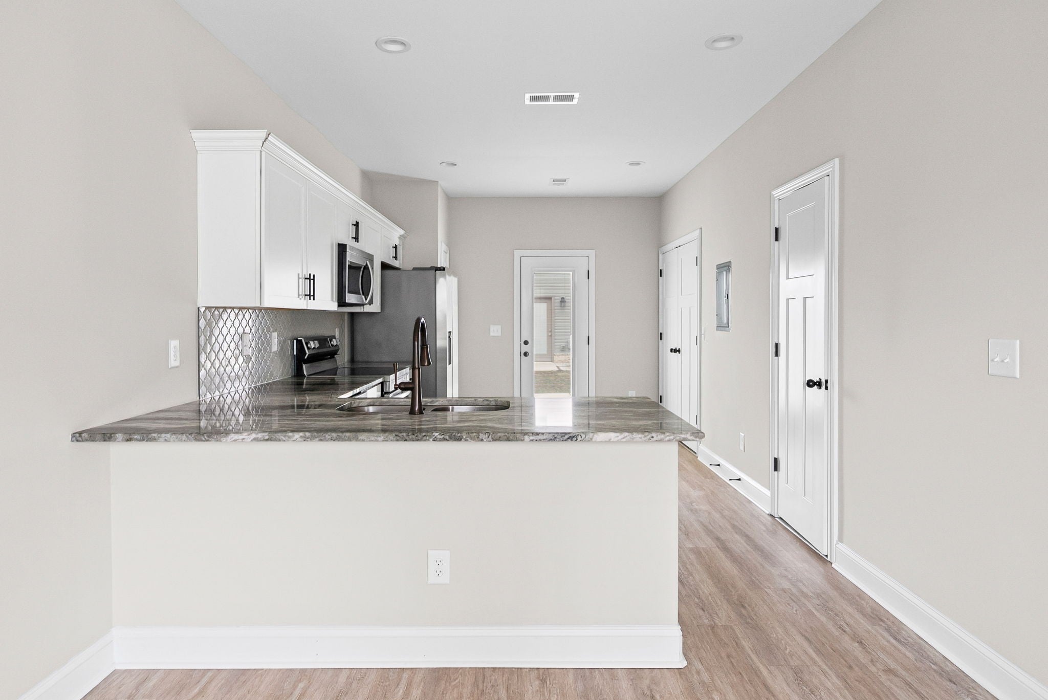 Welcome to this beautifully designed 2-bedroom, 2.5-bath townhome located in a quiet community just minutes from Fort Campbell and nearby shopping centers. Enjoy an open-concept kitchen and living room, perfect for relaxing or entertaining. The kitchen features spacious countertops, ample cabinet storage, granite countertops, and a stylish tiled backsplash. Both bedrooms are located upstairs, each with its own private full bathroom and ceiling fans for added comfort. A convenient half bath is located downstairs for guests. Self-guided tours are available, making it easy to view on your own schedule! Don’t miss your chance to live in a peaceful community with modern finishes and a prime location - schedule your tour today!