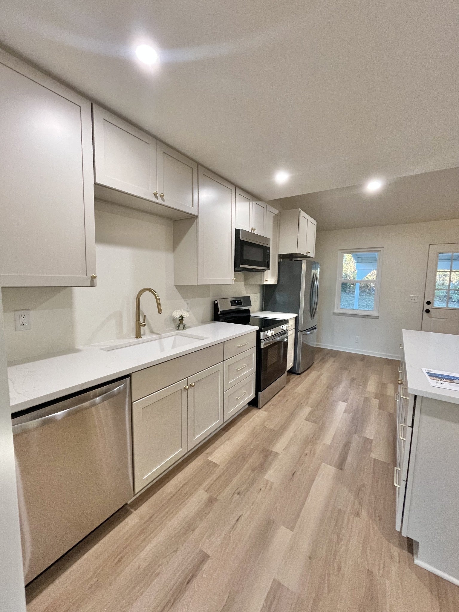 - Electric Range, Dishwasher, Microwave, Refrigerator, Stainless Steel Appliance(s)