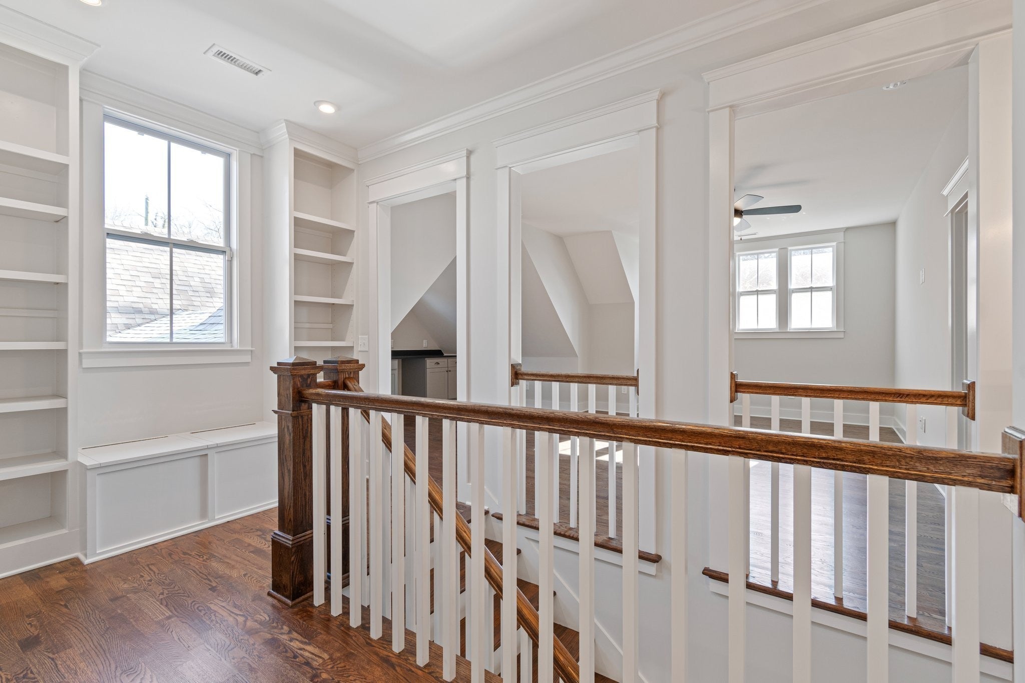 Fantastic location within minutes to Vanderbilt, West End, Hillsboro Village, Love Circle Park, and Mid-town! Walkable neighborhood with such charm, yet so close to all the city has to offer, with boutiques and dining nearby! Situated on a large corner lot, in a 6 home boutique luxury community, this custom built craftsman architectural gem boasts stained wood ceilings with white coffered beam detail, impressive kitchen with a Thermadore gas range, and a stunning Primary Suite on the main level/garage level. The Primary luxury bath has two walk in closets and direct access to the laundry room. Bonus room with wet bar upstairs, along with three generously sized bedrooms and two bathrooms. Lower level media room/den featuring stained concrete floors with access to the lower level porch. Freshly painted throughout! Perfect opportunity for an investment so close to Vanderbilt! Seller offering to pay one year of HOA dues!