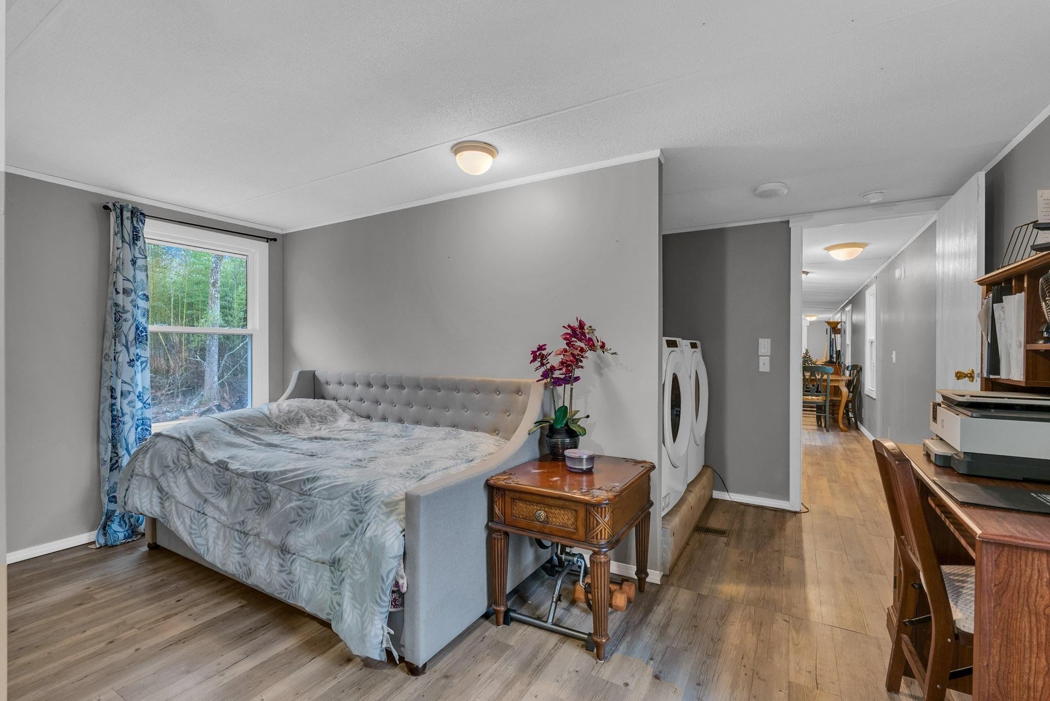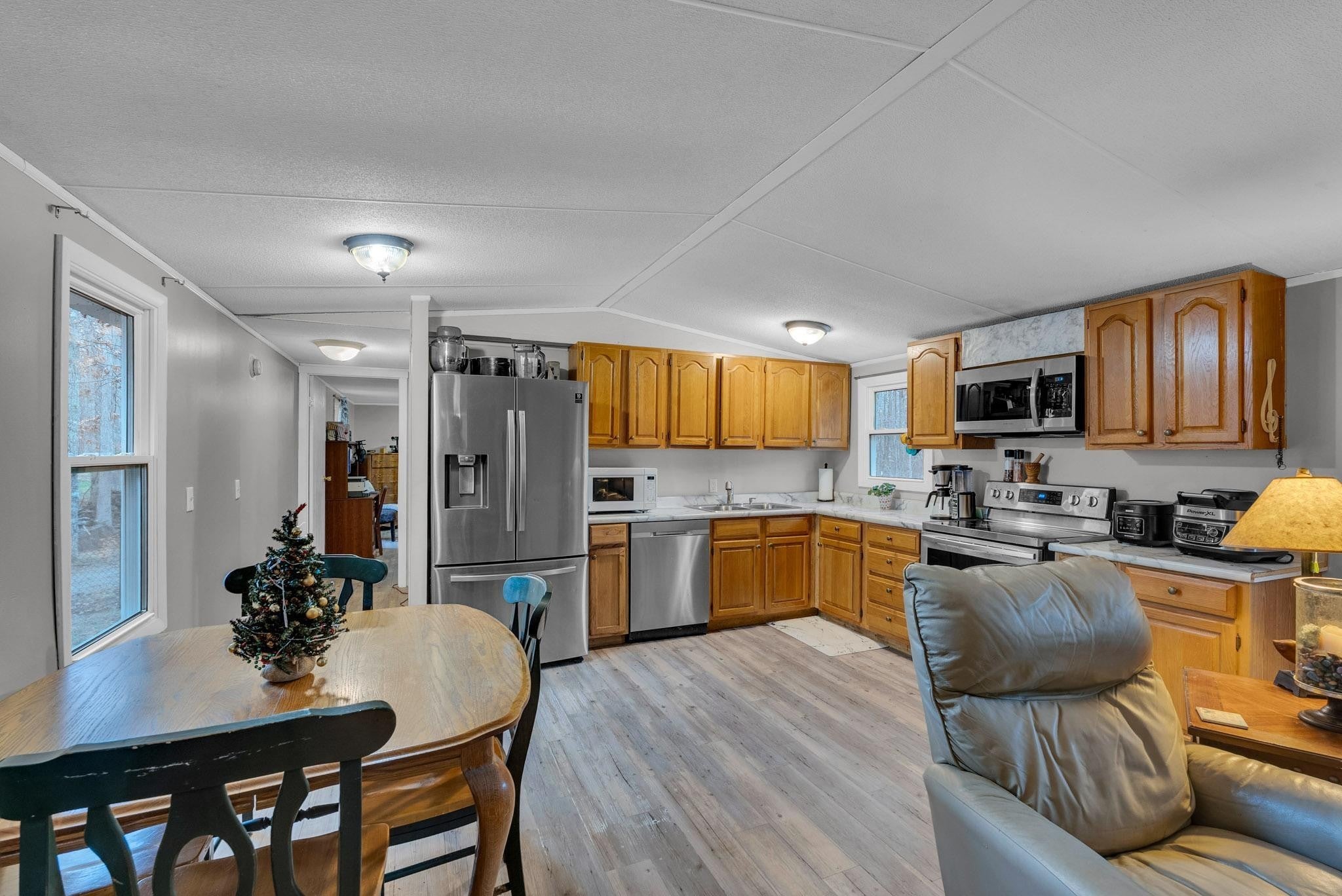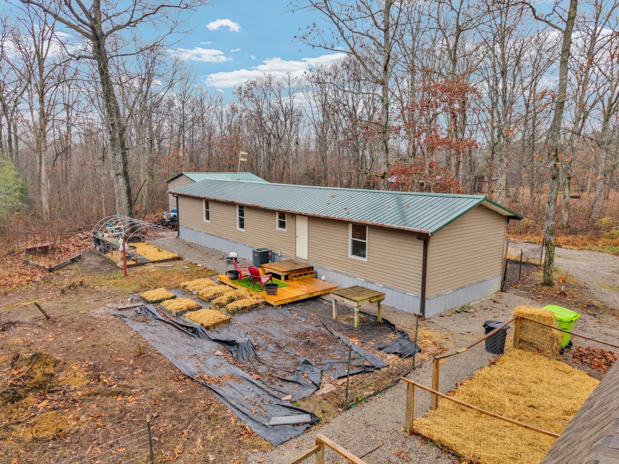 Discover this renovated home offering 1,056 square feet of comfortable living space, featuring two bedrooms and two bathrooms. Set on a generous 2.3 acres of unrestricted land, this property combines modern updates with the freedom of country living. The home has undergone extensive, high-quality improvements, ensuring a move-in ready experience. A new roof was installed in 2022, complemented by new siding in 2024 and brand-new gutters added in 2025. You will appreciate the peace of mind provided by the new vacuum-sealed, fully insulated, UV-protected windows installed throughout the entire home. The interior received a refreshing touch in 2025 with new paint, and one bathroom was remodeled in 2024. The heater was also recently redone in 2025 for optimal performance. Exterior amenities are exceptional and highly functional. A spacious new 22x25x14 garage, built in 2022 on a cement slab, includes two manual 10-foot roll-up doors and a convenient side door. Outdoor entertaining is a breeze with the new back deck added in 2025. Storage is plentiful with a 10x20 fully insulated shed featuring a laminate wood floor (2023) and an existing 10x20 container that came with the property. The driveway was significantly improved in 2024 with four loads of gravel to ensure a level surface. For the animals and privacy, a partial front fence with two 10-foot gates was installed in 2025. The acreage has been thoughtfully prepared, including a back clearing and tree removal in 2024, perfect for starting a garden, and a dedicated goat pen built the same year. This property is a rare find, offering a meticulously updated home and flexible, unrestricted land perfect for hobbies, animals, or simply enjoying the outdoors.