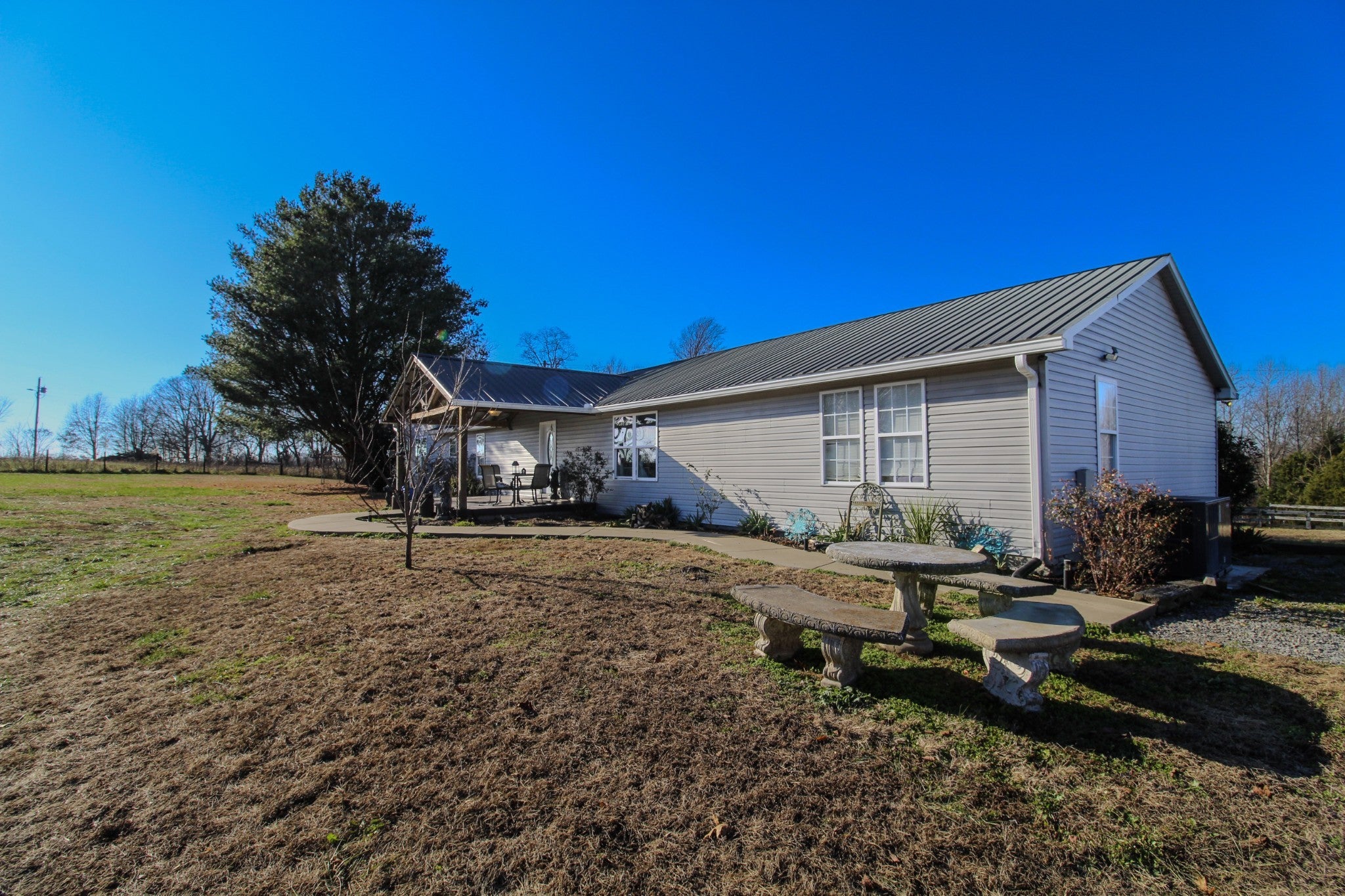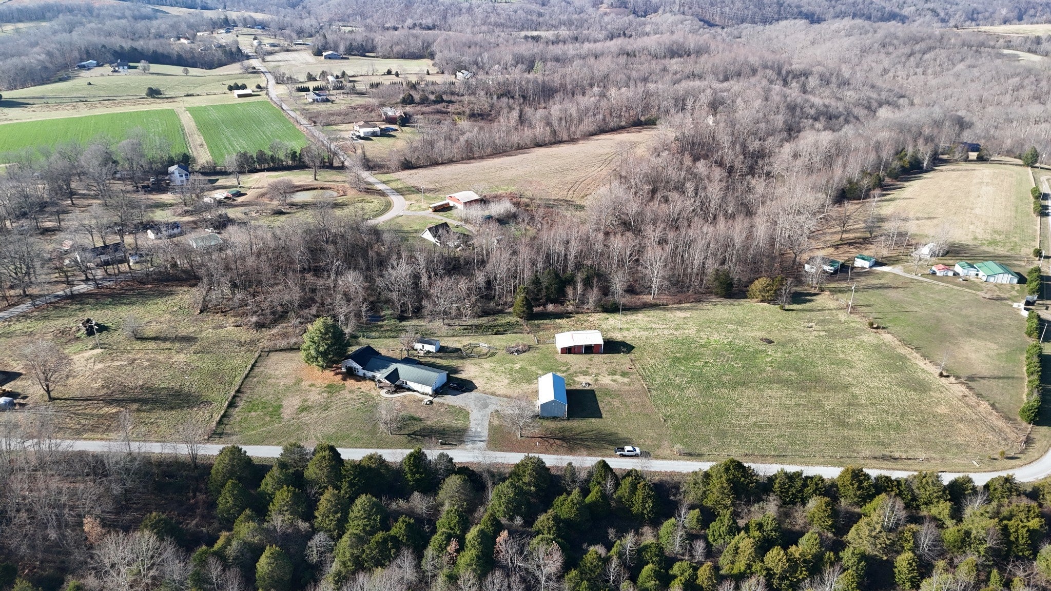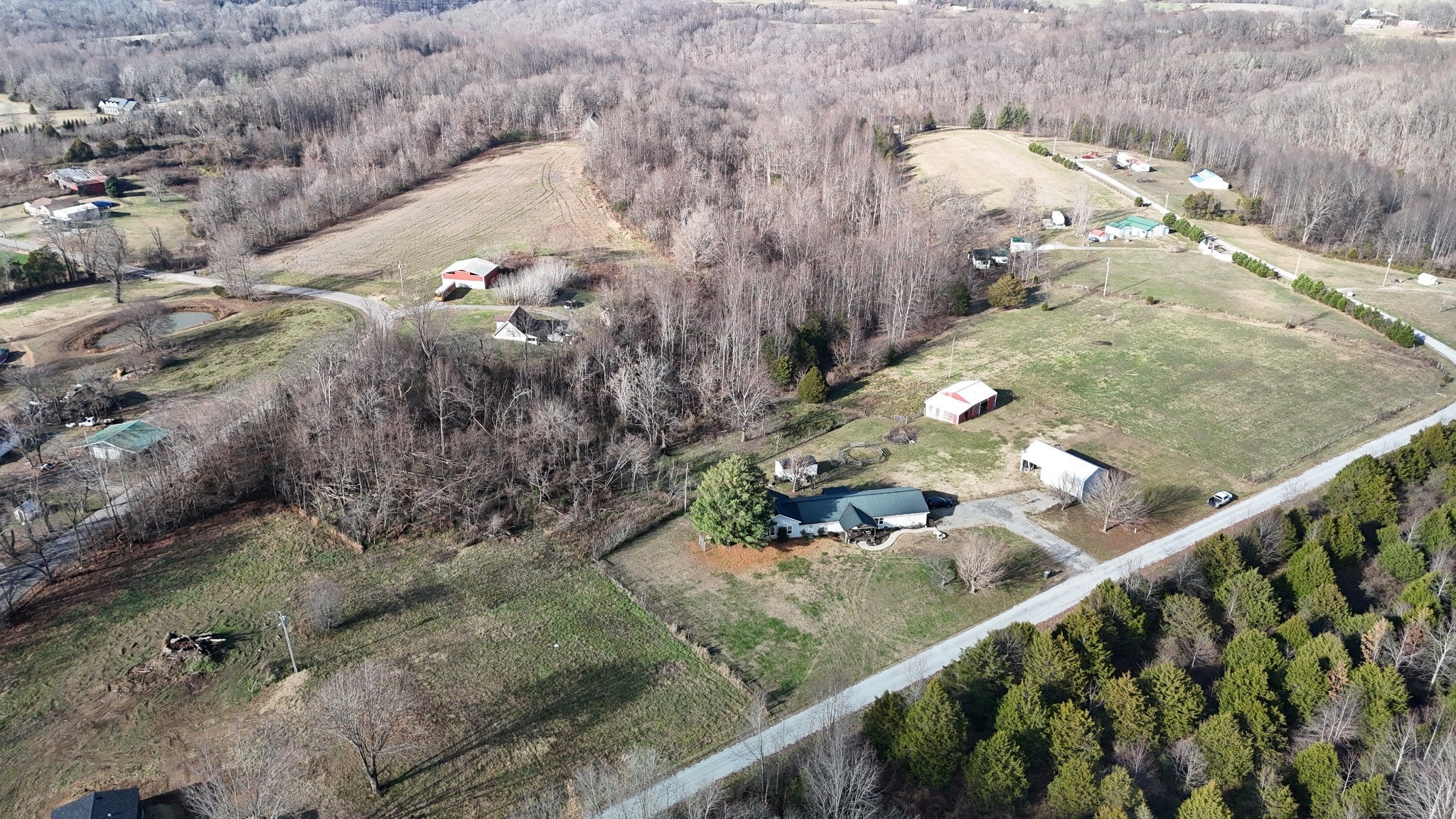 Charming ranch-style home with incredible country appeal! This property features 4 bedrooms and 2.5 baths, a 12x24 guesthouse with a full bath, a detached shop with two garage doors and concrete flooring, and a barn for storage or livestock. The home also offers a spacious bonus/rec room with hardwood floors and a tongue and groove ceiling. The land includes a spring-fed pond and some fencing, making it ideal for animals—bring your livestock and enjoy peaceful country living at its finest!
