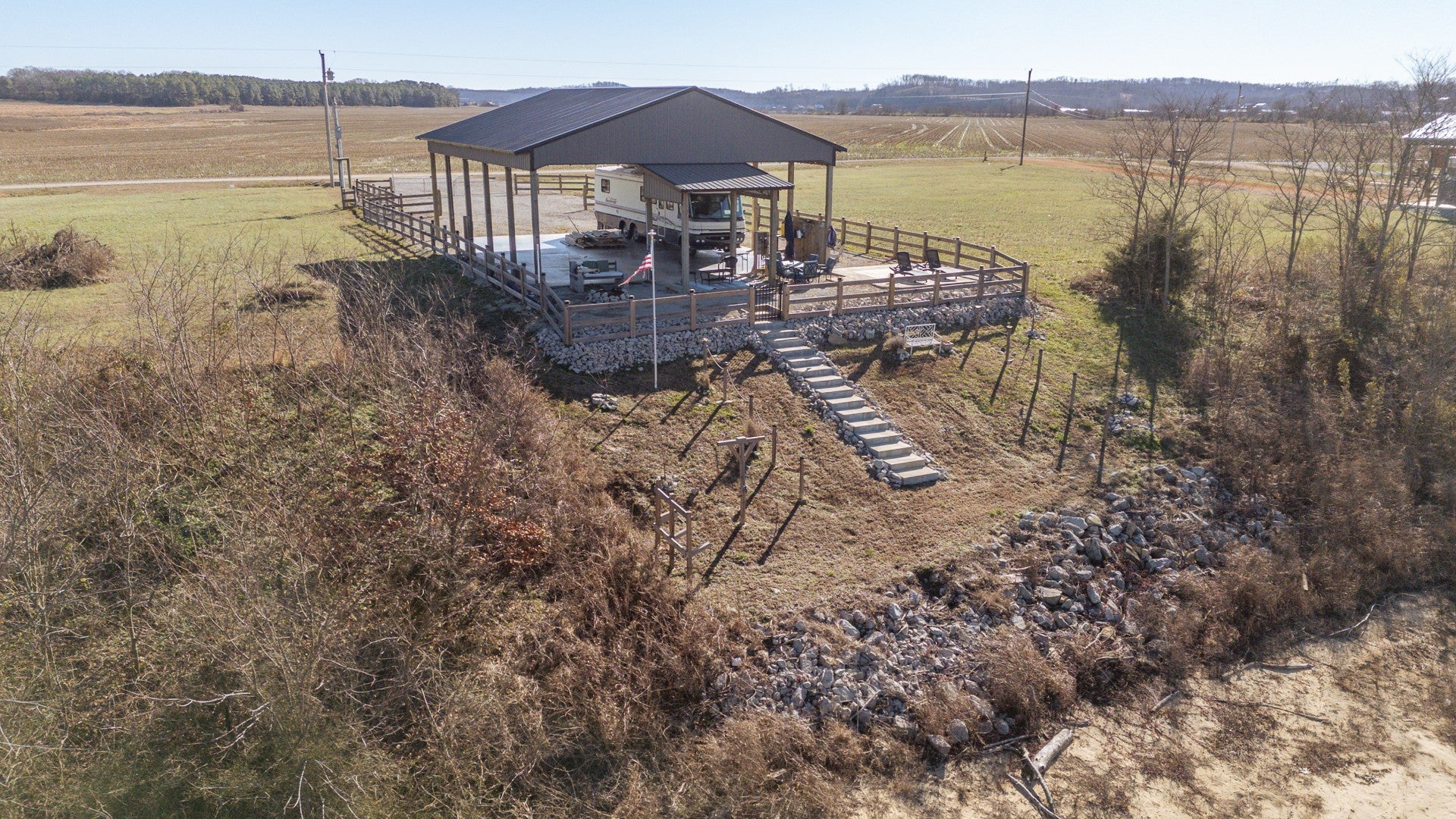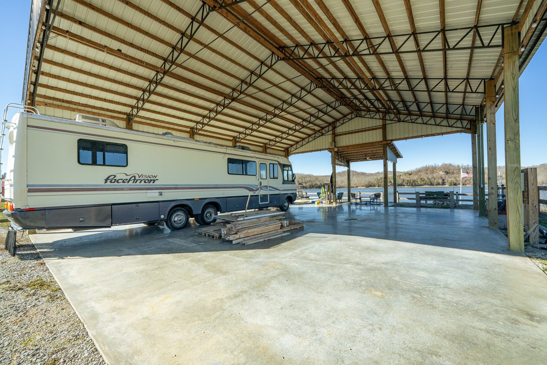 Fully developed RV lot on the Tennessee River! Lot 230 is a .47 acre lot that has city water, septic tank, and electricity on the property. Full hookups for 2 RVs. The pavilion is massive! measuring 40X50 with two extra spaces for relaxing by the water. Step lead down to the water. The bank has also been rocked to prevent erosion. Paradise Landing is an upscale gated RV development on the banks of Kentucky Lake/Tennessee River. Located in Clifton, TN. Just a short boat ride to area marinas. Ross Creek Landing Golf Course is less than 10 minutes away. Park dyour RV right by the river and enjoy fishing and boating. This is a gated community with a community ramp and boat dock for loading/unloading guests. Common areas include picnic pavilions for large gatherings. There is no HOA. Lot owners pay a yearly maintenance fee of $560 that covers maintenance of private roads, security gate, trash dumpsters and common areas.