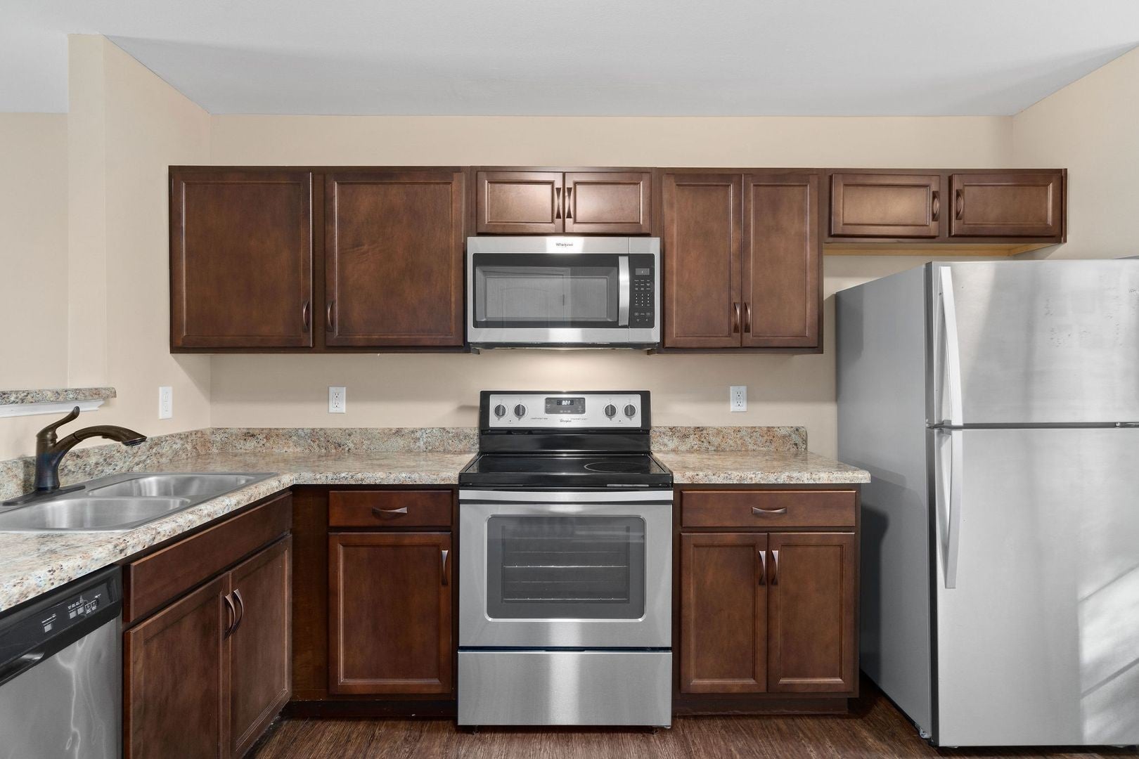 - Oven, Range, Dishwasher, Dryer, Freezer, Microwave, Refrigerator, Stainless Steel Appliance(s), Washer