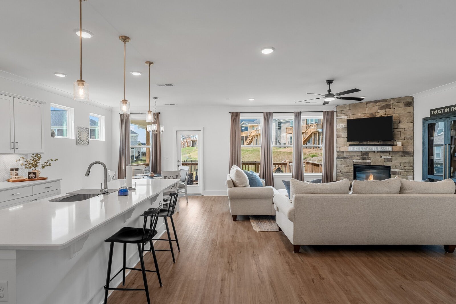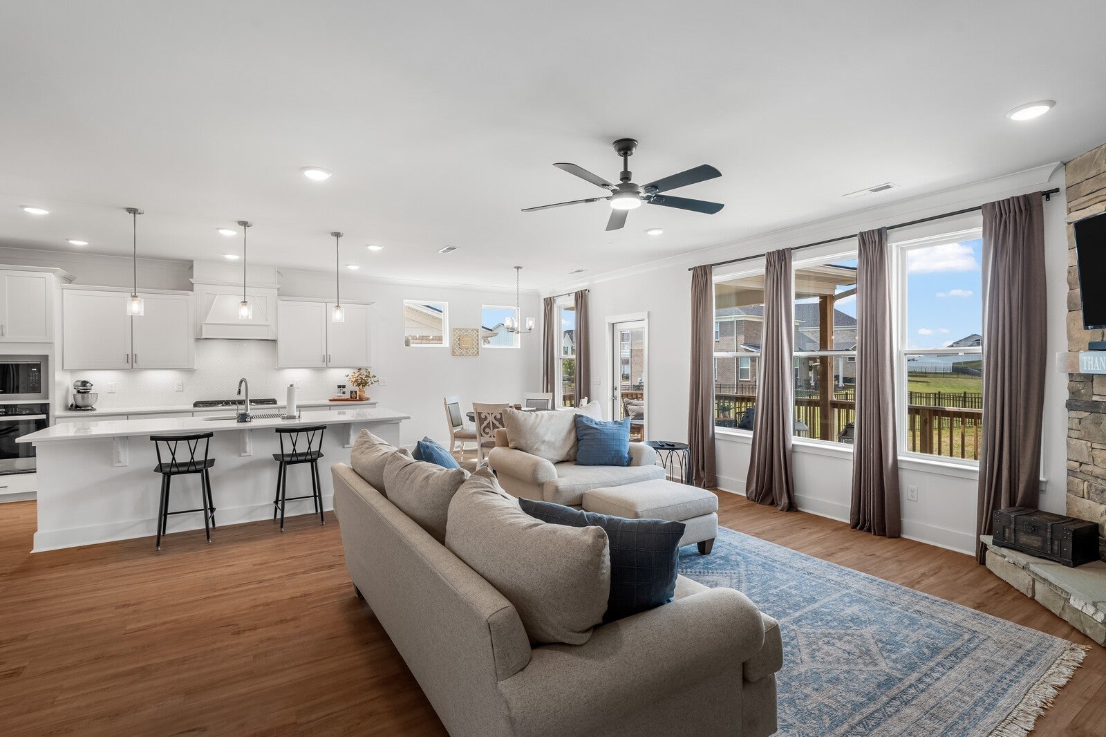 Lender Incentive Available! Welcome to 1170 Pebble Run Rd, located in the highly sought-after Durham Farms community of Hendersonville. Built in 2024 by Pulte Homes, this stunning 5-bedroom, 4.5-bath residence also includes a flexible 6th bedroom/bonus room, offering 3,342 sq. ft. of beautifully designed living space on a 0.27-acre lot. Step inside to an open-concept layout featuring a dramatic floor-to-ceiling stone fireplace, a chef-inspired kitchen with butler’s pantry, formal dining room, and a private office—all enhanced by premium upgrades throughout. Perfect for multi-generational living, the main-level guest suite includes a spacious walk-in shower. The oversized 2-car garage with 15' ceilings provides exceptional storage potential. Outdoor living shines with an inviting wraparound-style front porch and a covered rear lanai equipped with a gas grill hookup—ideal for year-round entertaining. Residents of Durham Farms enjoy resort-style amenities: clubhouse, fitness center, pool, playgrounds, dog park, walking trails, and vibrant community events—all within minutes of top-rated schools and an easy commute to Nashville. This home is move-in ready and truly has it all—schedule your private tour today!