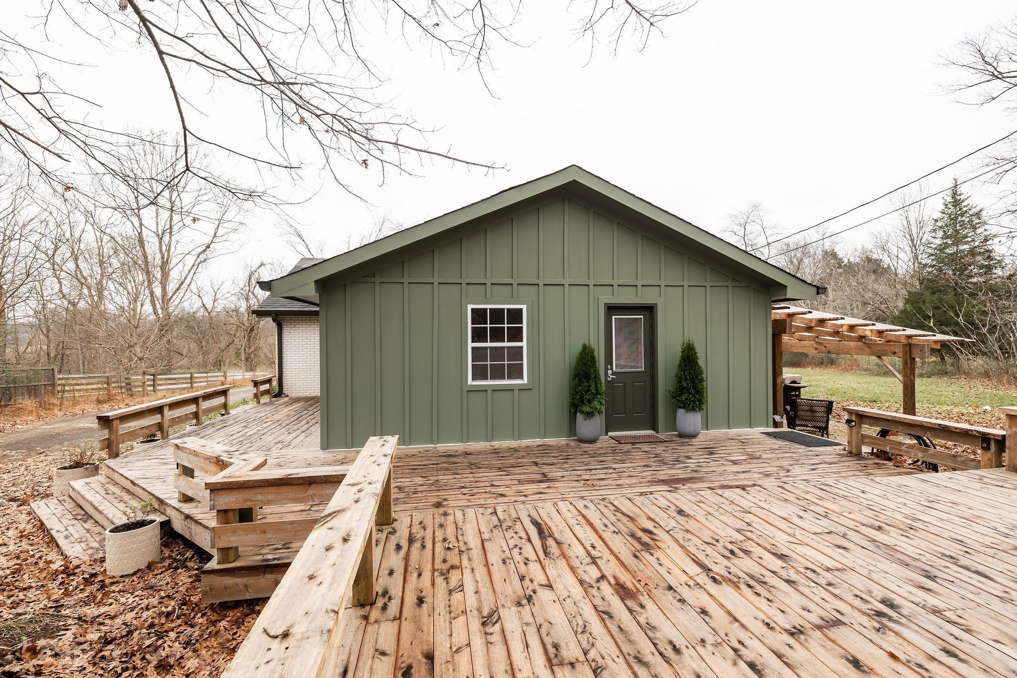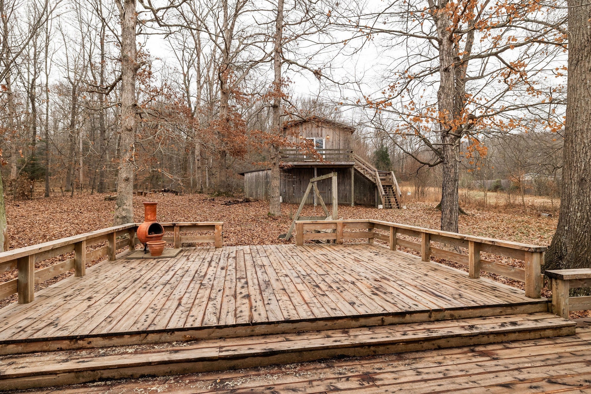 Welcome home, a place where daily life is deeply connected to the land. A spacious front porch, framed by cedar posts and a cozy screened-in nook welcomes you in. As you step inside, a rustic, French-country aesthetic invites you to slow down and savor an intentional pace of life. Oak floors, an open floor plan, an oversized island, butcher-block counters, a custom tea-making and baker’s shelf, and numerous brand-new features—wood-burning stove, water heater, electric panel, HVAC unit, stainless appliances, and fresh attic insulation—offer both comfort and peace of mind. Stepping outside, the heart of the property truly comes alive. A finished studio above the large barn, formerly an herbalism and conservation classroom, offers an inspiring retreat for guests, artists, writers, or anyone seeking space to create or simply be. A wraparound back deck rests beneath mature oaks, naturally moderating temperatures throughout the seasons. You’ll also find a covered space for rainy days, a sun-filled area ready to become a large garden, existing raised beds filled with food and medicinal herbs, culinary herb pots near the kitchen, a newly planted native pollinator garden around the home, fruit trees and bushes, at-risk plant species protected across the acreage, forest trails, and 1,500 feet of spring-fed creek meandering through the back forest. Beyond that, 2.5 acres of meadow lead to your private 150 feet of Sycamore Creek frontage, perfect for a restorative soak. A detached structure stands currently as a blank slate and was formerly used as a commercial kitchen and could easily be reactivated. The property is a designated Botanical Sanctuary and National Wildlife Conservation site, home to diverse species essential to the local ecosystem. Zoned Agricultural & in the Green Belt (2025 property taxes were $1,650). Every element of this home supports a life of connection, creativity, and self-sufficiency. An opportunity to live in genuine relationship with the land.