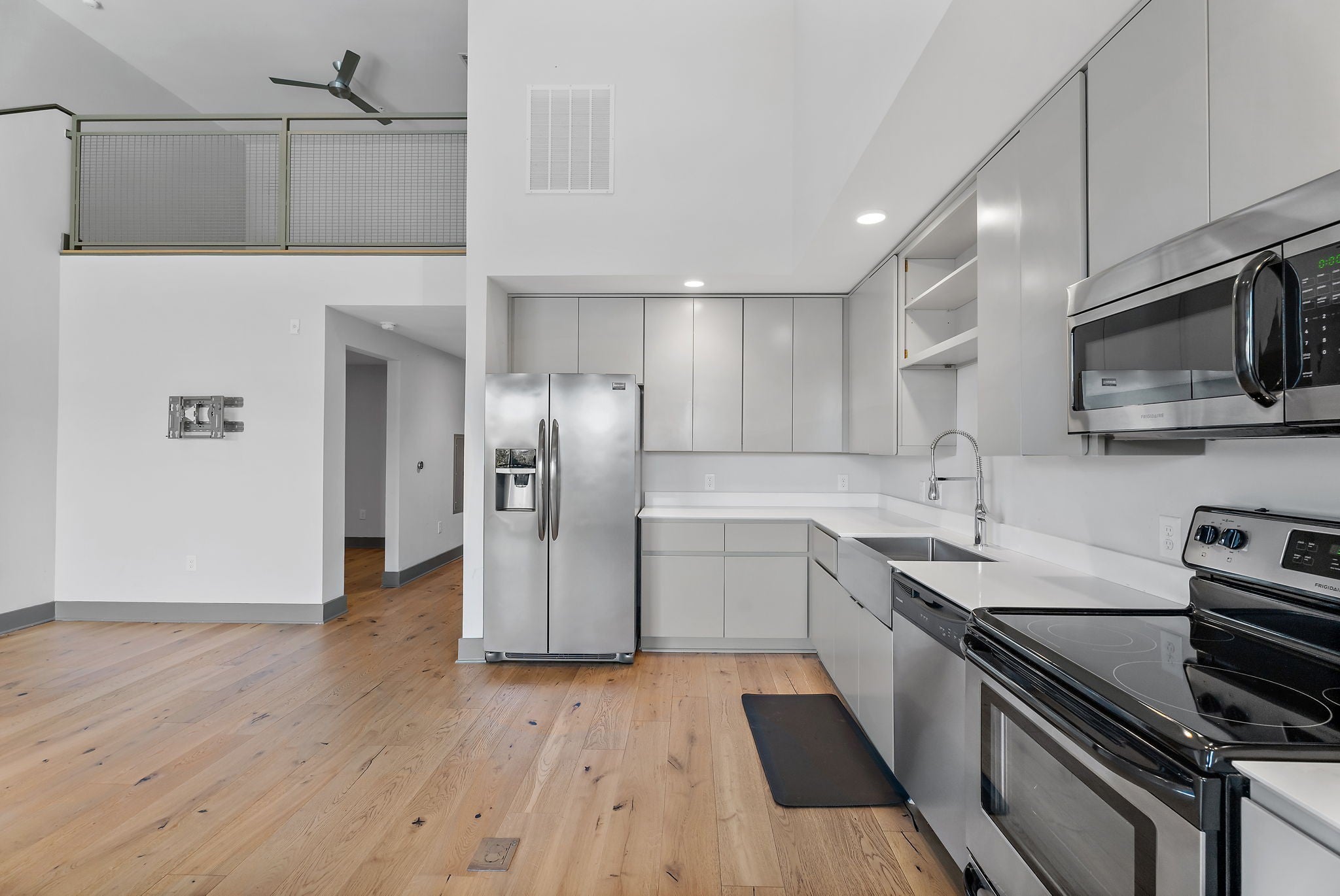 Experience true city living in this Wedgewood-Houston loft style condo! On the first floor you’ll be greeting with a cozy entry way leading to the first bedroom, as well as a full bathroom with builtin shelving and shower/tub combo. Entering the open kitchen, expansive living, and dining area, you’ll be amazed by the soaring ceilings and natural light. The kitchen features stainless steel appliances, a farmhouse sink, and ample storage. Open the Juliet balcony doors in the living area to welcome in fresh air. The second floor primary suite overlooks the main floor and features an ensuite bath and custom California Closets. Walk to Soho House, Geodis Park, as well as some of Nashville’s most popular restaurants and shops. Unit comes with one parking space, and plenty of guest and street parking. Washer and dryer convey.