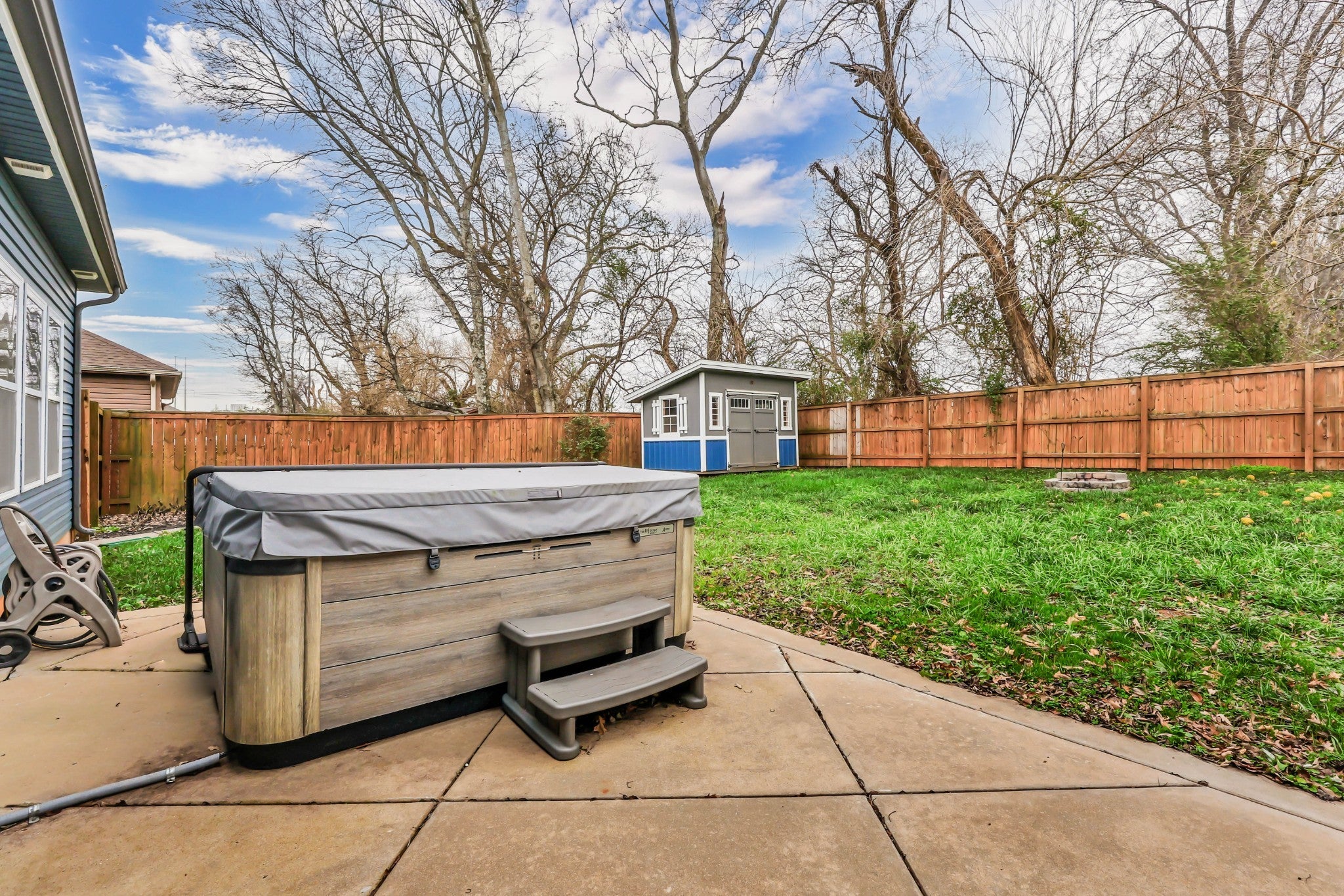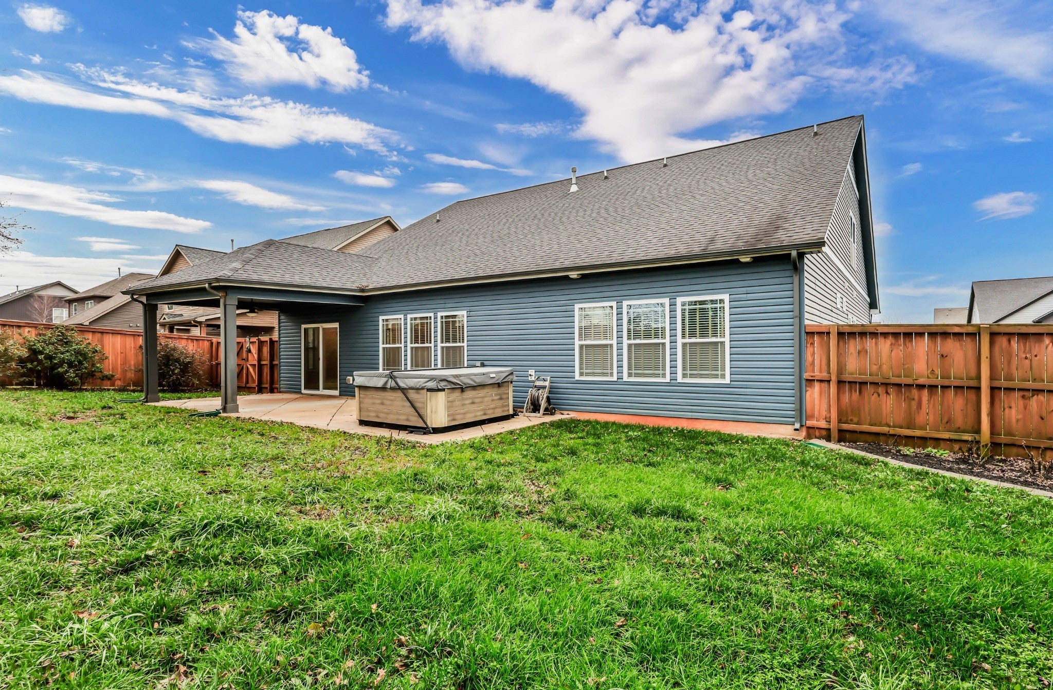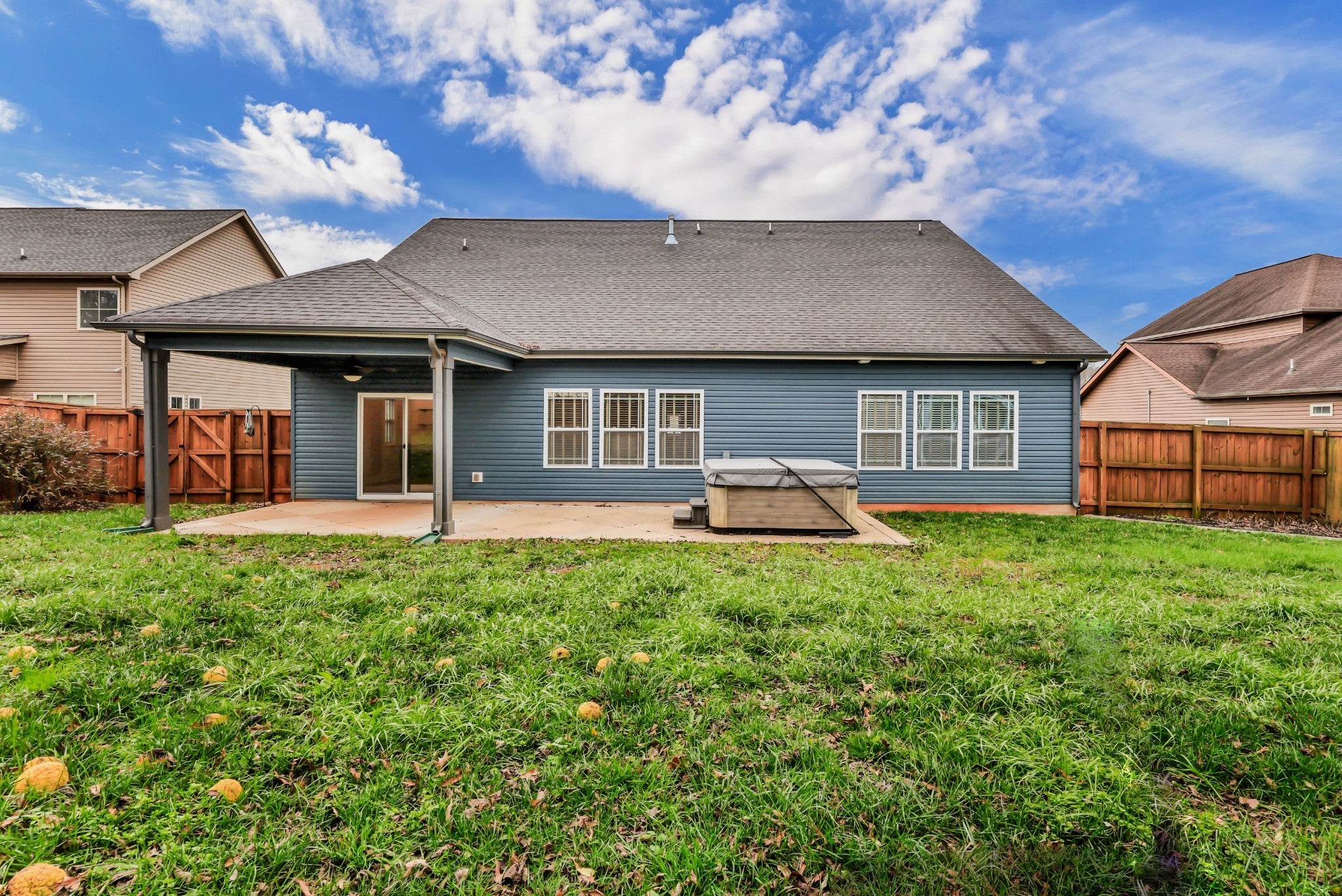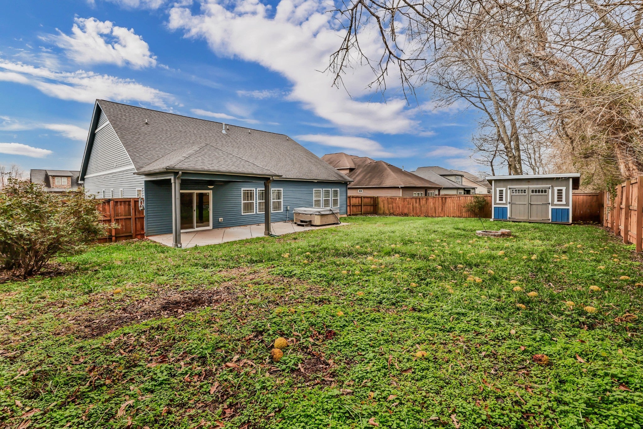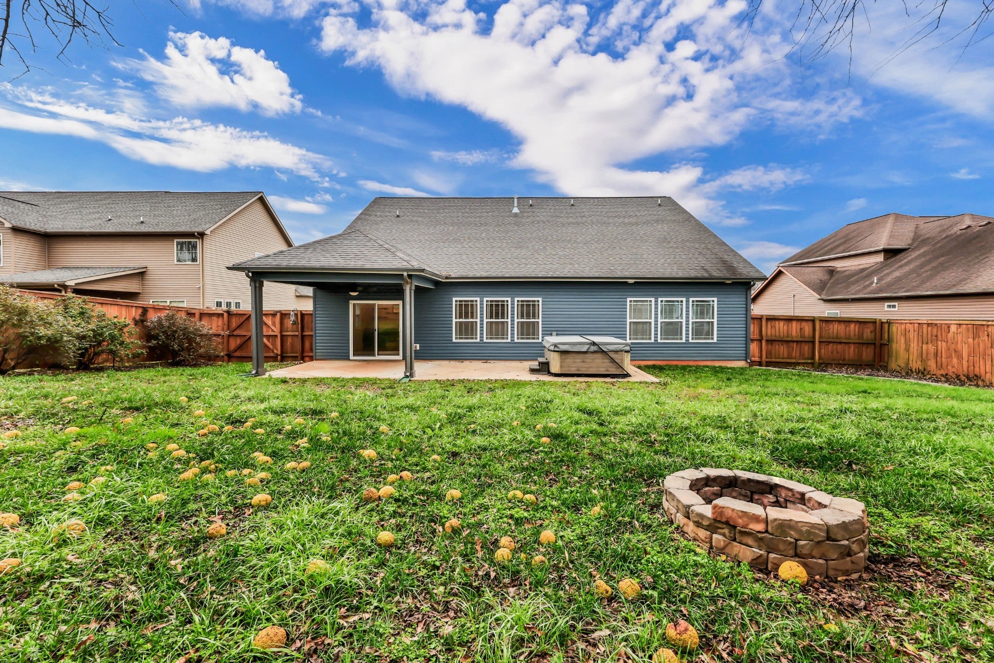 This stunning 4 bedroom, 3.5 bath ranch-style home offers elevated style and exceptional livability in a highly sought-after, well-established neighborhood. An inviting open-concept floor plan showcases hardwood flooring throughout, leading to a spacious living room anchored by a stone gas fireplace. The gourmet kitchen features two-tone cabinetry, a tile backsplash, granite countertops, stainless steel appliances, a side bar area, and a separate pantry. A dining room with custom built-ins provides the perfect space for gatherings. The primary suite is a true retreat with an en suite bathroom featuring double vanities, a tile shower, a soaking tub, and a massive walk-in closet. Three additional bedrooms include extra-large closets, and a dedicated laundry room with utility sink adds convenience. Upstairs, a remarkable private suite offers a flex area that could be ideal as an office space OR a bar area with a spot perfect for a mini fridge, full bathroom, and abundant attic storage—ideal for guests or bonus living space. Outdoor living is a standout feature. The large partially covered patio is home to a premium 5-person Bullfrog hot tub with interchangeable jets—an exceptional upgrade that conveys at no additional cost to the buyer. Enjoy year-round relaxation in your own private oasis, complete with a wood privacy fence and a storage shed. The exterior is finished with stone accents, a 2-car attached garage, and a circular driveway. Conveniently located near the interstate, shopping, and restaurants while quietly tucked away, this property delivers both luxury and comfort. A must-see home.