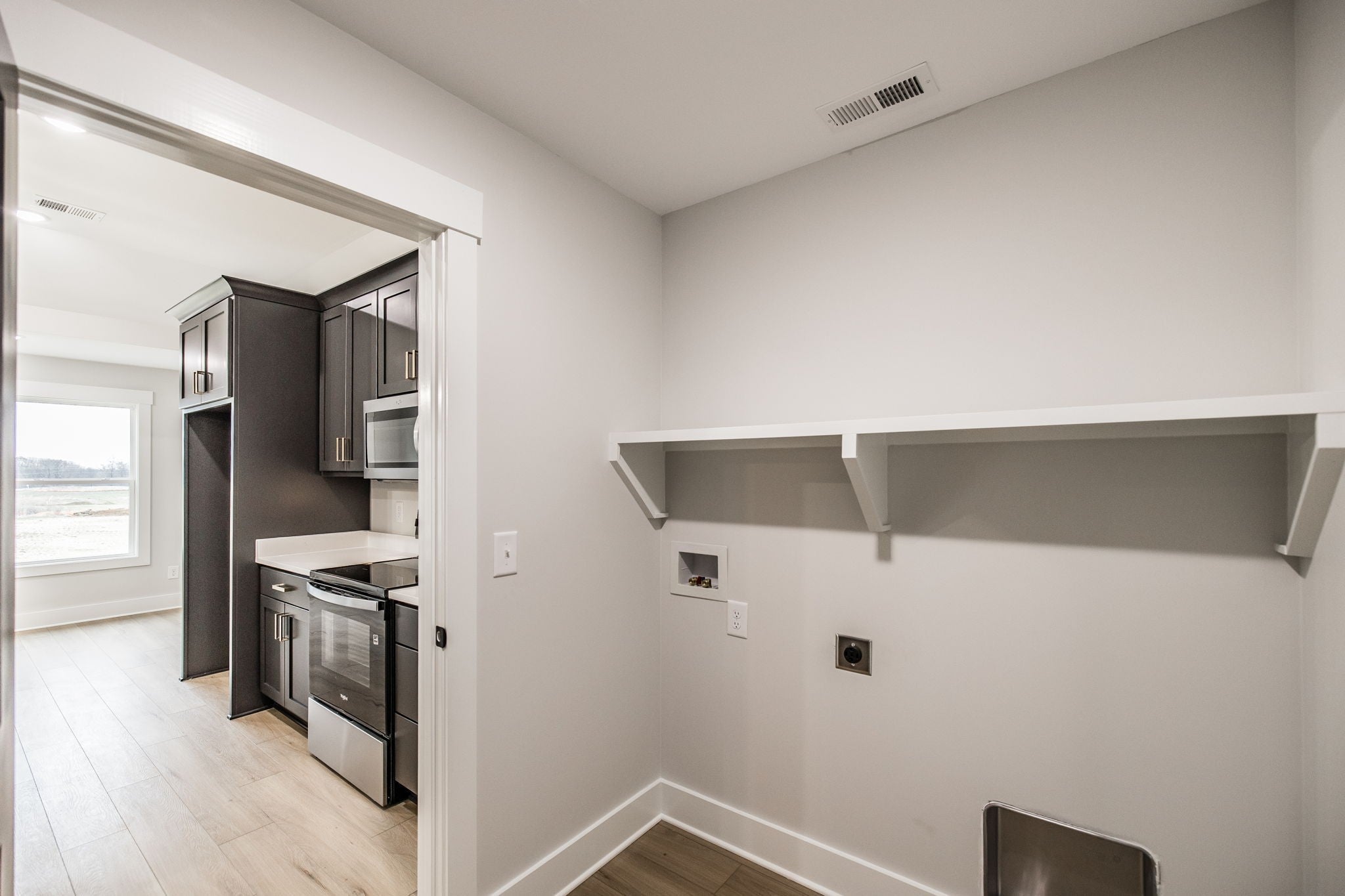 - Electric Range, Dishwasher, Disposal, Microwave, Stainless Steel Appliance(s)
