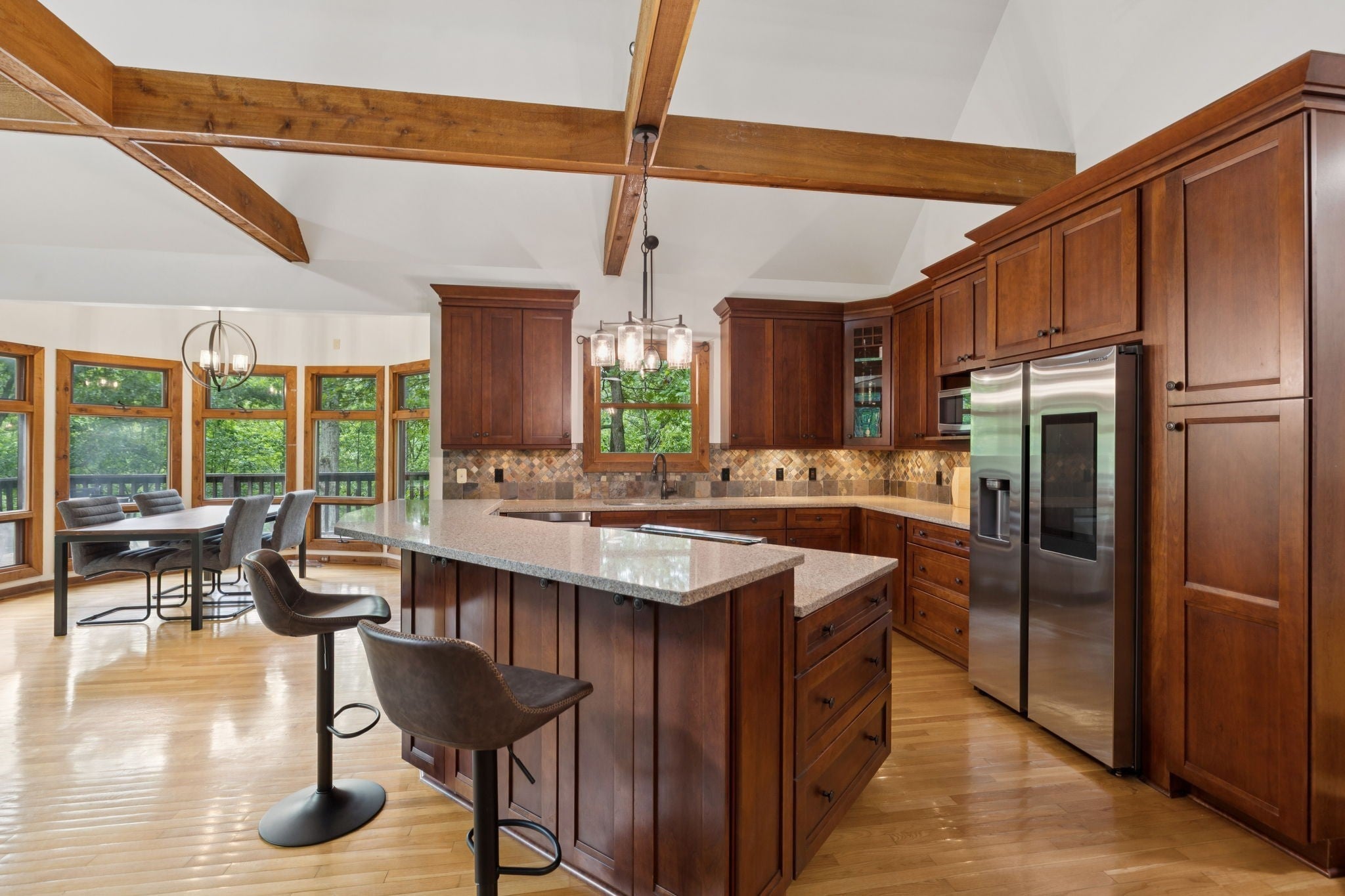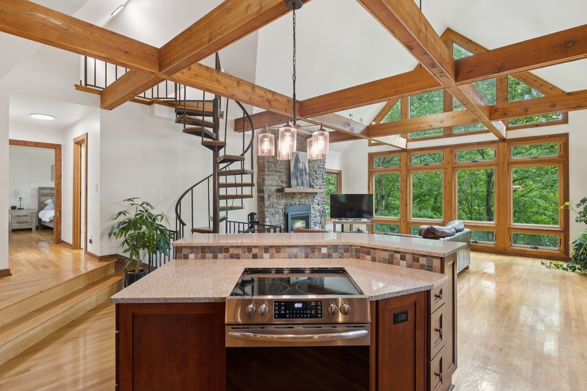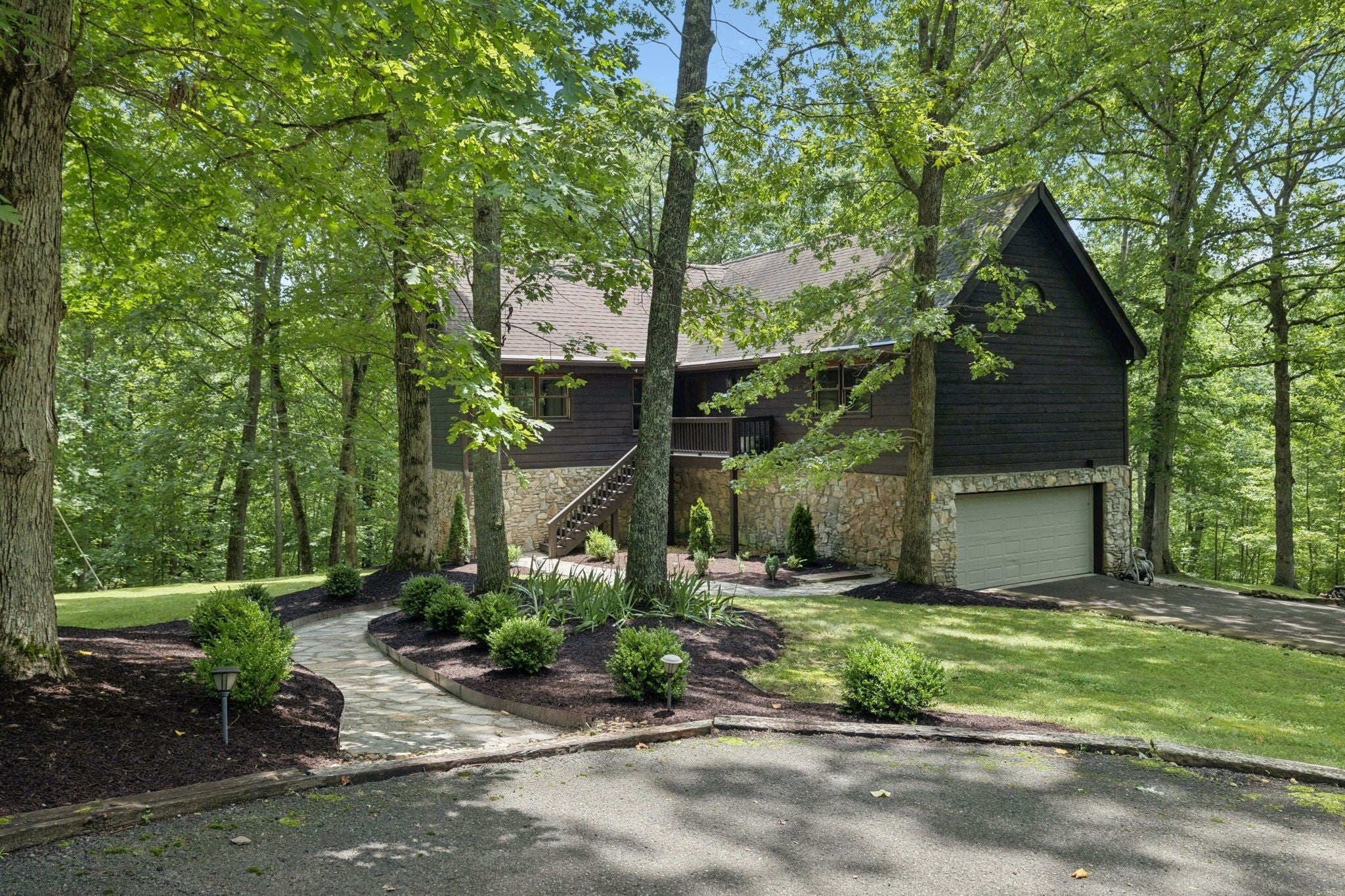 - Stone, Wood Siding