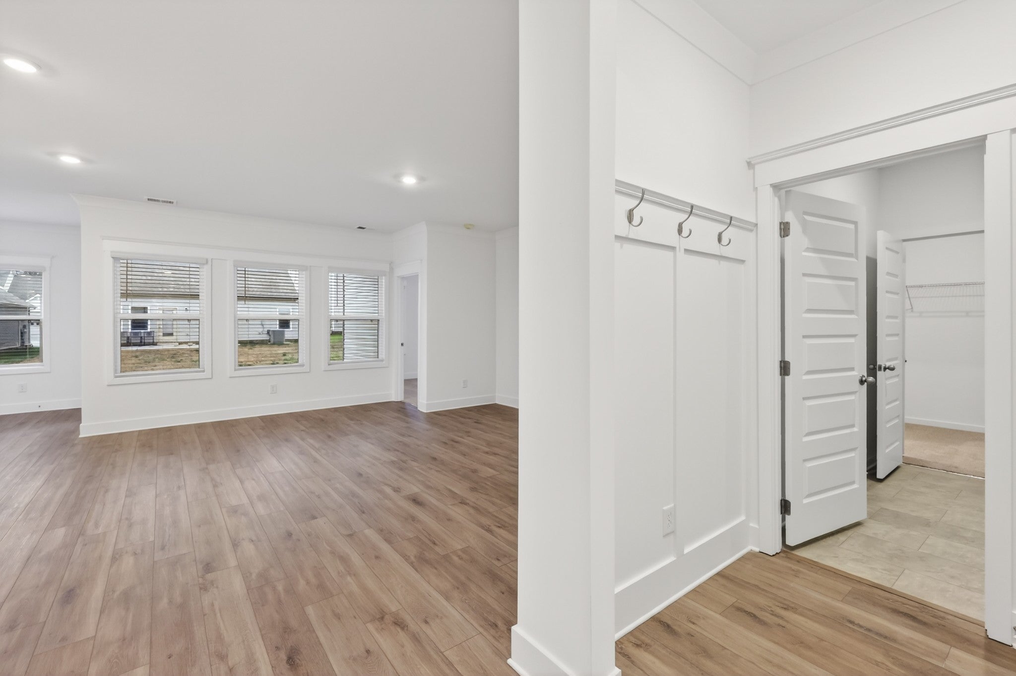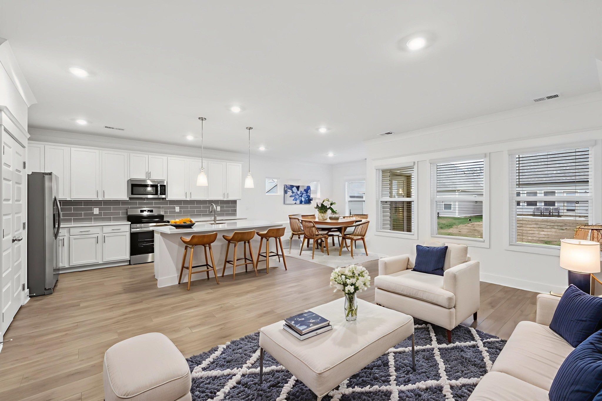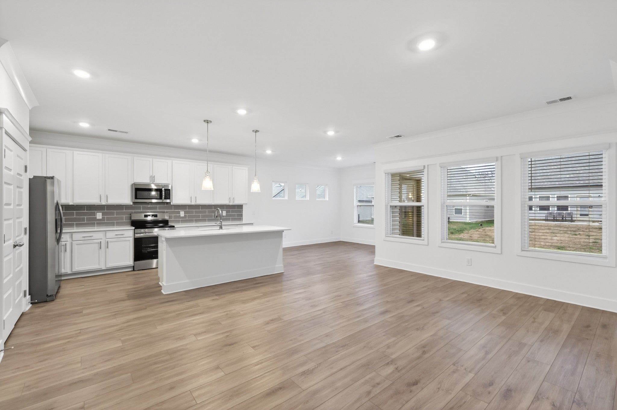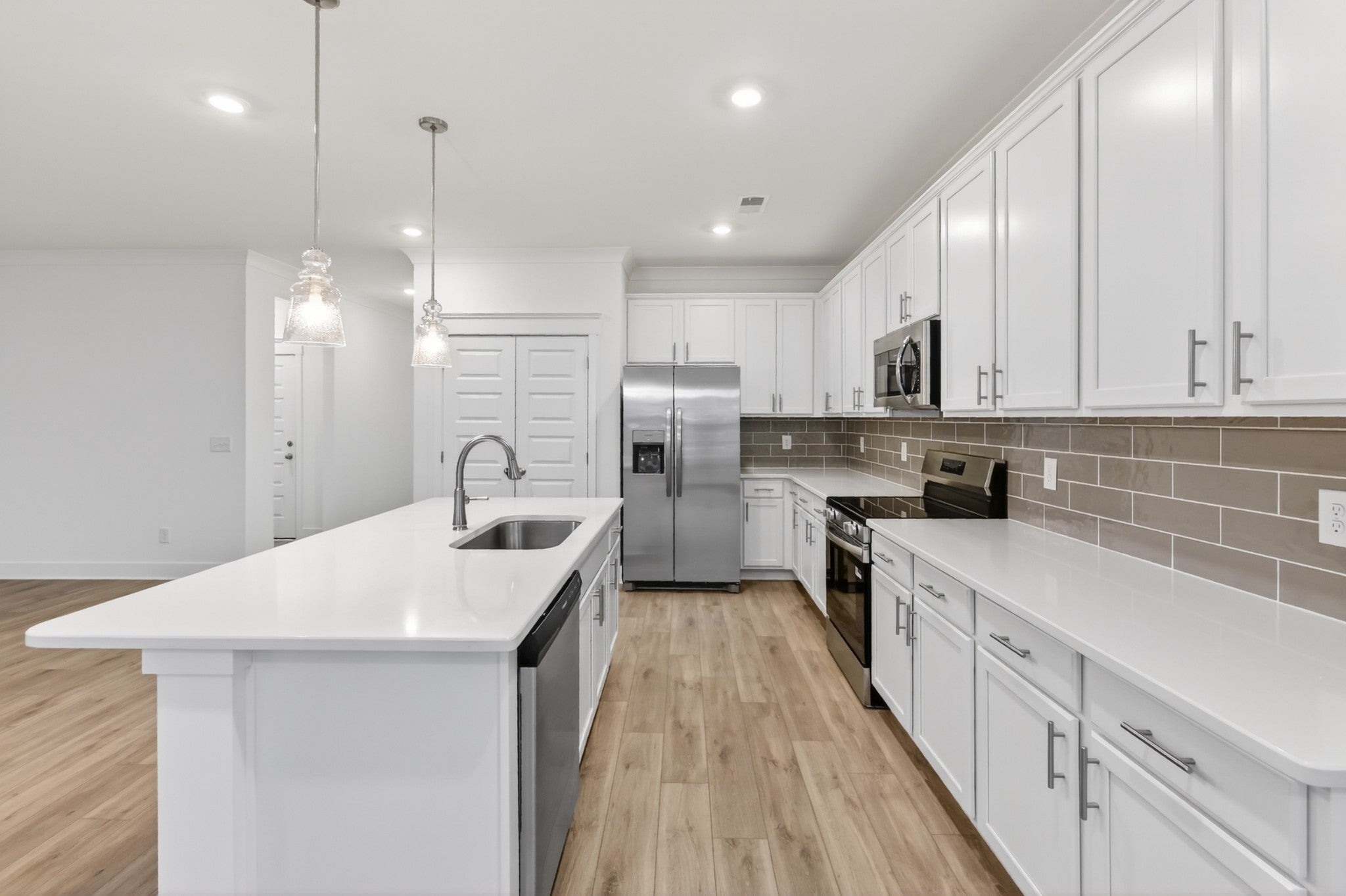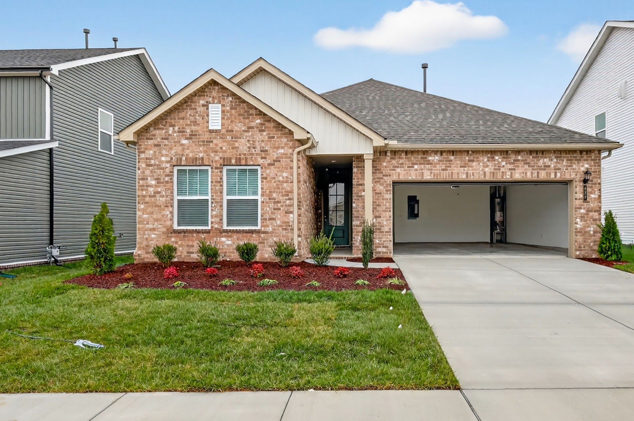 BRAND NEW! Be the first to step into this beautifully crafted single-level home designed for comfort and style. Open-concept retreat boasts 3 bedrooms and 2 bathrooms, including a luxurious owner's suite featuring a stunning tile shower and a soothing garden tub for your personal oasis. The additional two bedrooms are subtly tucked away with their own hallway and full bath. The kitchen offers crisp white cabinets, sleek quartz countertops, stainless steel appliances, and a large pantry. Two-car garage with pull-down stairs accessing attic storage. Washer and dryer included. Photos are staged photos, furniture not included.