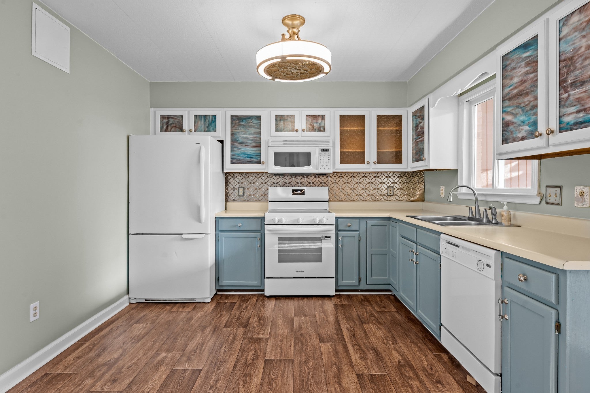 - Electric Range, Dishwasher, Disposal, Microwave, Refrigerator