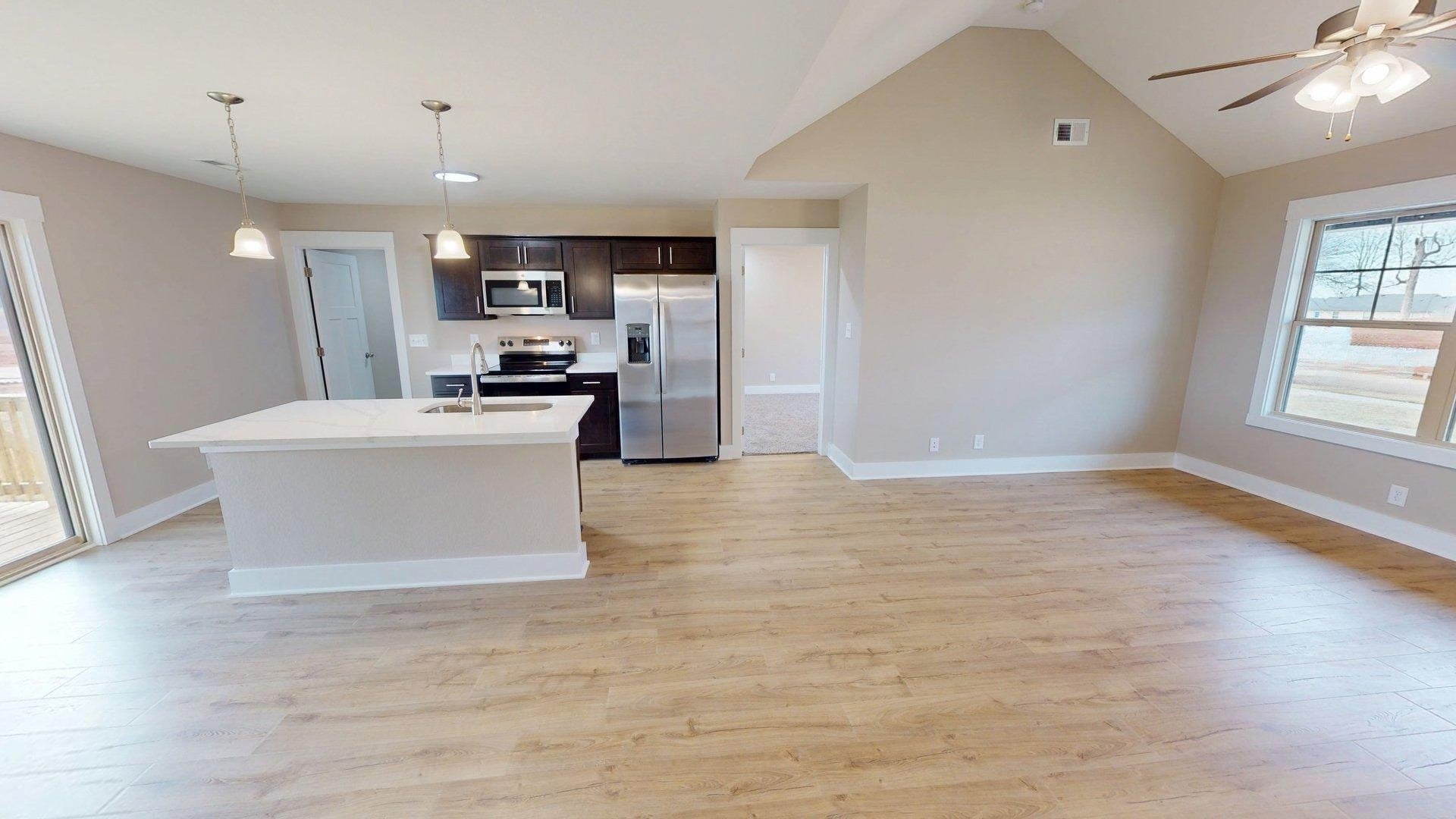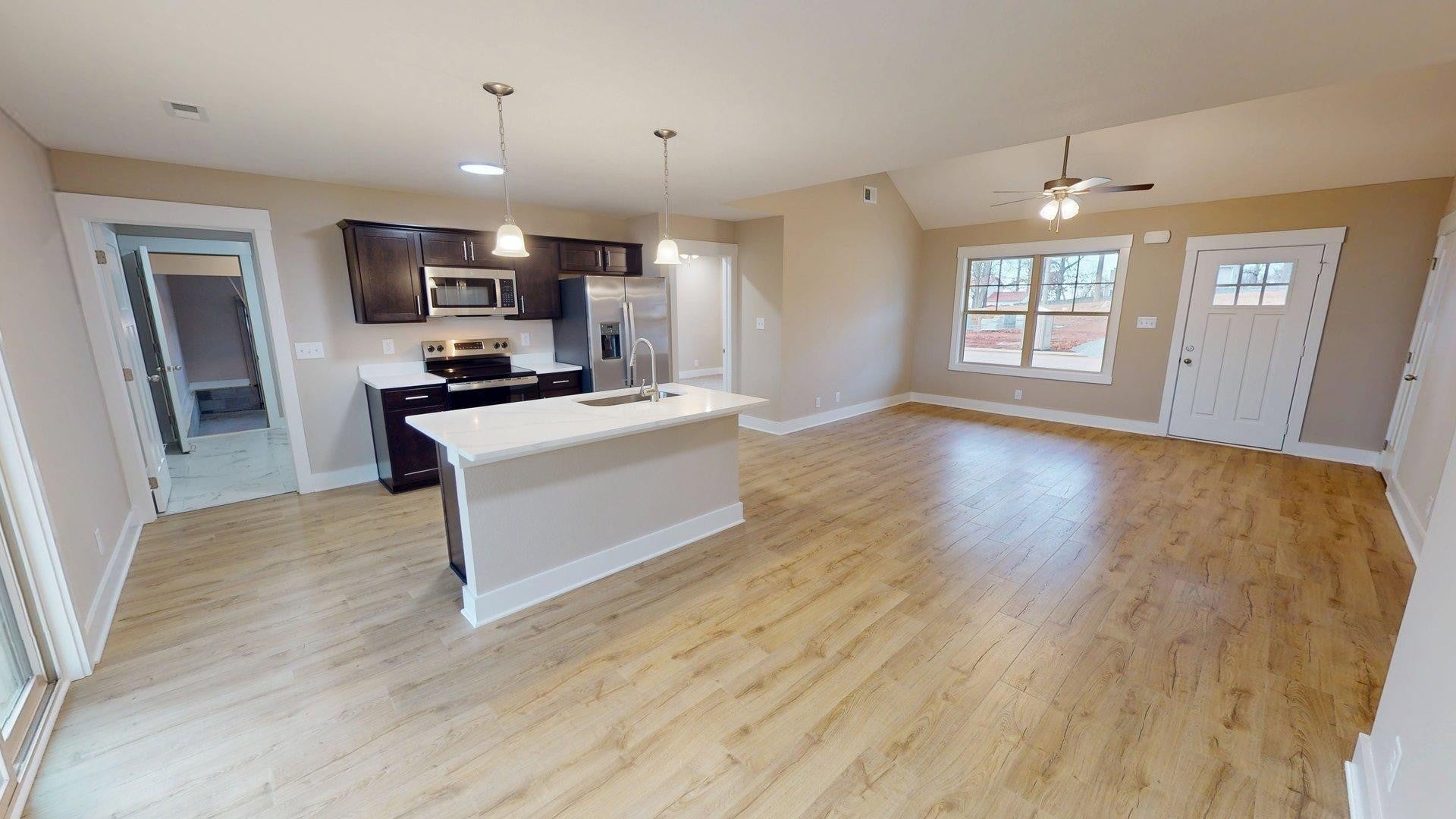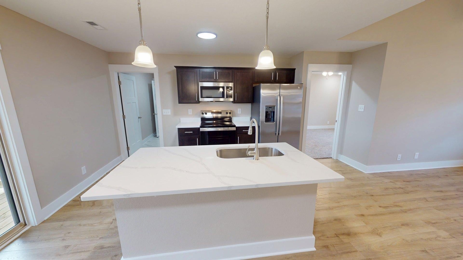 Welcome to Oak Grove’s hottest new community, featuring sidewalks, underground utilities, streetlights, and fully sodded front and back yards for a clean, polished look throughout. 28 Echo Ridge is perfectly positioned on a desirable corner lot and offers modern design with effortless single-level living. This thoughtfully designed home offers three spacious bedrooms, an oversized 24x24 two-car garage with impressive 10.5-foot ceilings, and a layout that feels both open and refined. A well-designed split bedroom floor plan enhances privacy, thoughtfully separating the primary suite from the secondary bedrooms. Step inside to a bright, airy interior with a sleek, contemporary feel, defined by clean lines, abundant natural light, and a seamless open-concept layout. The kitchen anchors the space with stone countertops and a modern aesthetic that carries throughout the home. Just off the garage, a beautifully finished walk-in tiled mudroom provides the perfect blend of style and function, an ideal everyday drop zone. The oversized garage is insulated and finished with epoxy floors, offering year-round comfort, durability, and a polished look. Enjoy the added space, privacy, and curb appeal that come with a corner lot, all while being just minutes from shopping, dining, and Fort Campbell. Modern, low-maintenance, and move-in ready, 28 Echo Ridge delivers the kind of clean, elevated living today’s buyers are looking for. Be sure to explore the virtual tour for a closer look.