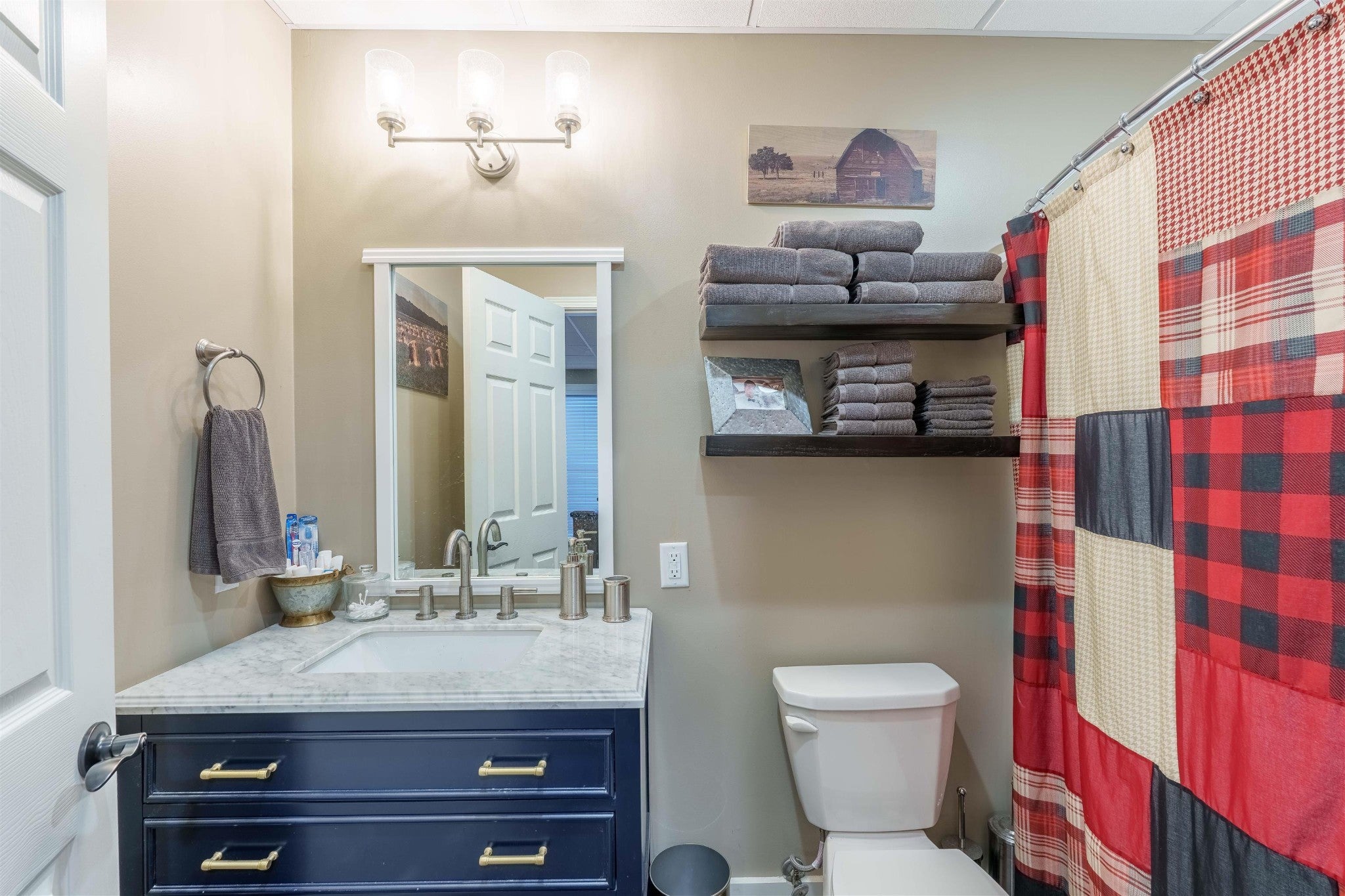 Stunning country retreat on 6.88+/- acres. Your dream home awaits! This exquisitely remodeled home Harmoniously blends luxury with nature. Step inside to a freshly painted interior and new porcelain tile flooring. The kitchen is a chef's dream. Advanced with brand new cabinets ,stunning quartz countertops, and an oversized island. A full basement suite complete with a full kitchen w/granite countertops. Perfect for an in-law suite or guest retreat. The primary bedroom and ensuite bath features double walk-in closets and jetted tub. Step outside to new deck that span across the back of the home, with 3 acres fenced to the creek this property offers abundant wildlife and multiple deer. 3 attached garages measuring 32x23 and23x23. Detached double garage 40x 30. Enjoy gatherings around the firepit or take advantage of the new RV Hookups. The unique living area in the basement features a "garage door" walkout, creating fabulous entertaining space that invites the outdoors in.