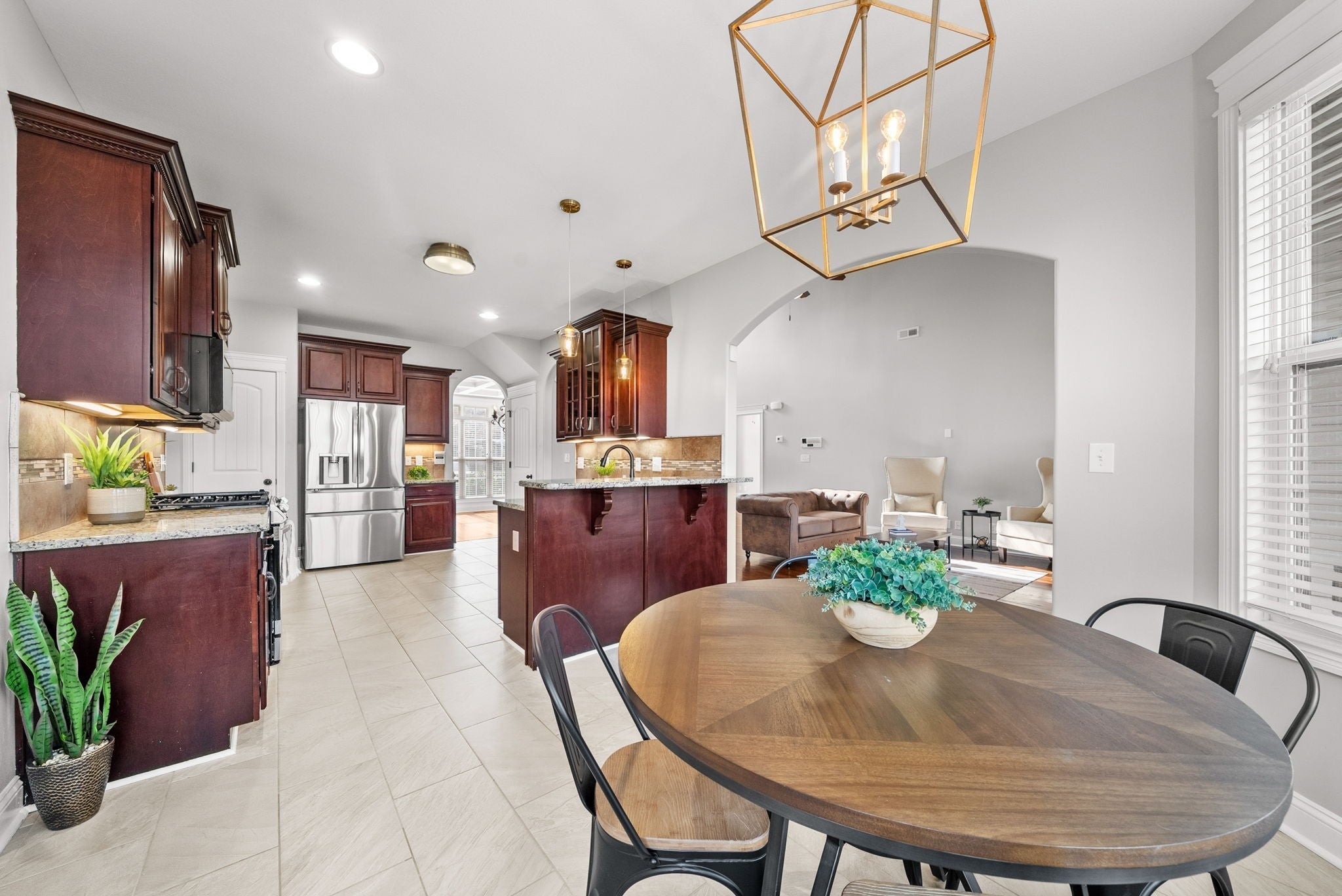 Welcome to this beautiful home in the highly sought-after Farmington subdivision, proudly zoned for the award-winning Kirkwood School District. With upgrades galore like real hardwood floors, tile, quartz, granite, blinds, natural gas, and more. Home has been meticulously maintained. Inside, you’ll find a spacious main level with an open flow between the living room, dining room, kitchen, and breakfast nook. The kitchen features a pantry, glass cabinet doors, and overlooks the bright breakfast area and main living space—perfect for gatherings. The primary suite is privately tucked on the main floor and includes dual walk-in closets and a large en-suite bathroom with massive brand new shower, and separate vanities. A secondary bedroom and full bath are also located on the main level along with a dedicated laundry room with a utility. Upstairs, the home offers three additional bedrooms, a shared full bath, and generous attic storage. One of the bedrooms is large enough to be a bonus room if desired and includes a half-bath. An abundance of natural light on both levels complete the interior. The property includes a fiberglass saltwater pool installed in 2024, a tankless water heater installed in 2023, a new roof in 2025, retaining wall in 2024, appliances were replaced in 2023, refrigerator in 2025, garage floor epoxy done in 2023, upstairs carpet replaced in 2023, downstairs in 2025.