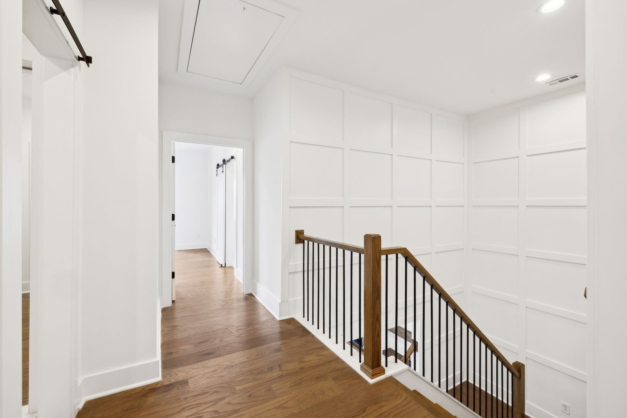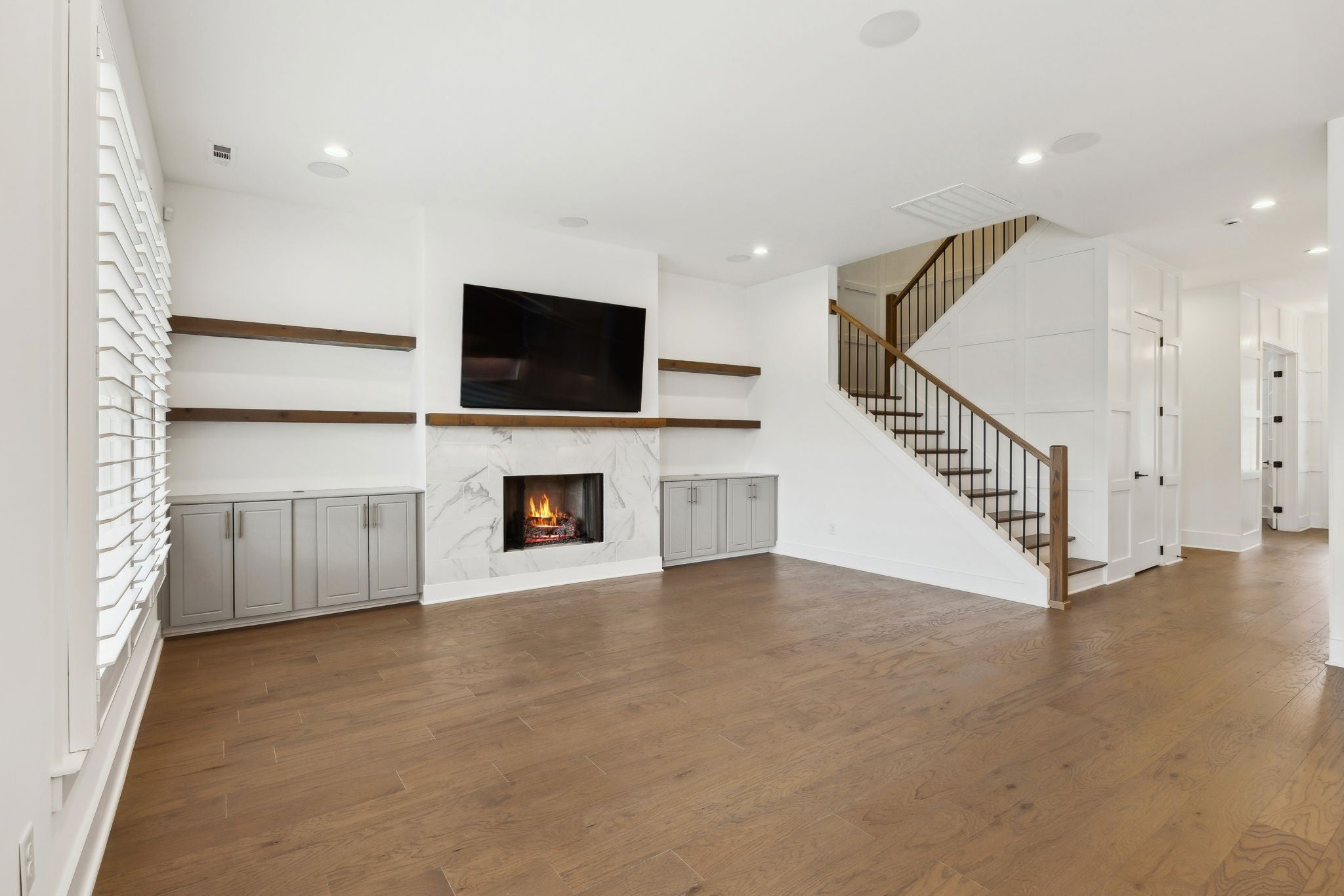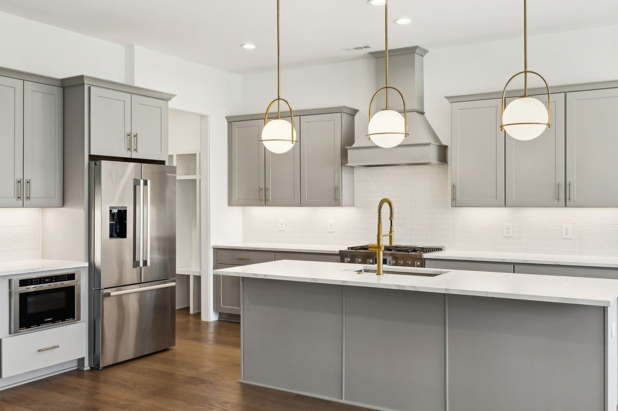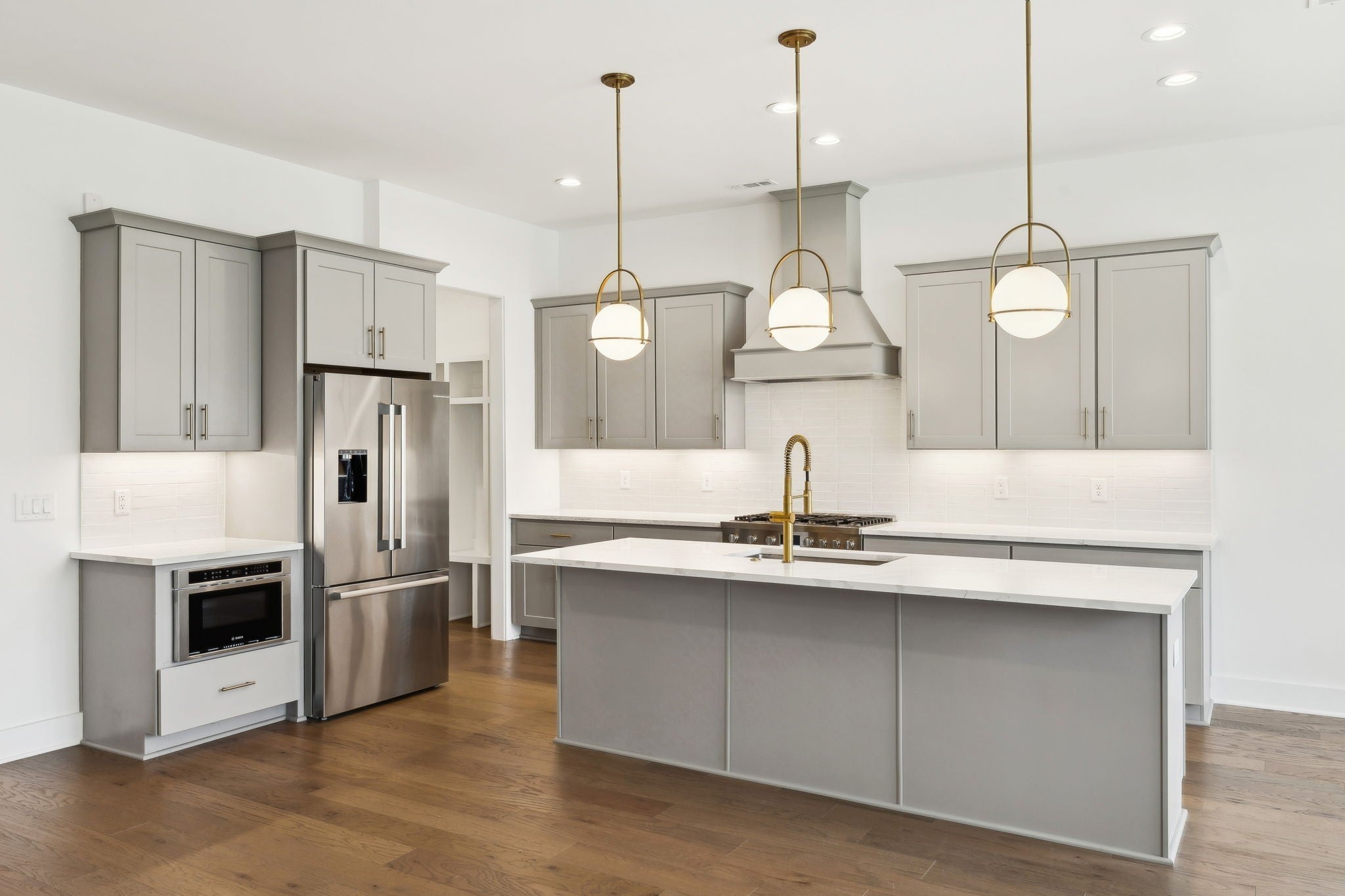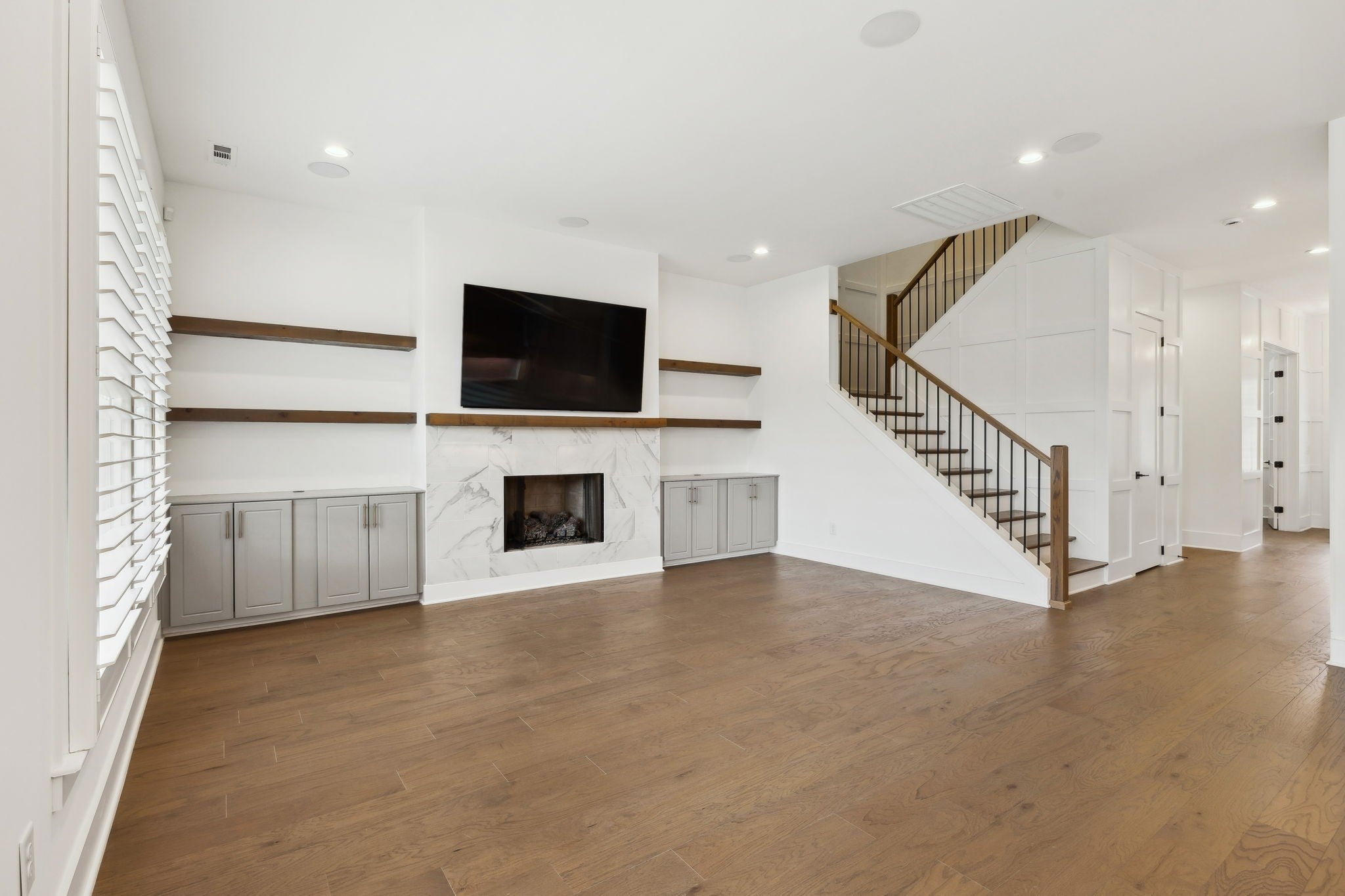 An incredible opportunity to own a professionally staged, move-in-ready townhome within an exclusive gated enclave in the heart of Brentwood. Offering one of the community’s most sought-after floor plans, this residence blends refined design with modern functionality ~ without the delay of new construction. Thoughtful architectural details define the interiors, including custom wood trim, French doors, rich hardwood flooring, and a gas fireplace anchoring the main living space. The open-concept kitchen is both elegant and highly functional, featuring upgraded appliances, an oversized walk-in pantry, and seamless connectivity to the living and dining areas, creating an ideal setting for entertaining and everyday living. The primary suite is a true retreat, complete with a spa-inspired bath, generous walk-in closet, and private covered balcony. Each additional bedroom also offers walk-in closets, while a conveniently placed laundry room provides direct access to the primary suite. Additional highlights include custom plantation shutters, built-in cabinetry, designer lighting, a Beale Street surround sound system, Ecobee smart thermostats, tankless water heater, full irrigation system, and an epoxy-coated garage floor. Two private balconies extend the living space outdoors, offering peaceful, elevated views. Washer, dryer, televisions, and kitchen appliances convey. Ideally located just minutes from Brentwood’s premier shopping, dining, and highly regarded schools, this exceptional residence delivers gated privacy, turnkey luxury, and an elevated lifestyle in one of Brentwood’s most desirable communities.