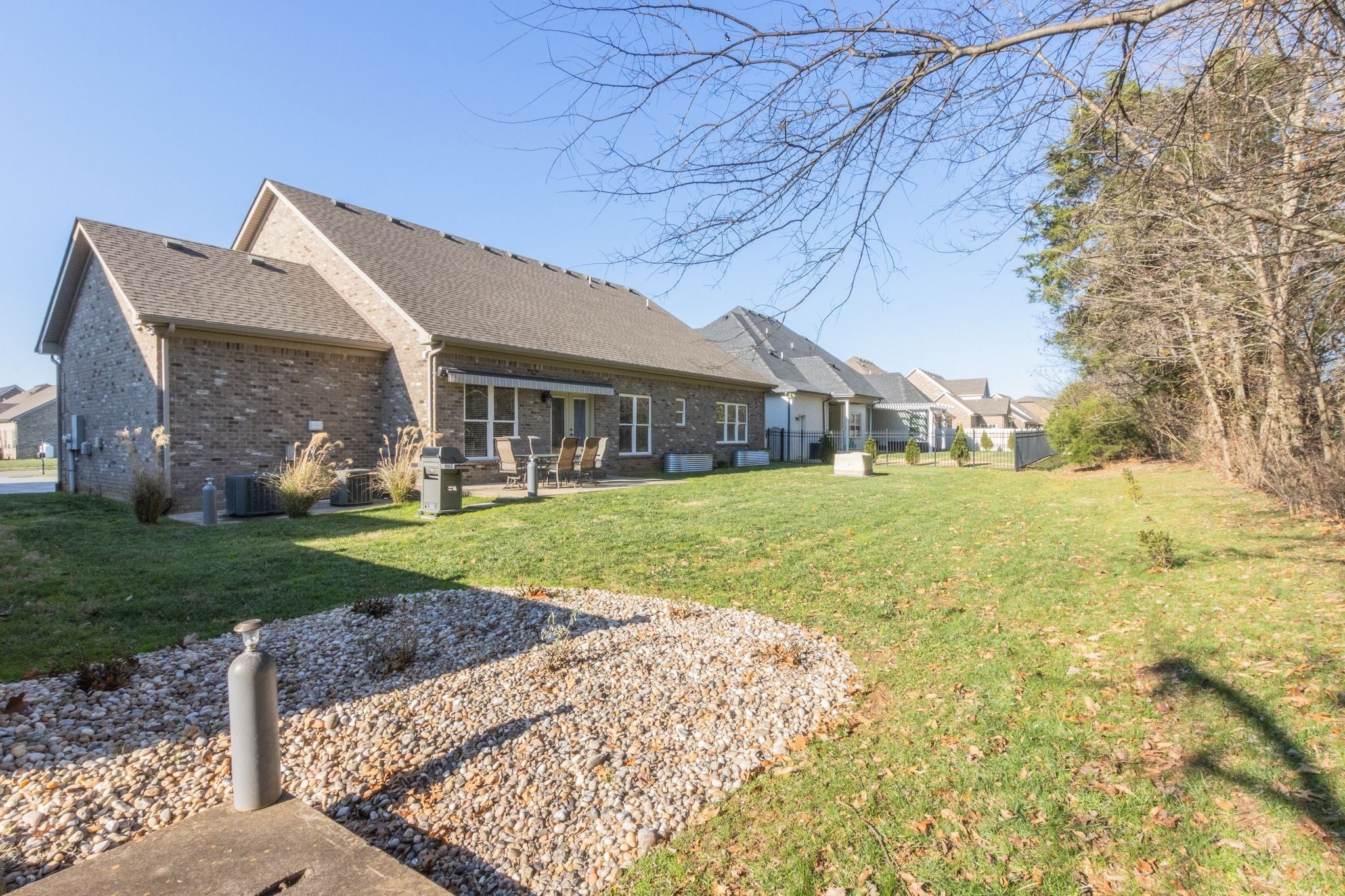 Mostly one-level living in beautiful Stewart Creek Farms! This spacious home offers 4 bedrooms and 3.5 baths, with 3 bedrooms, 2.5 baths, and a dedicated office conveniently located on the main floor. A favorite feature is the laundry room connected directly to the primary closet—designed for everyday ease. The home backs up to a serene tree line, providing exceptional privacy, and features a newly installed irrigation system along with a new awning over the back patio—perfect for outdoor enjoyment. Zoned for the brand-new Stewart’s Creek Elementary and Middle Schools, and complete with a 3-car garage, this home combines comfort, functionality, and an ideal location.