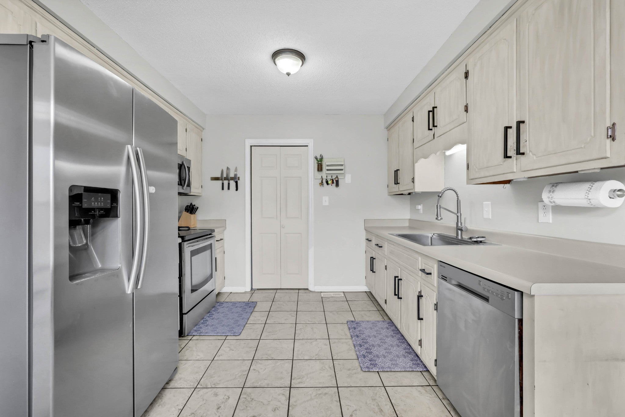 - Electric Oven, Cooktop, Dishwasher, Refrigerator, Stainless Steel Appliance(s)