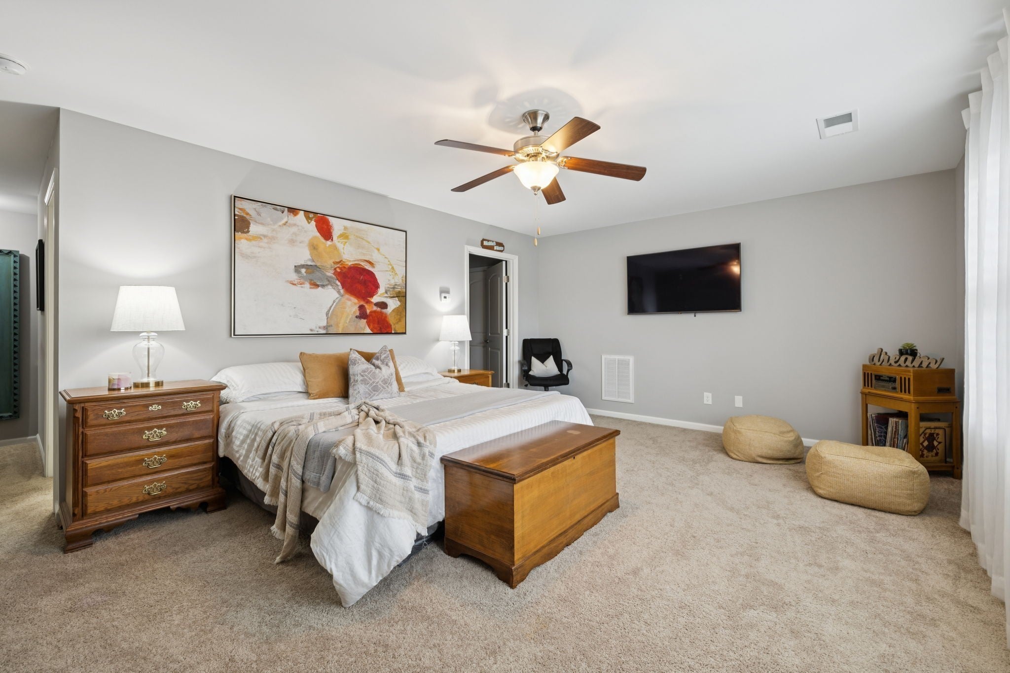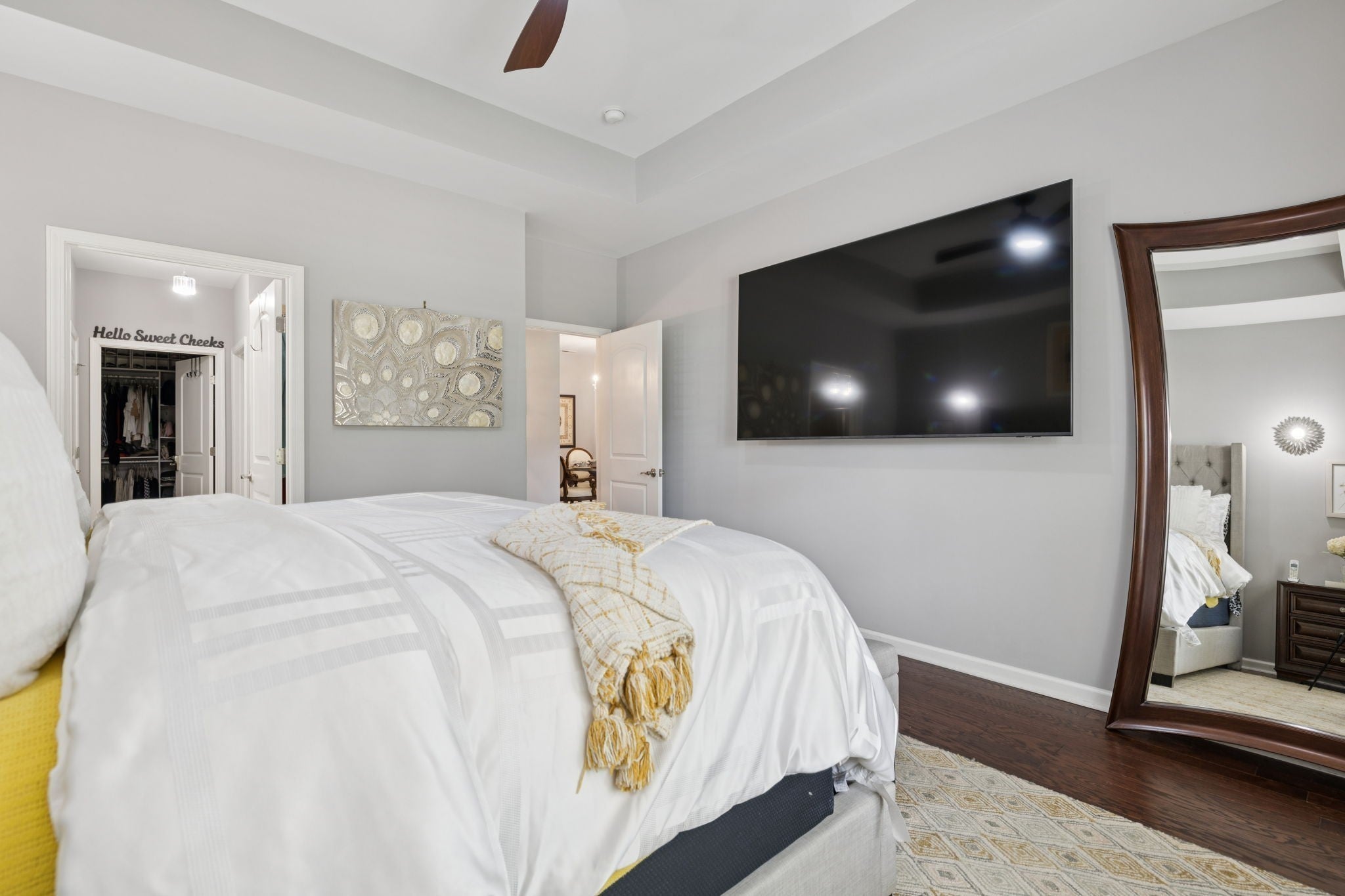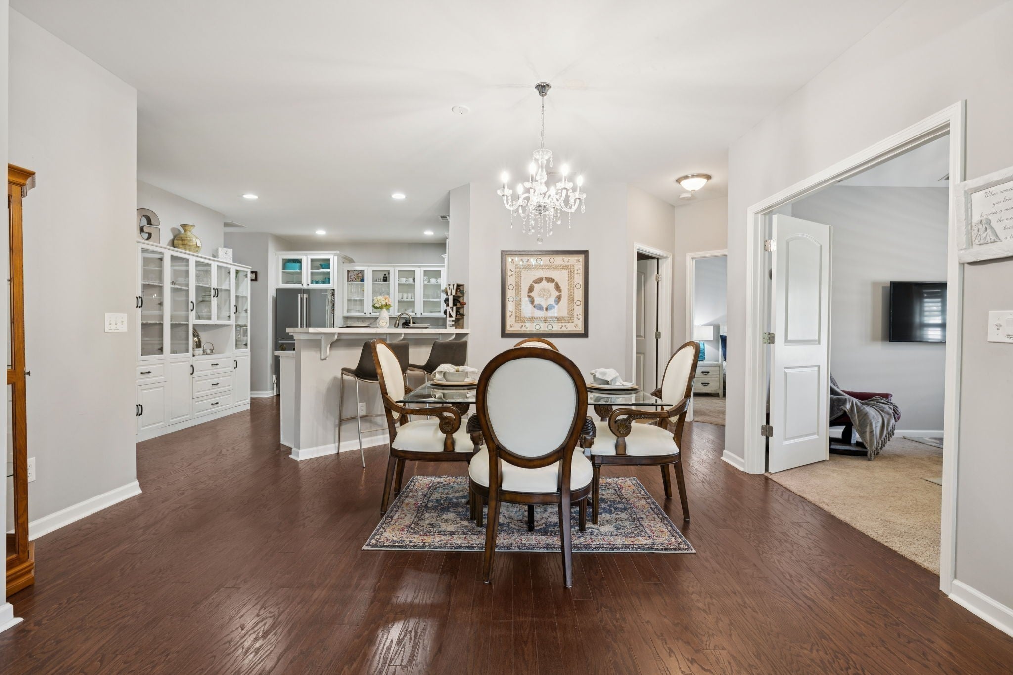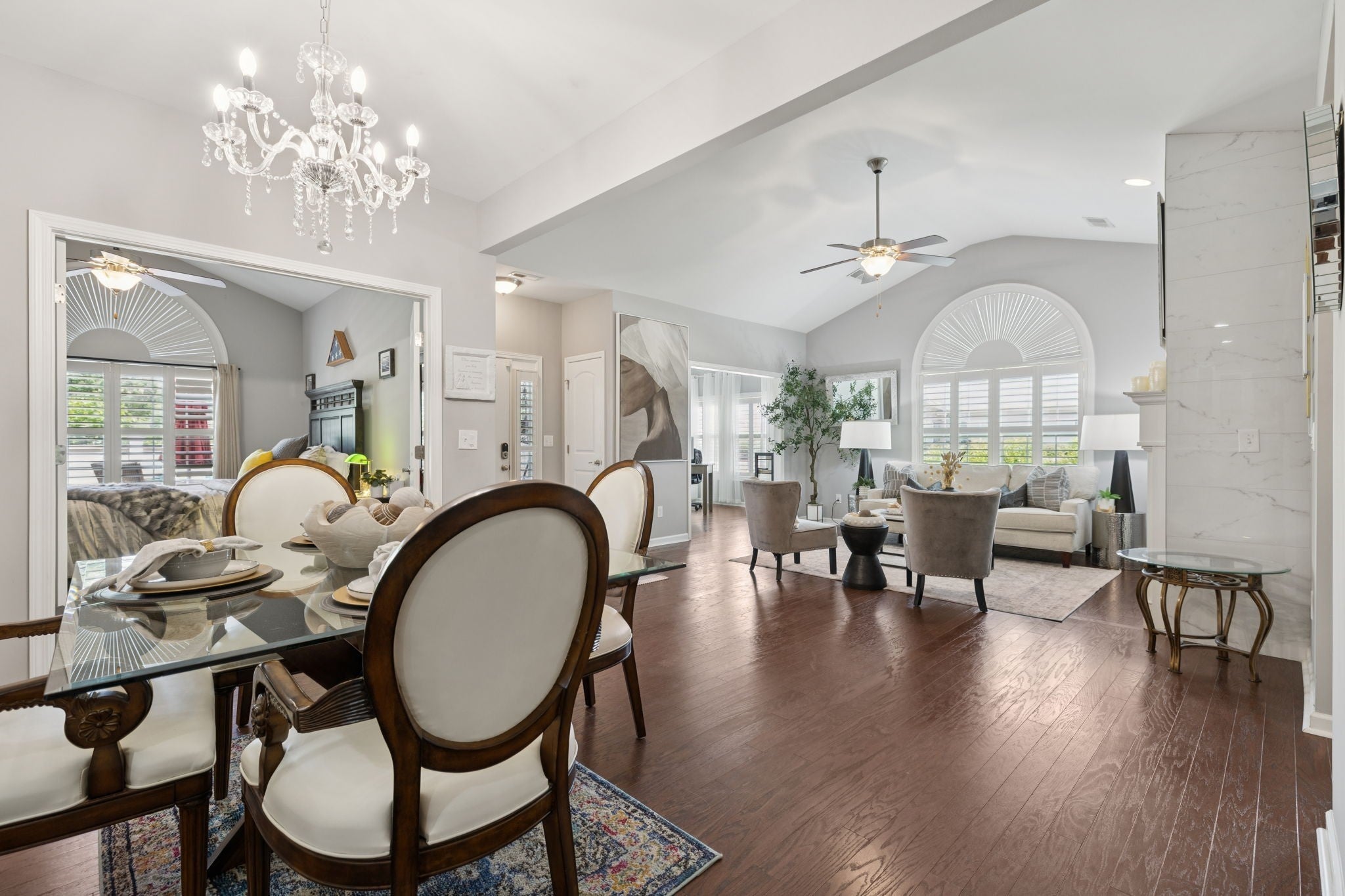 PRICED TO SELL-SCHEDULE YOUR SHOWING TODAY!! 1.5 story home w/ 4 bdrms or 3 bd+bonus rm, 3 full baths & gorgeous sunroom. You'll love the private, fenced courtyard at the front of this corner lot & new refinished hardwood floors in the main living areas-sunroom, living rm, dining rm, kitchen, halls & added to primary bdrm+walk-in closet. New gas fireplace insert in living rm is anchored by new marble tile surround that extends to ceiling & wraps around sides, another elegant upgrade that make this home truly special. The stylish kitchen is a chef’s dream, w/ brand-new quartz backsplash & countertops, professionally updated cabinetry, new glass door fronts, new appliances, huge, double door pantry has upgraded wood shelf covers built-in for lots of storage! The main-level primary suite offers a private entry w/new wall sconce, new ceiling fan, new custom wall sconces for reading light & ambiance, new hardwood flooring in bdrm & closet. The primary bath has double extended vanities, tiled shower, separate deep soaker garden tub, private water closet, new upgraded lighting, linen closet w/upgraded wood shelf covers & the best part-the massive walk-in closet with Closets By Design built-ins to maximize space & keep the owners' closet beautiful & organized. There are 2 more bdrms on the main level & full bath to serve them both. The formal dining room has a new crystal chandelier & has been centered. A giant utility room w/lots of shelves w/space for your cleaning items & bulk shopping + a wash sink. Upstairs, you will find another suite-full bath, giant bdrm & humungous walk-in closet/Could be bonus room & walk-out attic for storage. Fresh interior paint throughout adds a crisp, polished feel that ties everything together. With a community clubhouse, fitness center, pool, pond, walking trails, sidewalks+street lights make this more than just a place to live—it’s a home w/ a luxurious lifestyle upgrade!