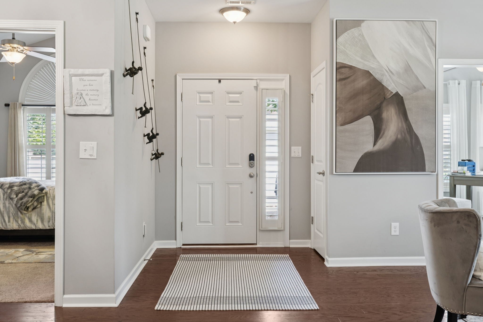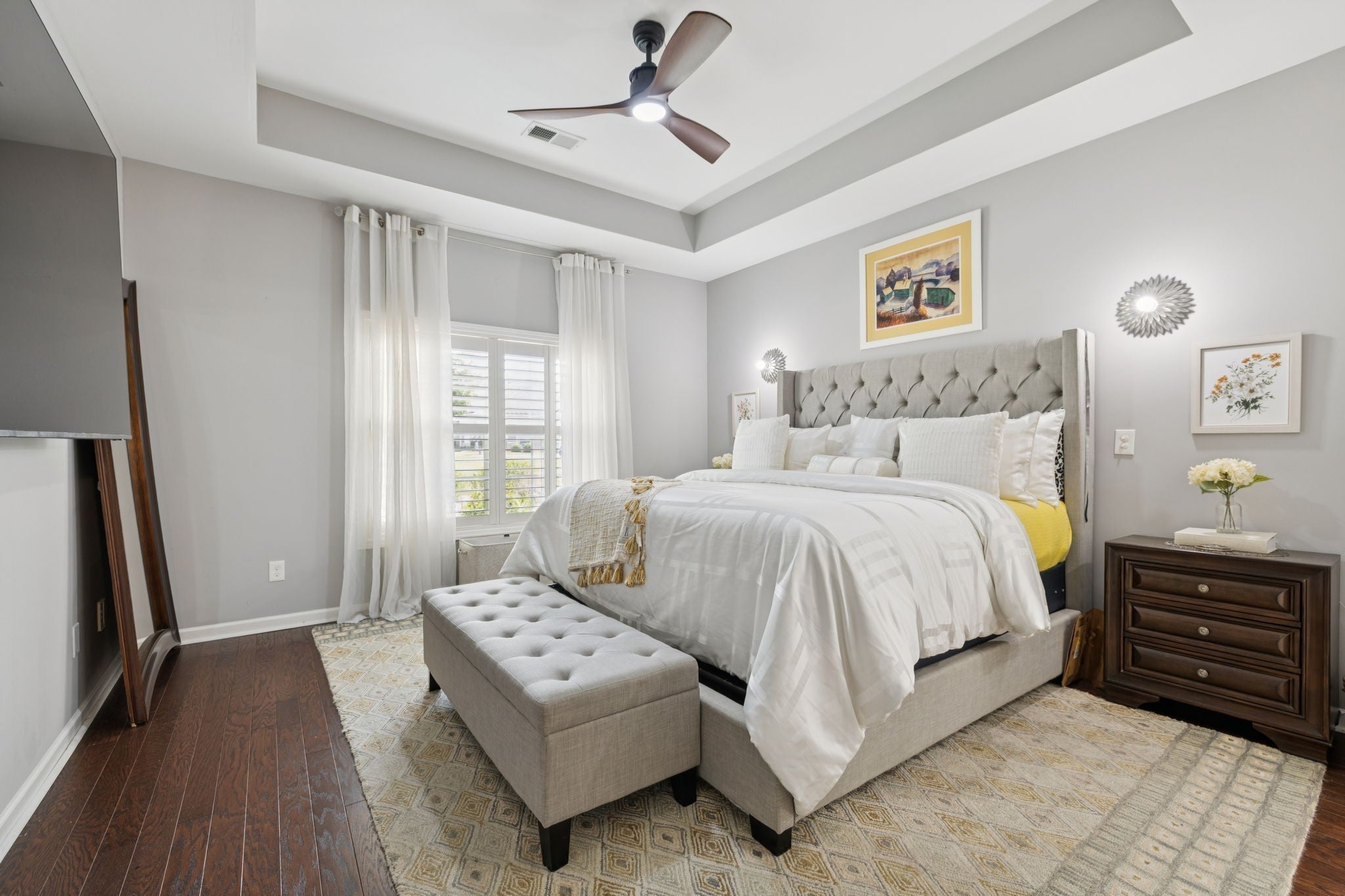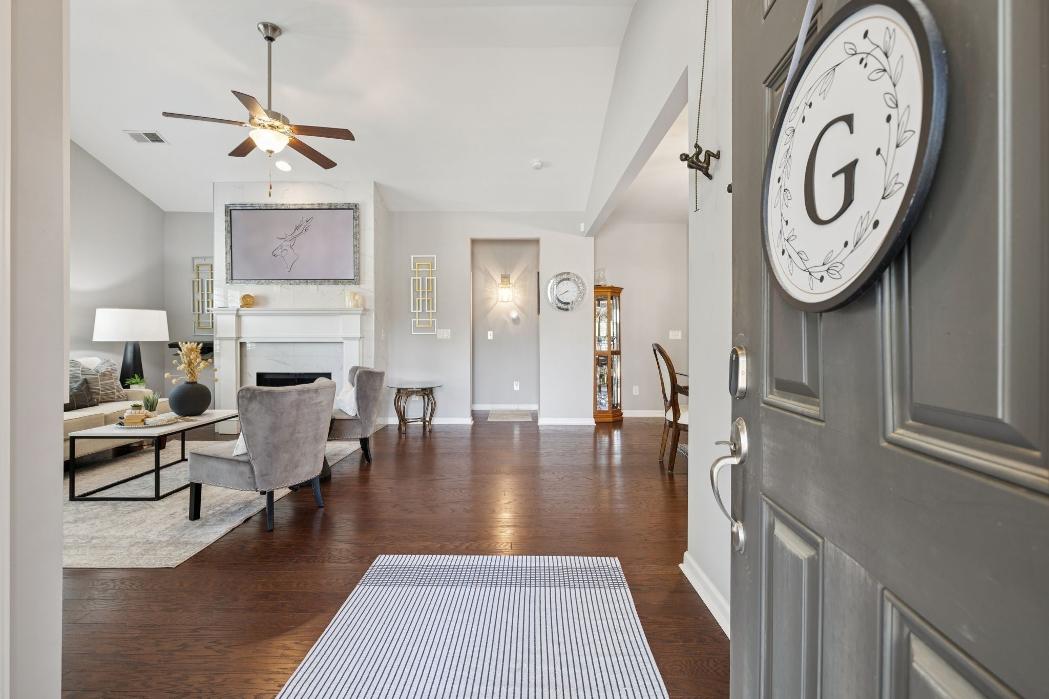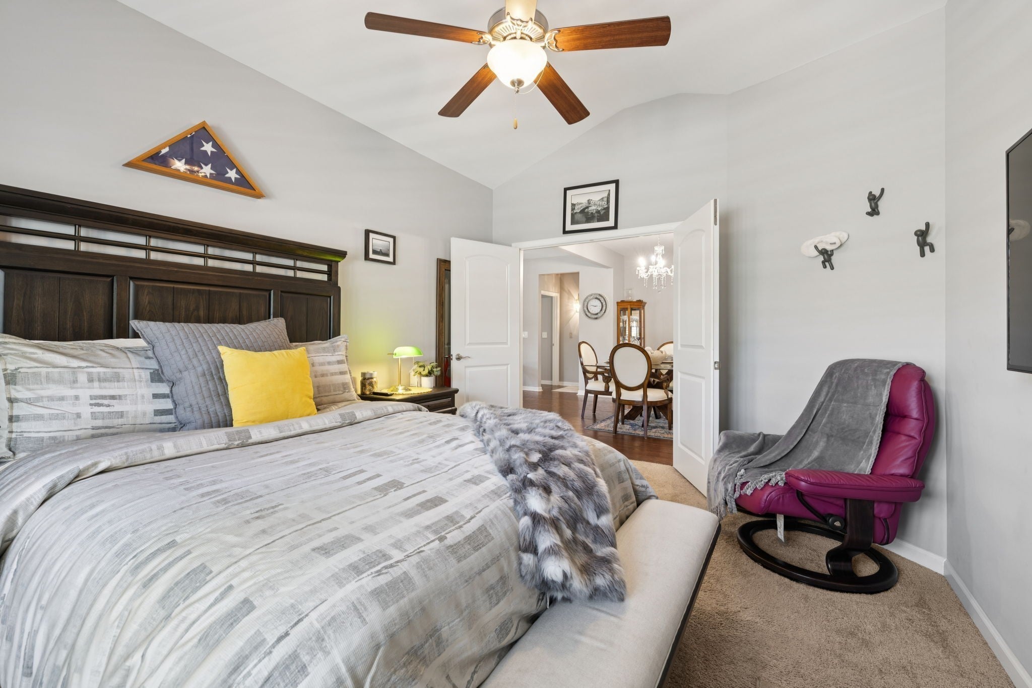 PRICED TO SELL-SCHEDULE YOUR SHOWING TODAY!! 1.5 story home w/ 4 bdrms or 3 bd+bonus rm, 3 full baths & gorgeous sunroom. You'll love the private, fenced courtyard at the front of this corner lot & new refinished hardwood floors in the main living areas-sunroom, living rm, dining rm, kitchen, halls & added to primary bdrm+walk-in closet. New gas fireplace insert in living rm is anchored by new marble tile surround that extends to ceiling & wraps around sides, another elegant upgrade that make this home truly special. The stylish kitchen is a chef’s dream, w/ brand-new quartz backsplash & countertops, professionally updated cabinetry, new glass door fronts, new appliances, huge, double door pantry has upgraded wood shelf covers built-in for lots of storage! The main-level primary suite offers a private entry w/new wall sconce, new ceiling fan, new custom wall sconces for reading light & ambiance, new hardwood flooring in bdrm & closet. The primary bath has double extended vanities, tiled shower, separate deep soaker garden tub, private water closet, new upgraded lighting, linen closet w/upgraded wood shelf covers & the best part-the massive walk-in closet with Closets By Design built-ins to maximize space & keep the owners' closet beautiful & organized. There are 2 more bdrms on the main level & full bath to serve them both. The formal dining room has a new crystal chandelier & has been centered. A giant utility room w/lots of shelves w/space for your cleaning items & bulk shopping + a wash sink. Upstairs, you will find another suite-full bath, giant bdrm & humungous walk-in closet/Could be bonus room & walk-out attic for storage. Fresh interior paint throughout adds a crisp, polished feel that ties everything together. With a community clubhouse, fitness center, pool, pond, walking trails, sidewalks+street lights make this more than just a place to live—it’s a home w/ a luxurious lifestyle upgrade!