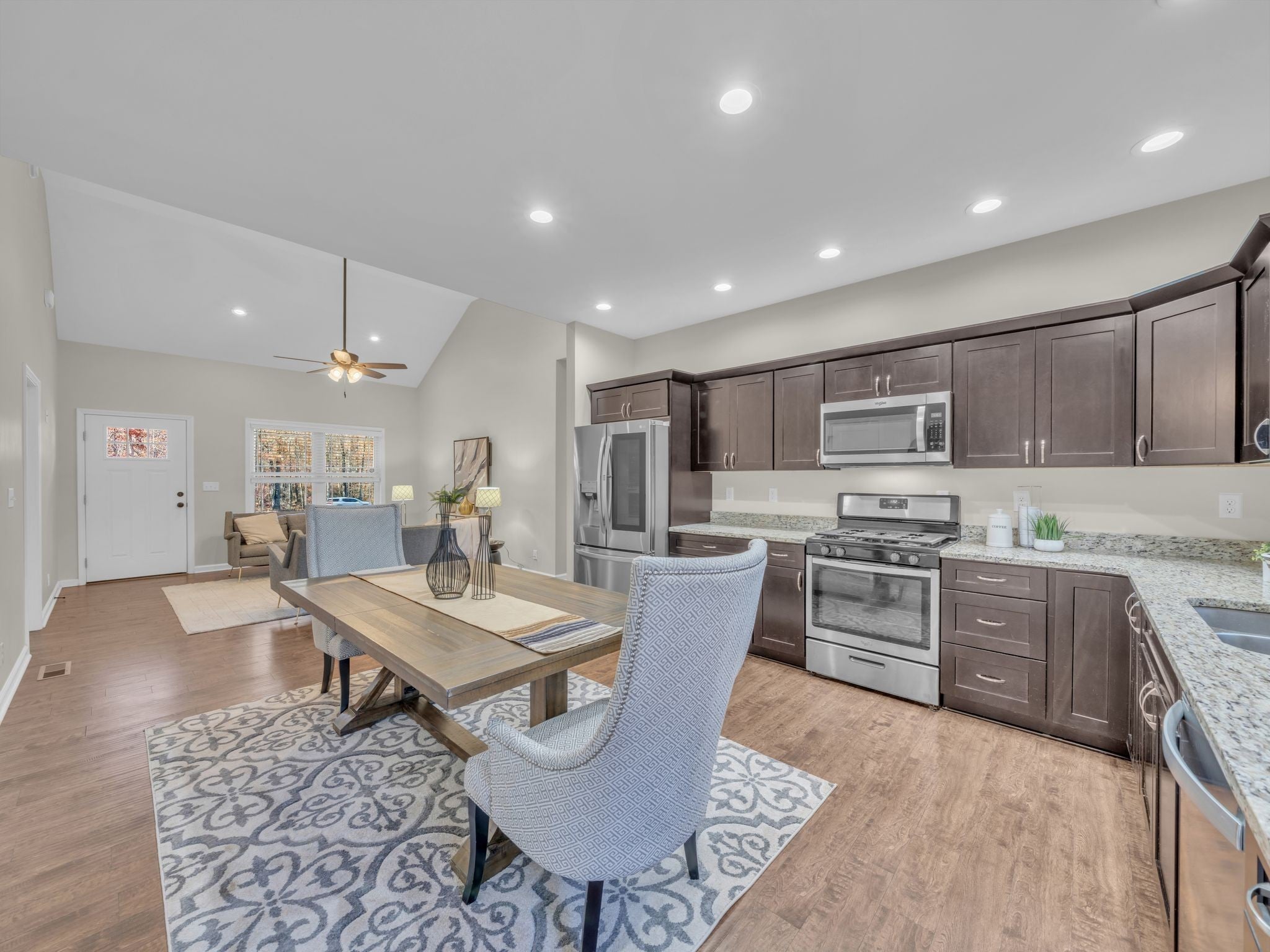 - Oven, Gas Range, Dishwasher, Microwave, Refrigerator, Stainless Steel Appliance(s)