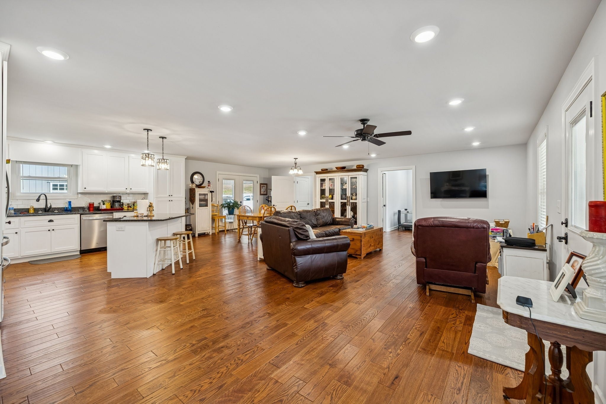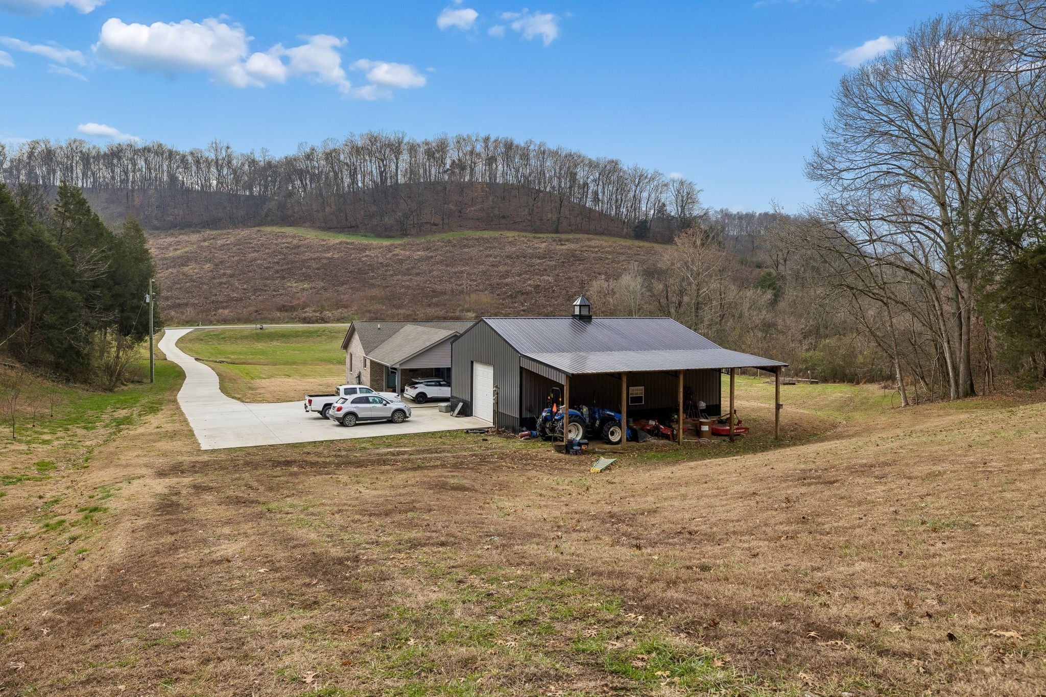 The piece of tranquility you have been looking for. Located just minutes from I-65, surrounded by beautiful rolling landscapes and a year round spring out front. A place where you can relax on your front porch and enjoy sunset views and wildlife. This custom built brick home with open concept features true hardwood floors, with granite counter tops. As you drive up the all concrete driveway, you are welcomed by the beauty of a treelined property offering privacy, along with a 30x 40 shop and 14x40 lean to that is equipped with electric and water. Need an extra bedroom, no problem, the septic can handle more and the expansive attached carport could easily be converted to an owners suite or 2 oversized bedrooms. this is 20 acres being surveyed off of a larger parcel.