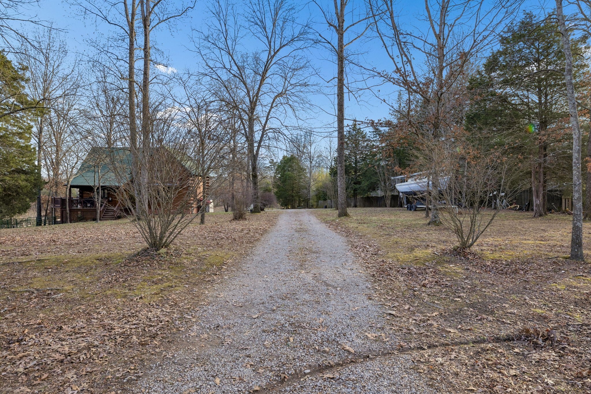 Custom log cabin retreat situated on over 10 private acres in scenic Lyles, Tennessee, offering an exceptional blend of open pasture, gently rolling land, and wooded privacy. Expertly constructed using Northern White Pine logs hand-selected and milled in New Hampshire by Pioneer Log Homes, this custom-built property showcases true craftsmanship and durability, combining classic log-home character with thoughtful modern conveniences. Step inside to rich wood finishes, soaring vaulted ceilings, and a dramatic stone fireplace that anchors the main living area and creates a warm, inviting, and timeless atmosphere. The open-concept layout seamlessly connects the living, dining, and kitchen spaces, making it ideal for entertaining, hosting family and friends, or enjoying peaceful evenings surrounded by nature. Large windows throughout the home allow abundant natural light and provide picturesque views of the surrounding countryside. The lower level expands the living space and functionality, featuring a second bedroom, full bath, laundry area, a dedicated 9x12 hobby or storage room, and flexible office or recreation space—perfect for guests, work-from-home needs, a media room, or additional living quarters. Year-round comfort is maintained with high-efficiency Trane HVAC units offering zoned climate control. Additional property highlights include a high-quality private well delivering clean, refreshing water, high-speed fiber optic internet, a charming rocking chair front porch, and a massive deck ideal for outdoor entertaining while taking in sweeping views of the rolling Tennessee countryside. This property offers privacy, versatility, and the opportunity to enjoy country living at its finest.