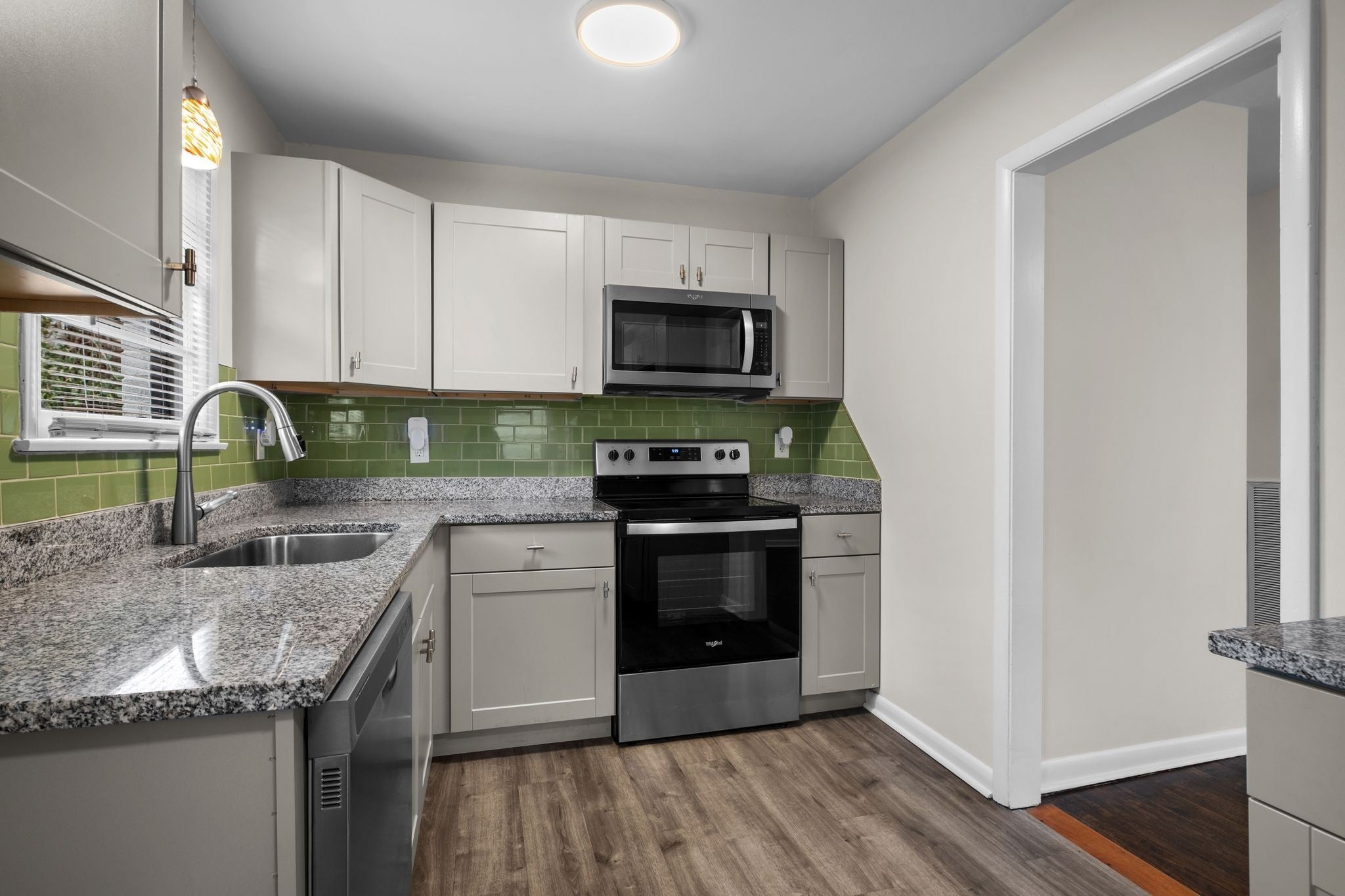 Well-maintained and thoughtfully updated, this charming home features a renovated kitchen with granite countertops and stainless-steel appliances, fresh interior paint, a new front door, and an updated bathroom. Original hardwood floors have been beautifully refinished throughout. Enjoy a fenced backyard, concrete parking, and convenient laundry hookups located off the central hallway. The tall crawlspace provides excellent additional storage. Tastefully accessible one floor ranch with grab bars and seat in walk-in shower. Ideally located with quick access to Briley Parkway and I-40, and just two miles from the airport