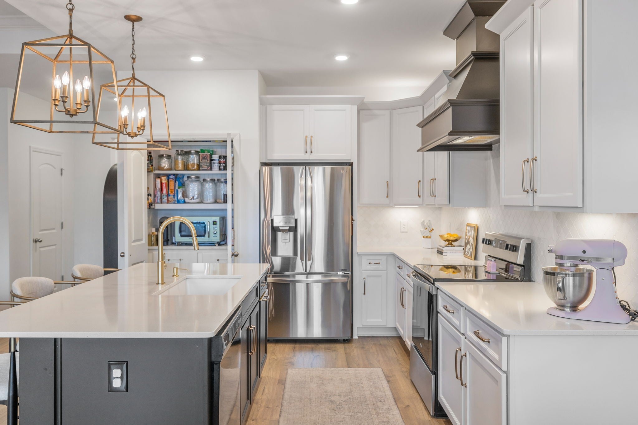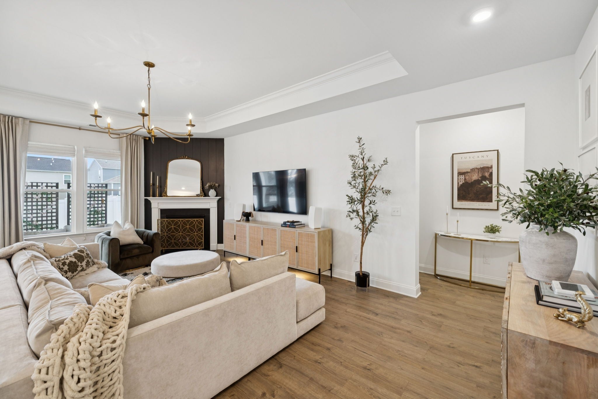 The one with all the upgrades! This home is truly turn key with custom upgrades, trim and paint. Featuring 3 bedrooms, 2 baths, and a beautiful show-stopping custom primary closest. Bedroom one features custom woodwork, that transforms it into a moody home office complete with built in desk and custom trim on the walls. Bedroom two features custom trim work and a custom closet for additional storage. The primary bedroom features a moody paint, tray ceiling, custom trim work, a faux fireplace mantel statement piece, a bathroom suite with large shower and beautifully curated custom closet. The living room has a tray ceiling and gas fireplace. The kitchen includes a custom wood vent hood, marble tile backsplash, custom pantry with countertop. This home also comes equipped with a water softener system. The community includes pool and dog parks with access included with HOA. Located across from East Nashville Brew Works - WilCo. Convenient access to I-40 and 840