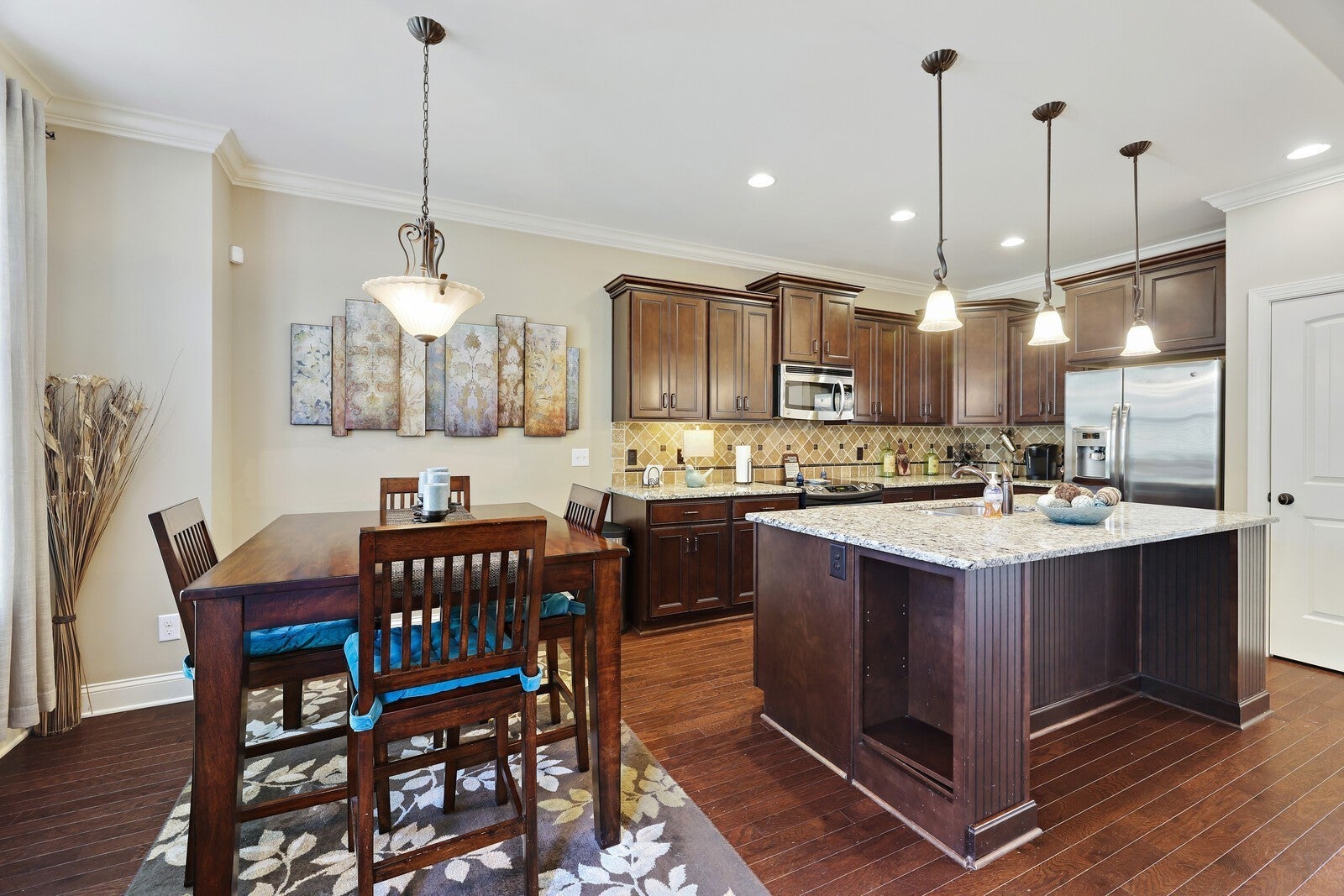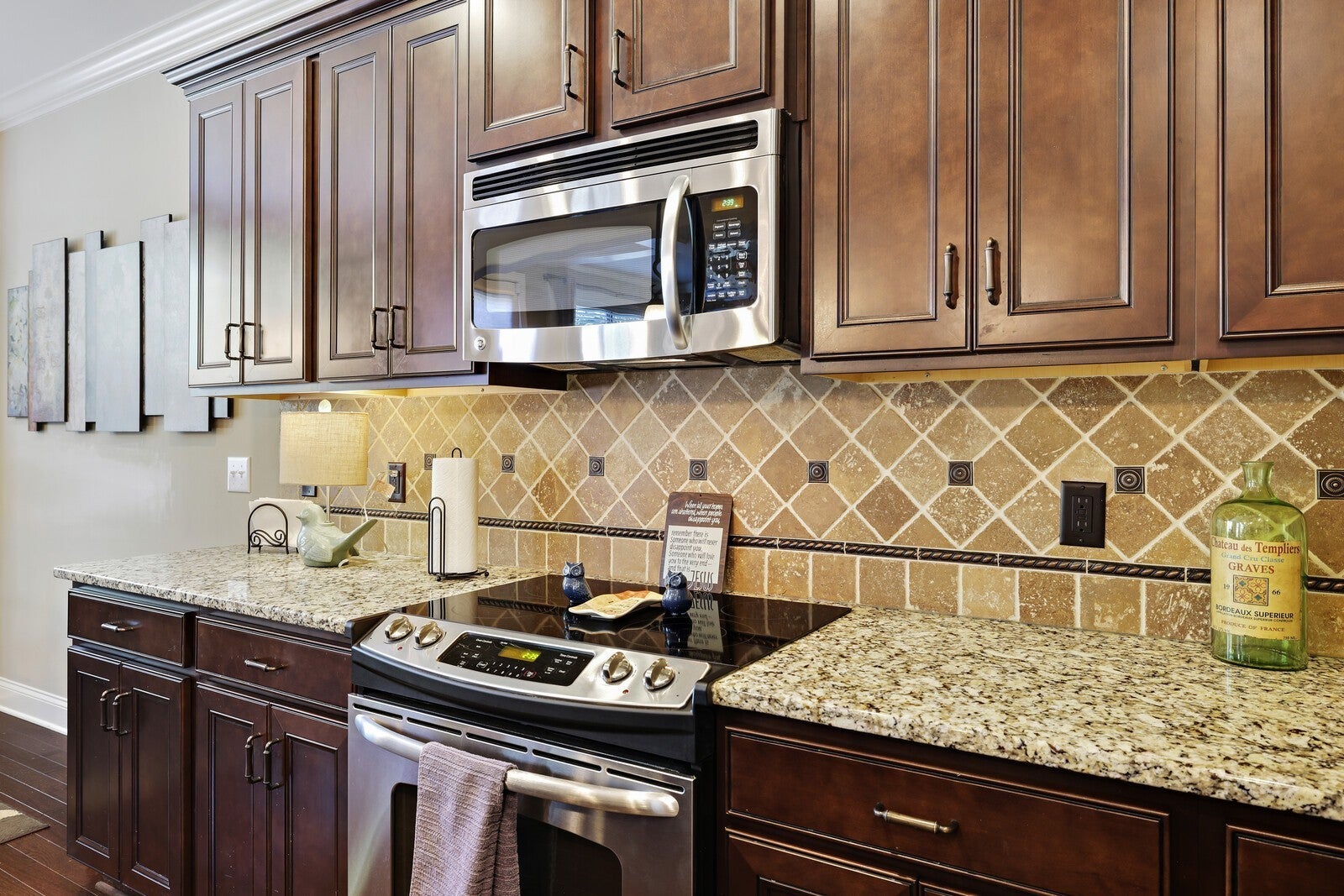 - Built-In Electric Oven, Electric Range, Dishwasher, Disposal, Microwave, Stainless Steel Appliance(s)