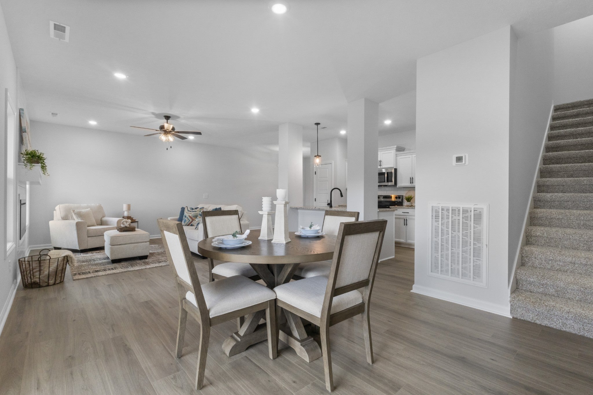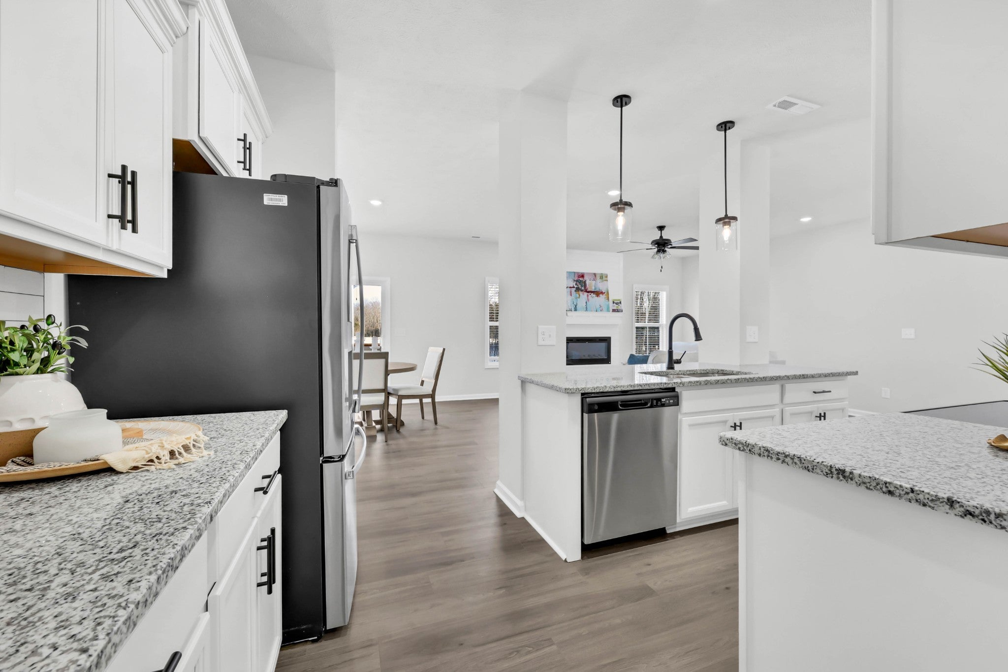 Welcome to this gorgeous modern farmhouse! Upon entering you will find an open concept living room and kitchen perfect for entertaining. The kitchen features a large kitchen island, granite countertops, stainless steel appliances, and trending backsplash tile. Fridge, Blinds & Washer/Dryer INCLUDED!!! A mud room and half bathroom can also be found downstairs near the entrance of the two-car garage. Head upstairs to find three bedrooms, 2 full bathrooms and a centrally located utility room. The primary bedroom features a bathroom with a large tiled shower, double vanities and a walk-in closet. This home is located close to shopping, 101st & I-24 interstate access, making your commute to Nashville or Ft. Campbell convenient. 15k Seller concessions offered!!