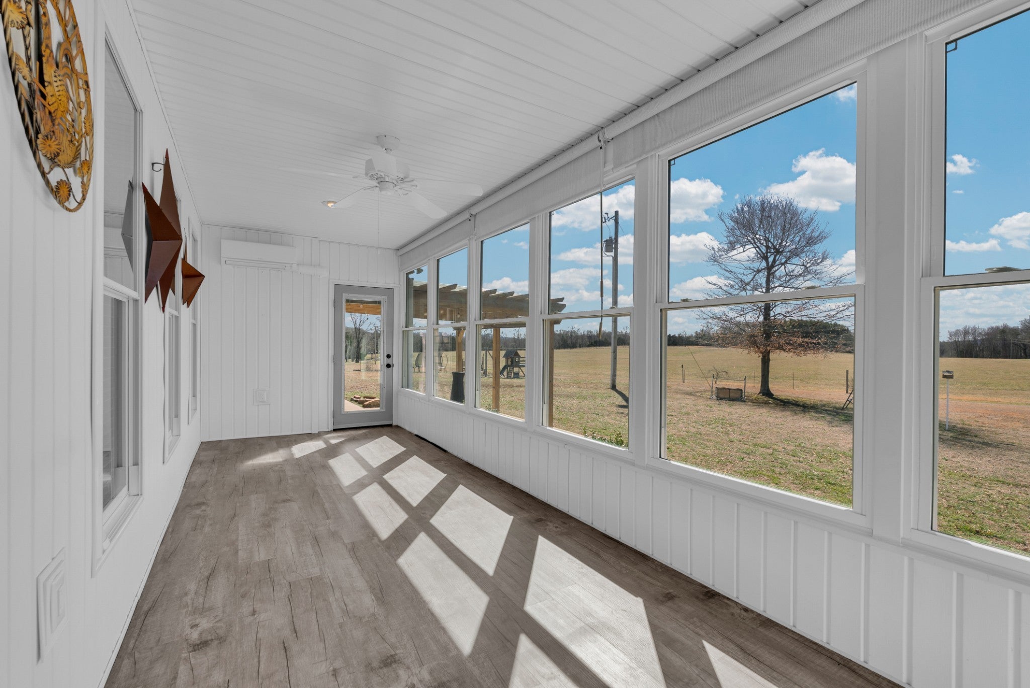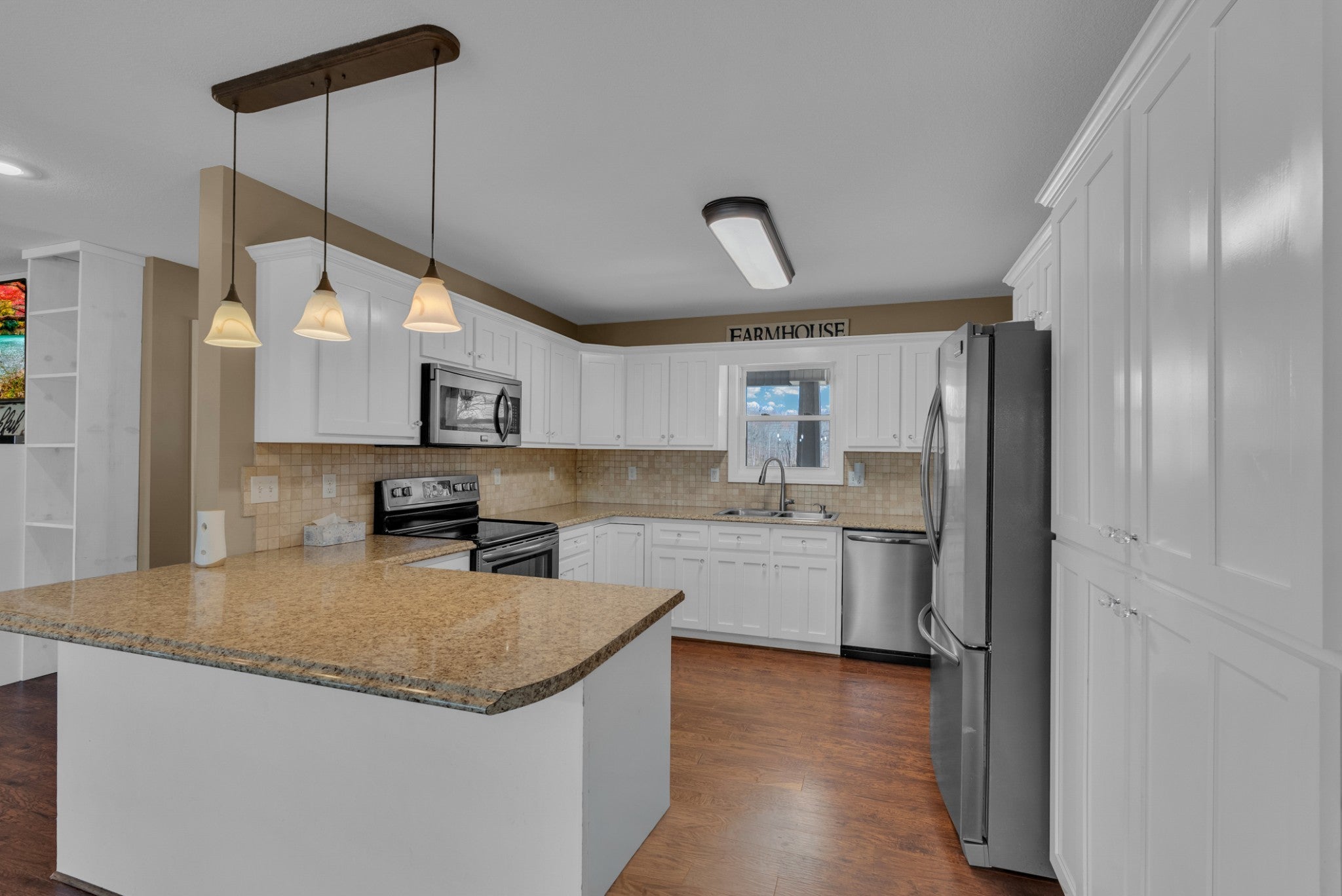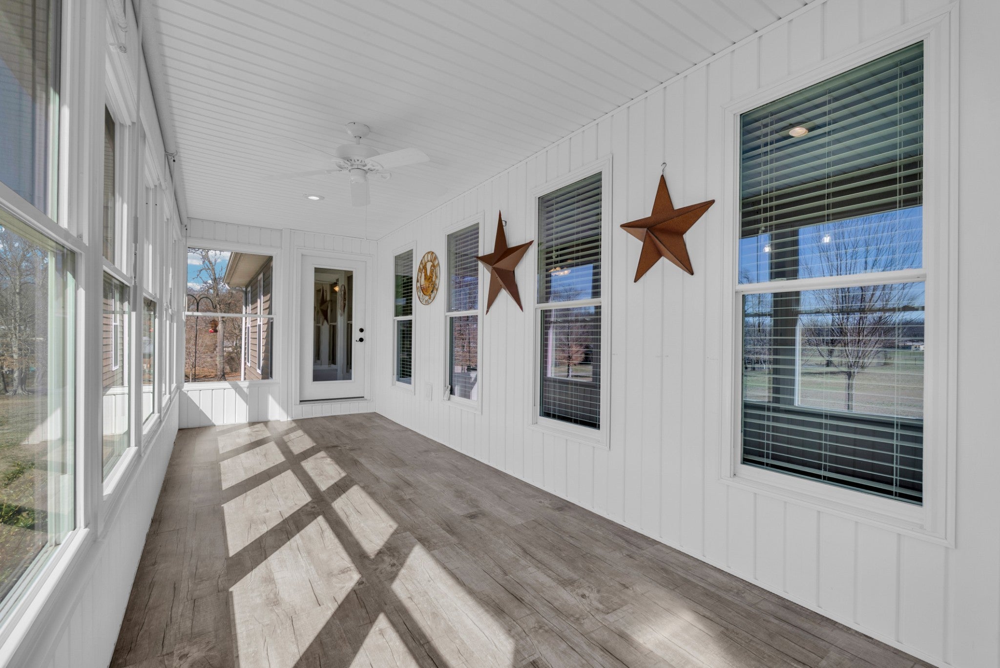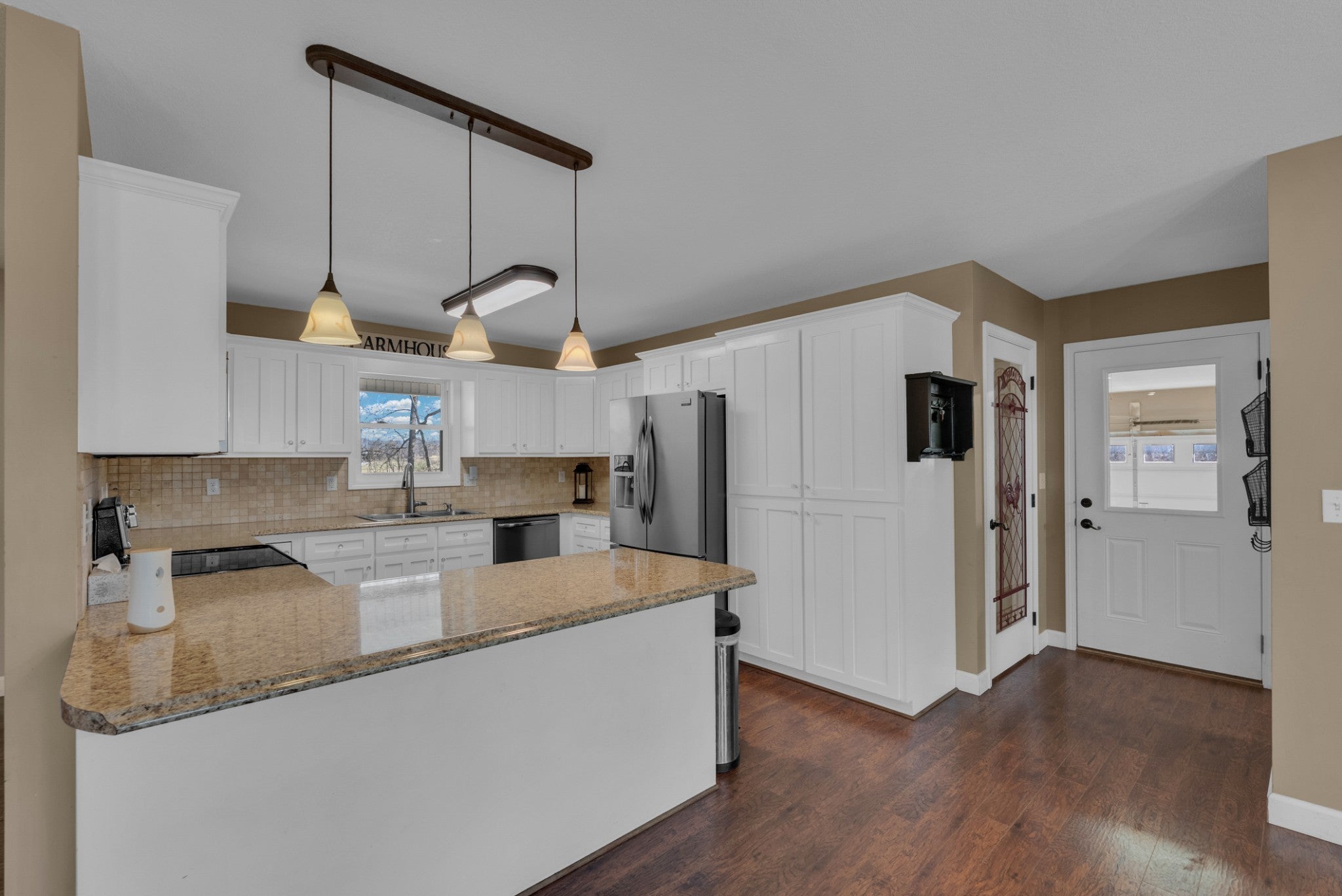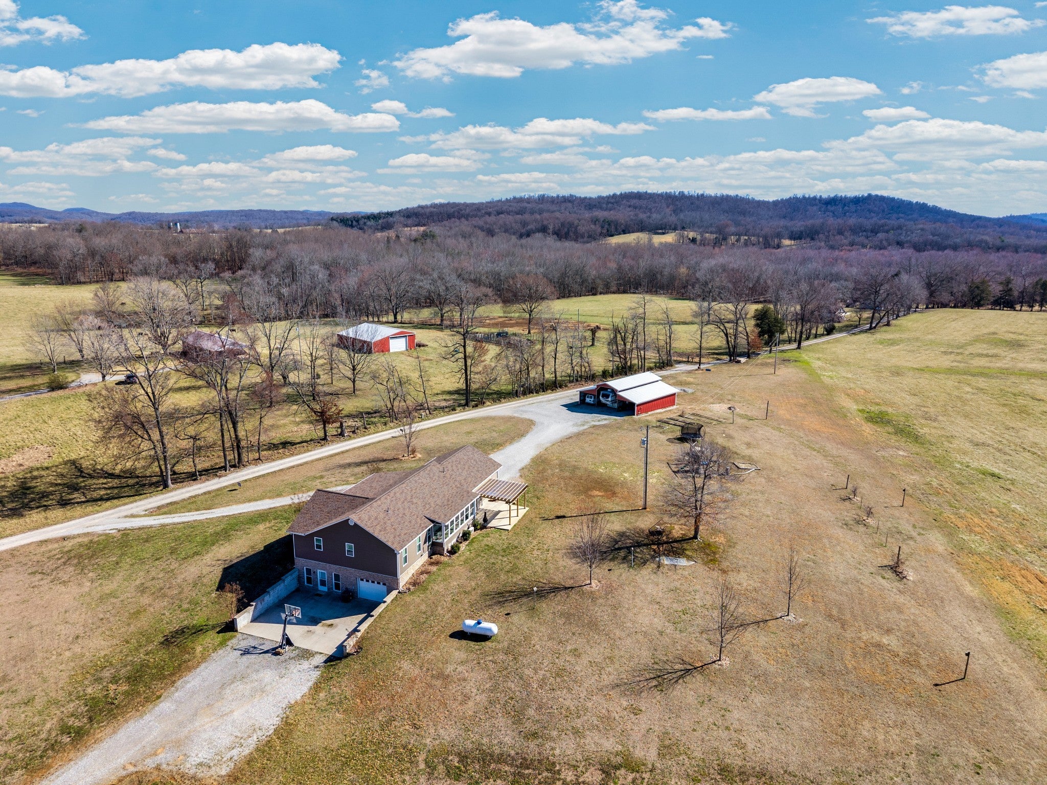 Welcome to this beautiful 3 bed/3 bath Modern Farm Ranch. From the moment you walk you in, the main thing you feel is HOME! You'll discover the following: Open floor plan with gorgeous pergo wood floors, a main floor primary with walk-in closet and double vanity, walk-in shower bath. A four-seasons room, two guest rooms and a full bath complete the main floor, along with laundry/pantry room, and fully equipped kitchen with penisula. The garage boast extended length for longer vehicles. Downstairs there are additional bedroom and living spaces, a full bathroom, a large safe room and workshop that has a full garage door to outside. Outside you will find 5 acres of land hosting a 44x44 barn, garden spots, strawberry bed, grapevines, blueberry bushes, play ground equipment and room for more! Ask your agent about the lender and seller incentives on this spectacular home. Buyer and Buyer's agent to verify all information. The Realty Firm does not hold earnest money. More land available! NOTE: Appx. 2.82 acres has been taken from adjoining MLS 241108 tract parcel ID 105 005.02 that makes this listing 5 acres total. See attached documents for new survey. OTHER: Barn has 240v power source for heavy duty tools or power equipment, RV Hook-Ups, Above ground water taps.