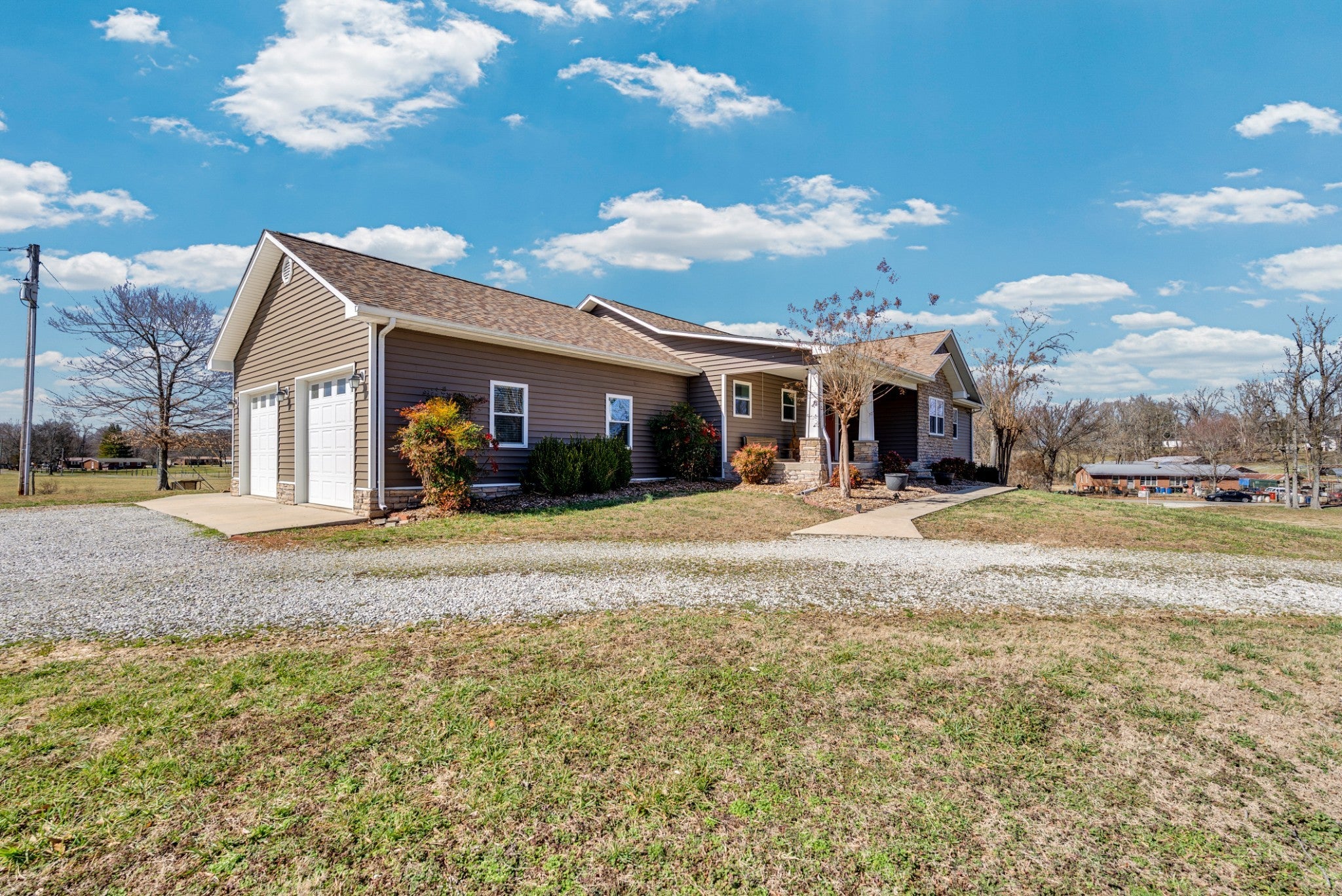 - Frame, Stone, Vinyl Siding