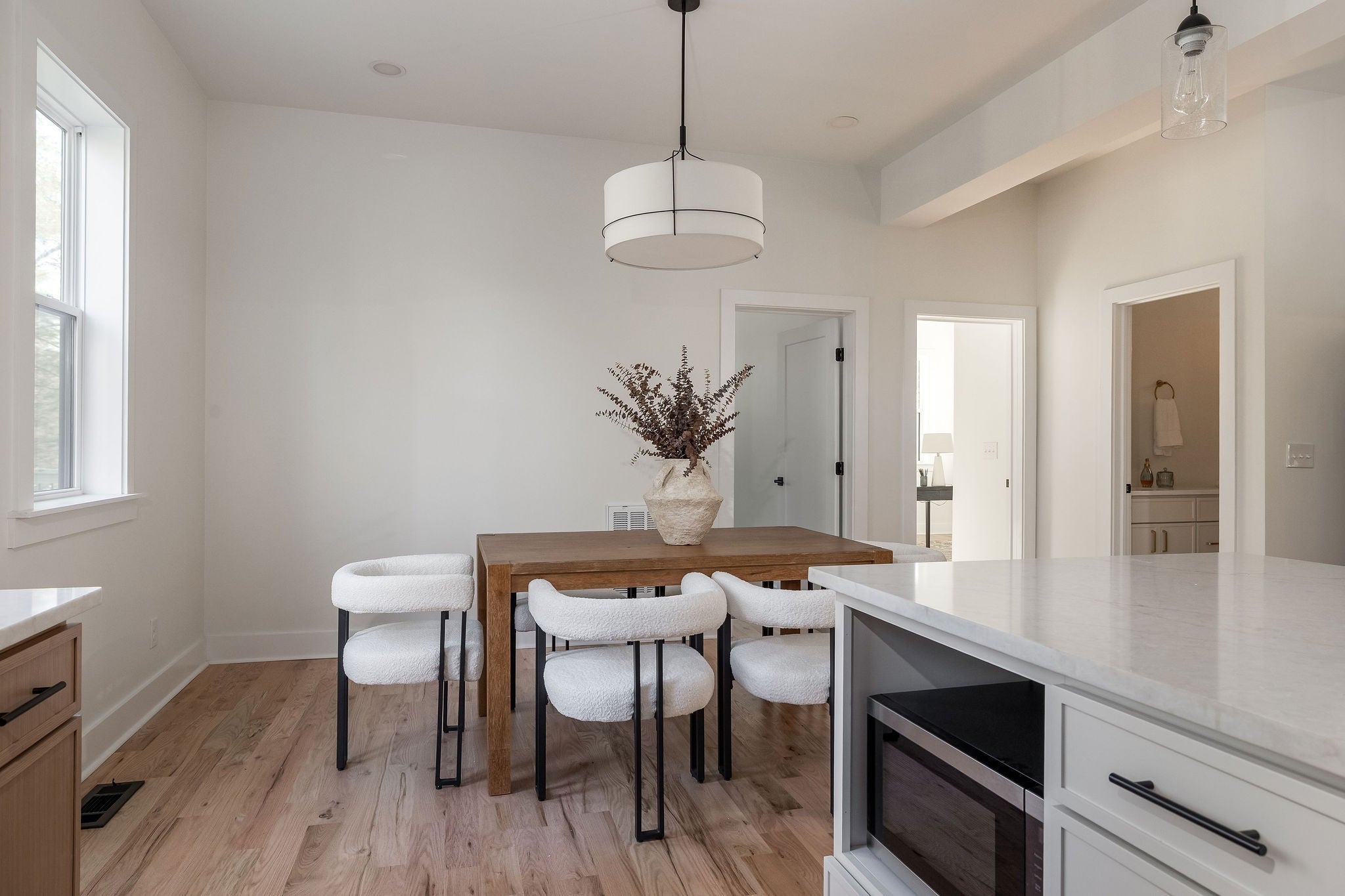 An immaculate OneToCrew design and build on a coveted street and pocket of Neelys Bend. Built from the foundation up, this home can be your sanctuary for years to come. The open living area and kitchen allow for easy entertaining, featuring a large island perfect for congregating and ample storage, stainless steel appliances, floor to ceiling cabinets, and easy access to al fresco dining on the deck. The secondary bedrooms share the soaring ceilings on this floor and custom built closets. Extra living space can be found downstairs, with a large den and media area that walks out to the backyard. An additional two secondary bedrooms, bathroom, and laundry room allow this floor to potentially serve as a suite or room to spread out. The showstopper is the primary suite that encompasses the entire second floor, finished with cathedral ceilings, natural light, soaking tub, double shower, and matching double closets. Off of the bedroom is a flex room that can serve as an office, nursery, or yoga room. Namaste. Finish your workout and step across the hall to the private primary laundry, complete with a half bath. All of this, tucked on the magical river neighborhood on the bend. With almost an acre of green space, creek, and soaring old growth trees, this is the craftsman meets farmhouse you have been waiting on, just in time for the fall colors to grace the view outside your new soaking tub.