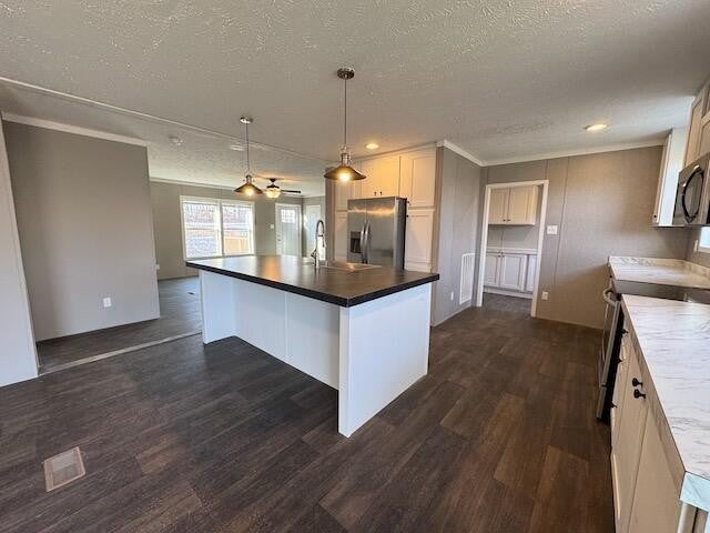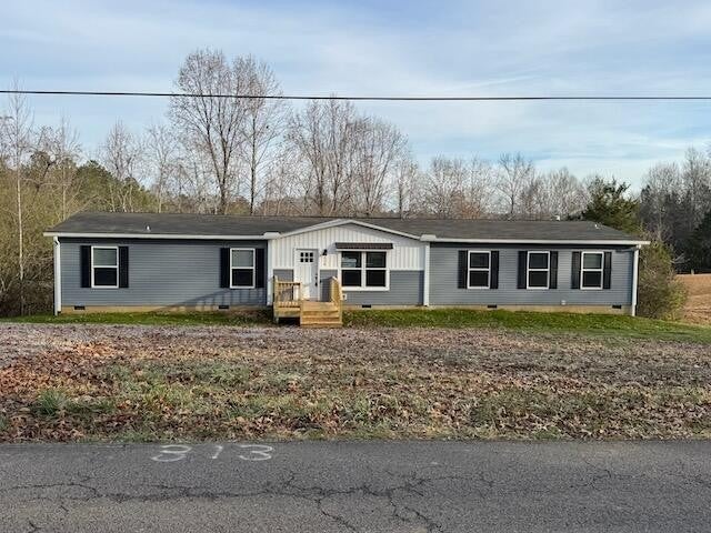 Massive open floor plan home with circular driveway on 1+ acre in country location. Large open living room with combo kitchen dining and family room. Kitchen has center island, lots of cabinets and SS appliances. Combo with dining room and family rom with sliding glass doors to new deck and family room with stone look fireplace and built in bookshelves. Oversized master bedroom with ensuite bathroom with double walk in shower, double vanities, soaking tub and walk in closet. 3 additional guest bedrooms and 2 guest bathrooms (1 Jack n Jill), 1 additional room with closet. Large laundry /mud room with sink and washer and dryer Home eligible for 100% financing with a USDA or VA loan, 96.5% financing with FHA loan and also possible seller financing.
