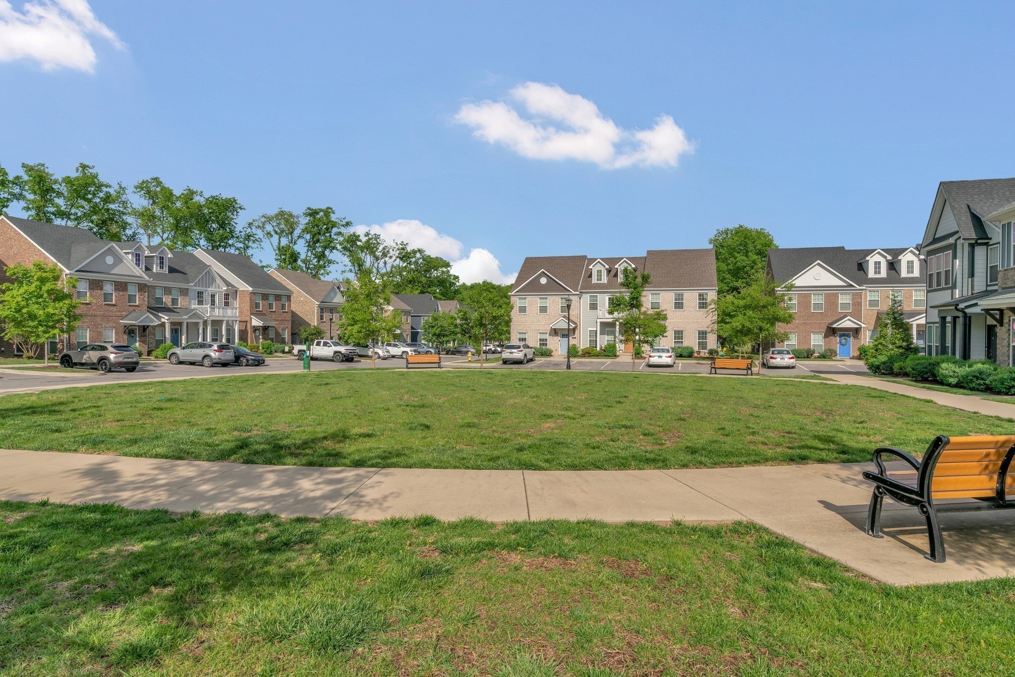 Set in a quiet, walkable community with its own pool and direct access to Old Hickory Lake, this move in ready townhome invites you to slow down and enjoy the ease of lake living. Picture morning coffee walks along the water, afternoons spent paddle boarding or kayaking nearly year round, and evenings that flow effortlessly into dinner at Sanders Ferry Pizza & Pub just down the neighborhood path. The classic red brick exterior and coastal blue accents welcome you home, while inside a bright open layout with airy ceilings, soft neutral tones, and abundant natural light creates a calm, comfortable backdrop. The kitchen blends style and function with sleek cabinetry and modern hardware, opening to a dining space perfect for casual meals or weekend gatherings. Two bedrooms each with private en suite baths make the home ideal for guests, roommates, or creating a restful primary retreat, and thoughtful details like faux wood blinds, light toned flooring, and a private patio ready for grilling or unwinding under the stars add to the appeal. Combining low maintenance living with walkability, lake access, and modern conveniences close at hand, this Hendersonville townhome offers the kind of lifestyle that feels like a getaway every day.