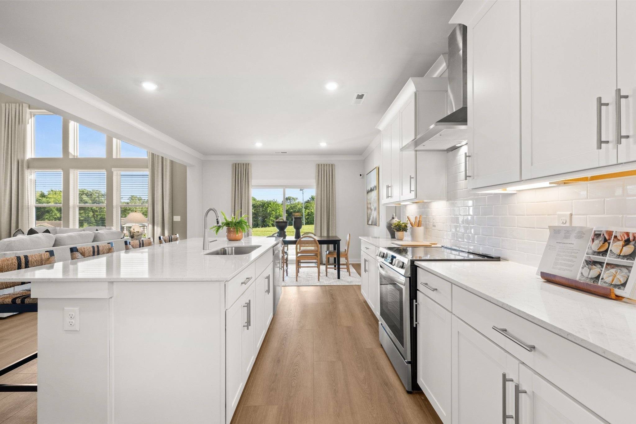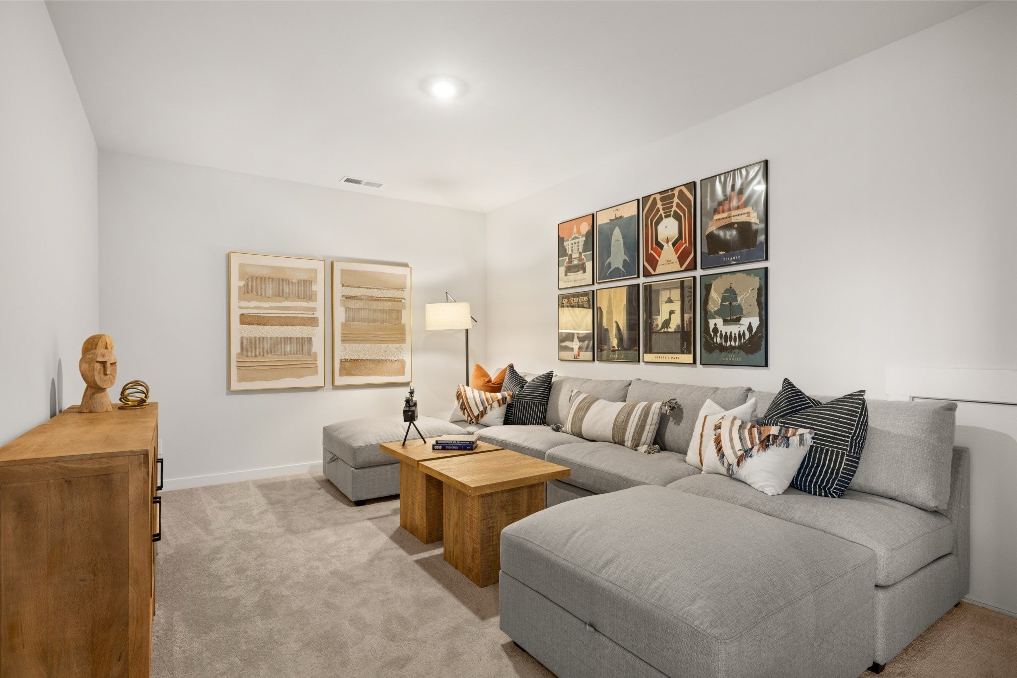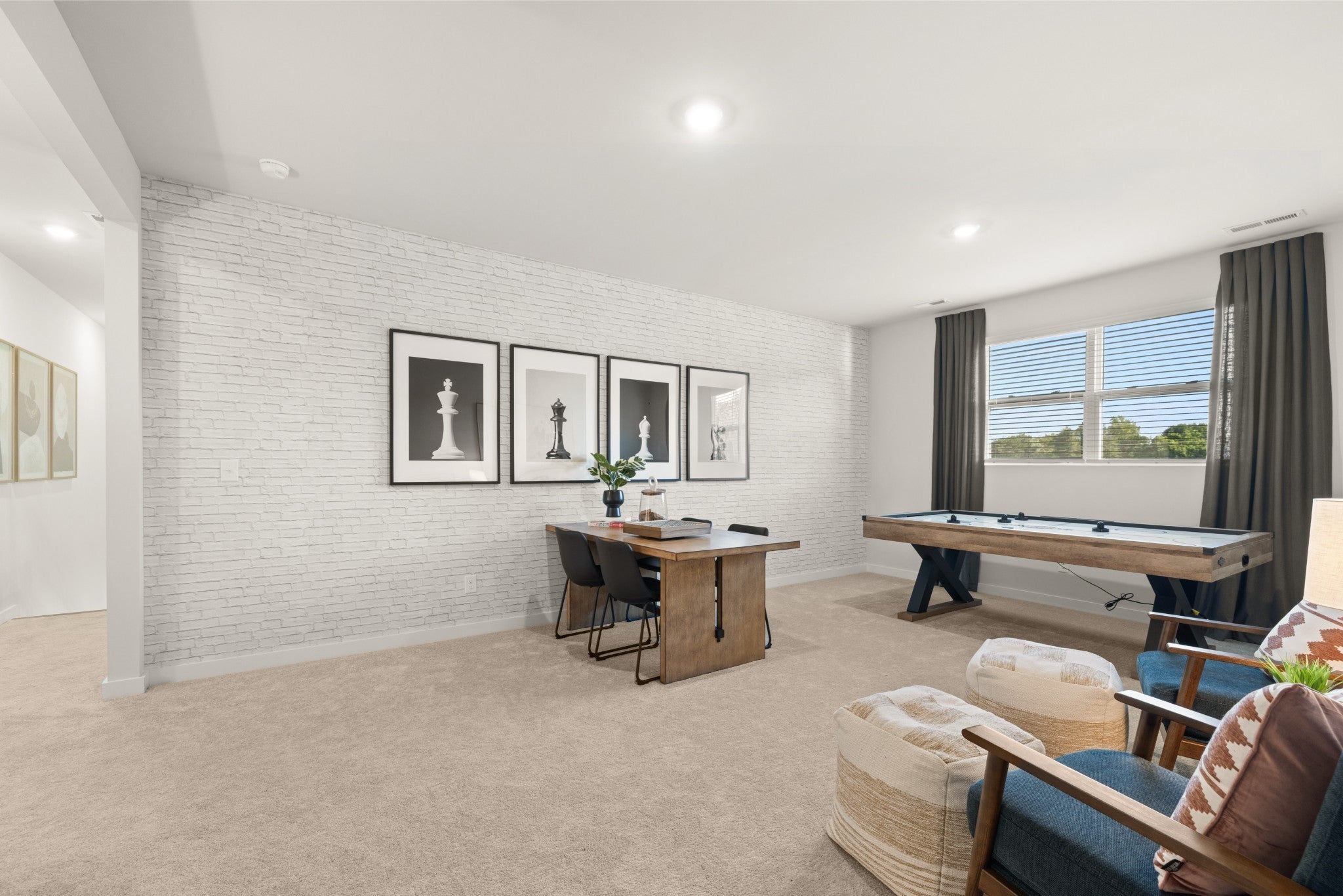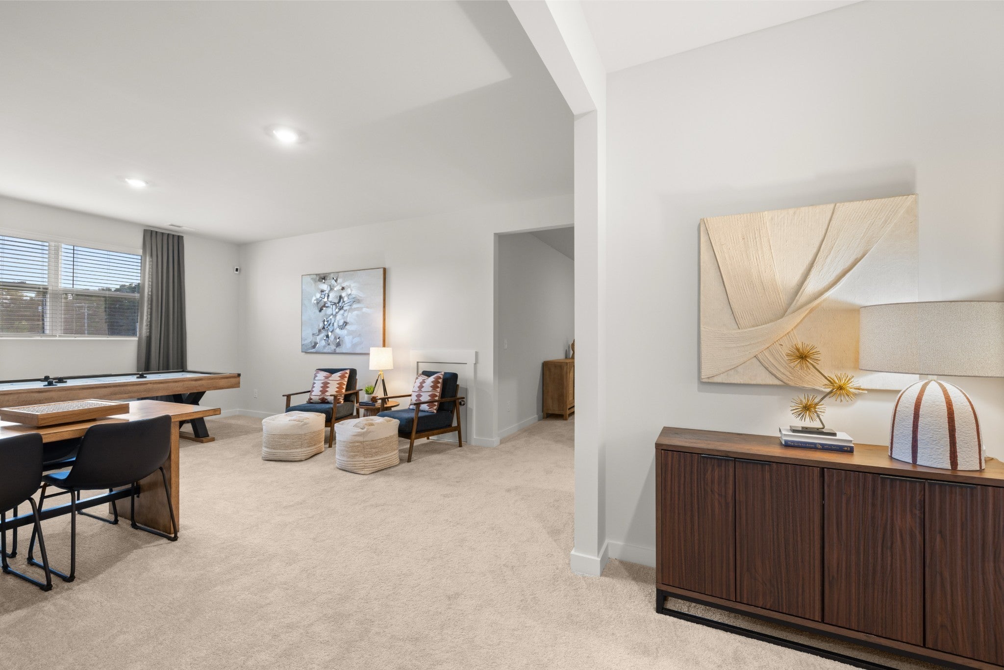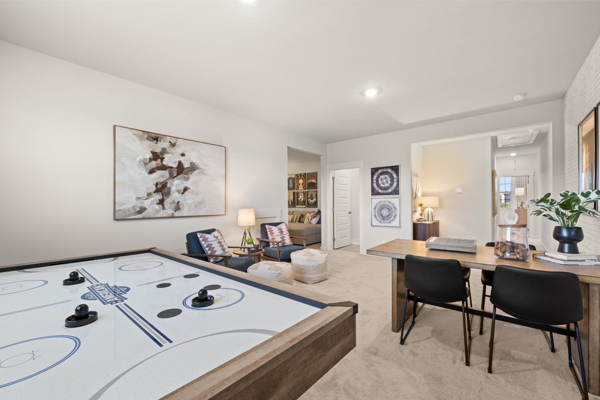 The first floor of this two-story home shares an open layout between the kitchen, nook and family room for easy entertaining and access to the patio for outdoor lounging. A more formal dining room is at the front of the home for dinner parties and a study to work from home. Two bedrooms are on the first floor, including a luxe owner's suite and a secondary bedroom, ideal for overnight guests. Upstairs are three secondary bedrooms, a versatile game room and a media room for added living space. *Images from a furnished model of this home. Actual configuration and features may vary.