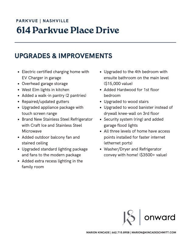 Discover the perfect blend of comfort, convenience, and lifestyle in this rare 4-bedroom, 3.5-bathroom home in the highly desirable Parkvue community. Designed for effortless living, this residence stands out with a sought-after upgraded ensuite bedroom on the main level—ideal for guests, multigenerational living, or a private home office. Step inside and feel immediately at home. Natural light fills the living spaces, and thoughtful finishes create an inviting atmosphere. Enjoy slow mornings with coffee or relaxing afternoons with a cocktail on your private balcony overlooking peaceful community green space—it’s the perfect spot to unwind, connect, or simply savor the day. Here, your weekends are something to look forward to. Wake up on Saturday and take a short stroll to Sylvan Supply for a BodyRok pilates session, then head to the Richland Farmers Market to pick up your favorite goods and a fresh brew from SureFire. In the afternoon, spend time discovering new shops and great dining at One Bellevue Place or the West Nashville Shopping Center. On Sundays, get an early tee time at nearby Harpeth Hills Golf Course before watching the big game at Teeline—or get in on the action with a round of bowling or curling. From here, you’re also just a short drive to the vibrant dining and entertainment scenes of The Nations and Sylvan Park, making everyday living feel effortless, connected, and full of possibility. With an unbeatable location, rare features, and a lifestyle that encourages balance, fun, and community, this Parkvue home is truly a place where you can picture yourself settling in—and loving every moment.