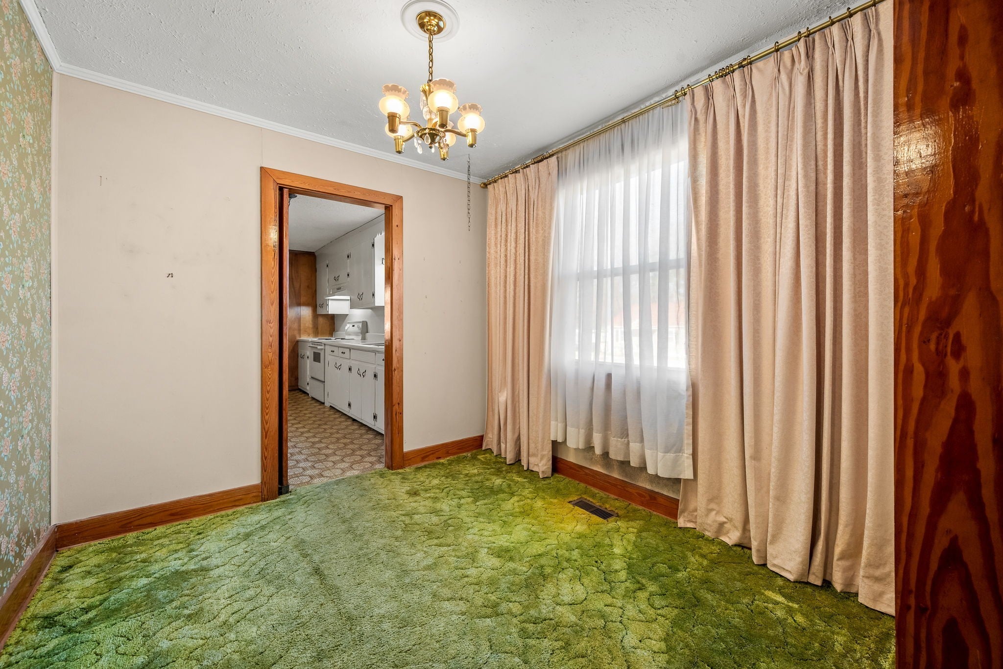 Charming cottage with lots of character featuring 2 bedrooms, 2 renovated bathrooms with heated tile floors, den with gas fireplace and built in bookcases, replacement windows, large utility room, 1 car carport with ramp or covered patio, 2 car detached garage/shop, storage building, and hardwood is under most of the carpet. Selling As Is - estate property.