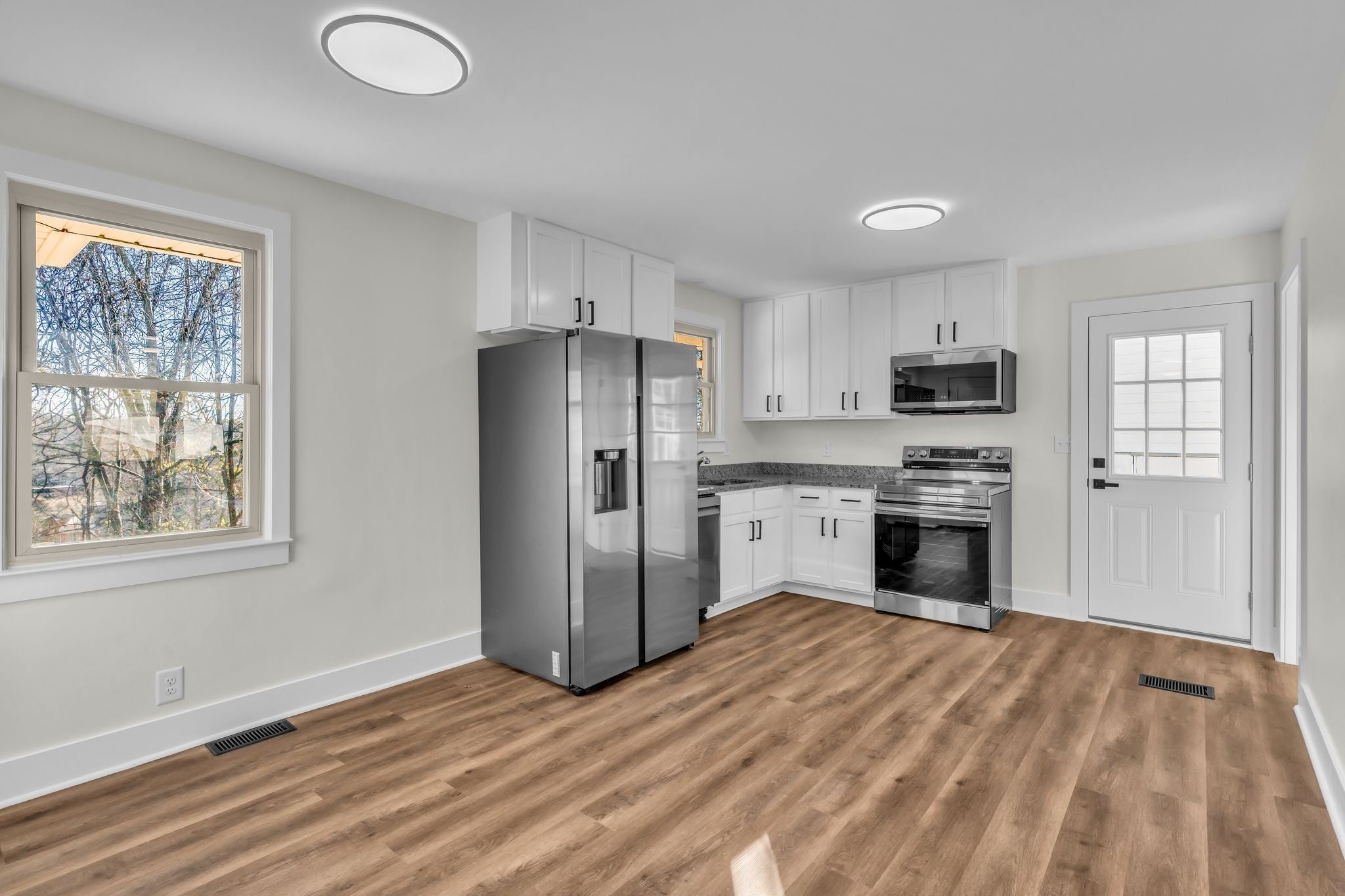 - Electric Oven, Electric Range, Dishwasher, Ice Maker, Microwave, Refrigerator, Stainless Steel Appliance(s)