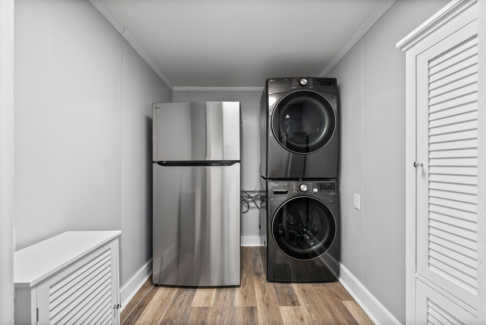 - Electric Range, Dryer, Microwave, Refrigerator, Stainless Steel Appliance(s), Washer