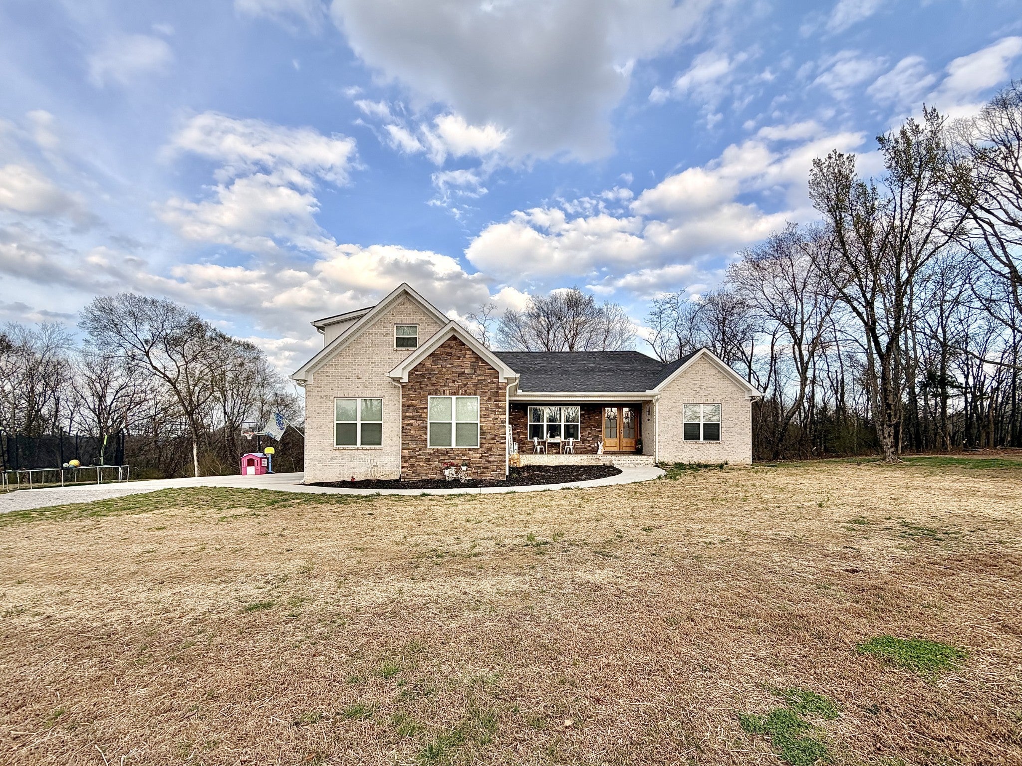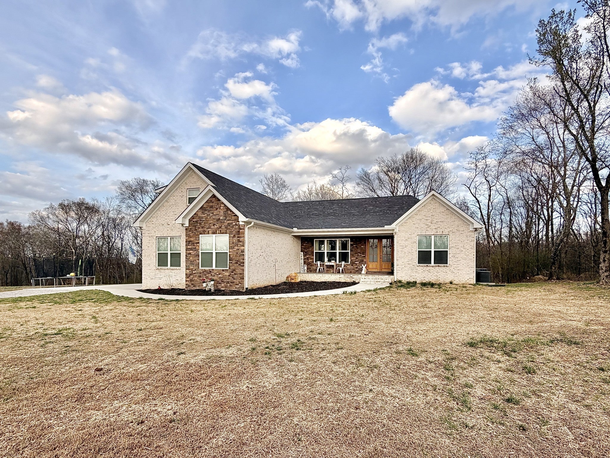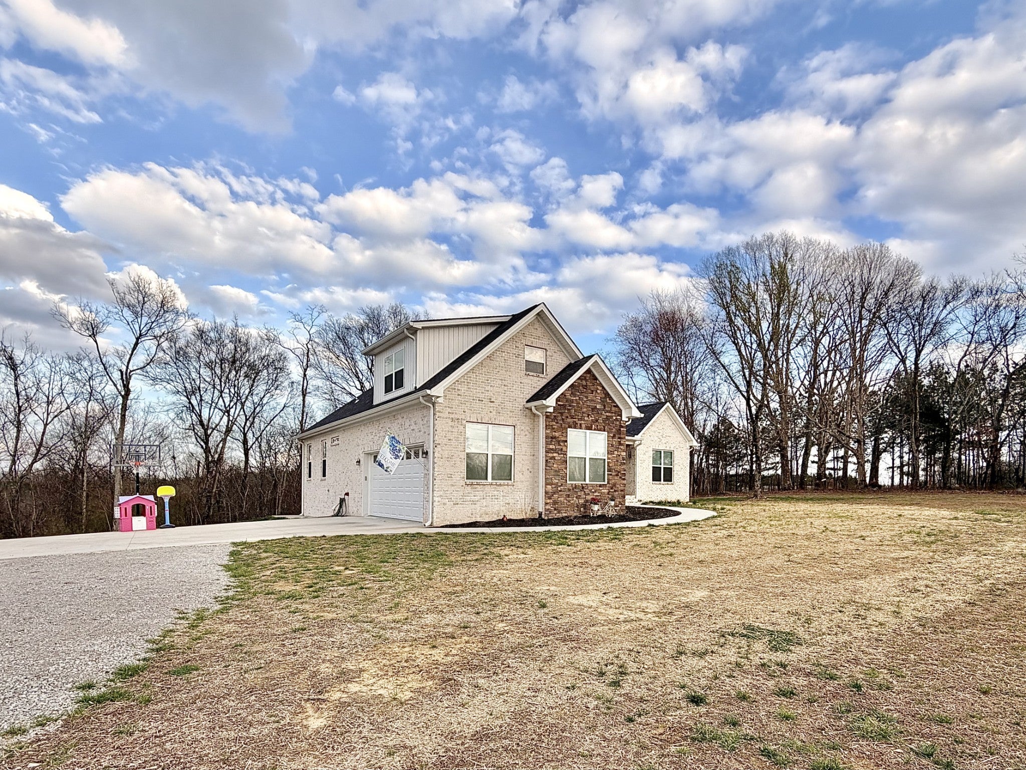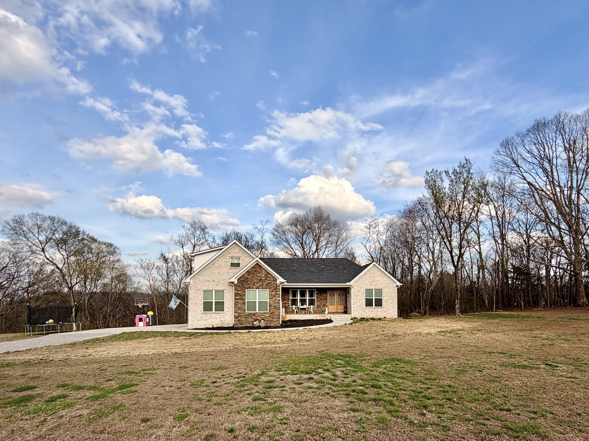Welcome to refined country living in one of Giles County’s most sought-after areas. This stunning, newly constructed all-brick home sits on a peaceful 2-acre tract and offers 3 bedrooms, 3 full bathrooms, a spacious bonus room, and 2,358 sq. ft. of thoughtfully designed living space. From the moment you arrive, the inviting 6x23 covered front porch with tongue-and-groove ceiling, stone accents, and recessed lighting sets the tone for the quality found throughout. Step inside through elegant 8-foot mahogany French doors to an open-concept living, dining, and kitchen area filled with natural light, soaring 18-foot vaulted ceilings, and beautiful oak hardwood floors. The show-stopping kitchen features custom two-tone maple cabinetry, quartz and granite countertops, under-cabinet lighting, tile backsplash, farm-style sink, stainless steel LG appliances, and an impressive batwing island with seating for six—perfect for everyday living and entertaining alike. The primary suite is a true retreat, offering a tray ceiling, spa-inspired ensuite with custom tile, and a generous walk-in closet. Two oversized guest bedrooms share a well-appointed hallway bath, while the expansive bonus room with its own private bathroom provides endless flexibility as a home office, guest suite, media room, or playroom. Enjoy outdoor living on the 16x14 rear deck, ideal for relaxing or hosting gatherings. Additional highlights include a large laundry/mudroom, a 526 sq. ft. garage, a 40x32 concrete parking pad, and wrap-around sidewalks connecting both front and rear porches. Conveniently located just 7 miles from Pulaski, 17 miles from I-65 Exit 14, and approximately one hour from Nashville and Huntsville. Utilities include Minor Hill water and Pulaski Electric System with high-speed internet. This home seamlessly blends modern luxury, thoughtful design, and peaceful rural living—an exceptional opportunity you won’t want to miss.