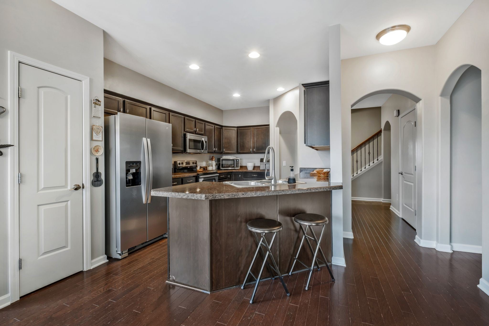 Welcome to 485 Callie Ave in Gallatin. This well-maintained 4-bedroom, 2.5-bath home offers 2,058 square feet of comfortable living space and was built in 2012. The open-concept layout features abundant natural light, hardwood flooring, and stainless steel appliances. The main-level primary suite includes a tray ceiling, upgraded carpeting, and an en-suite bathroom with tile flooring, garden tub, separate shower, double vanities, and a large walk-in closet. Upstairs offers three additional bedrooms along with a convenient office nook. Enjoy outdoor living in the privacy-fenced backyard, plus a 2-car attached garage. Conveniently located near shopping, dining, and major commuter routes, with neighborhood amenities including sidewalks, a pavilion, and a playground.