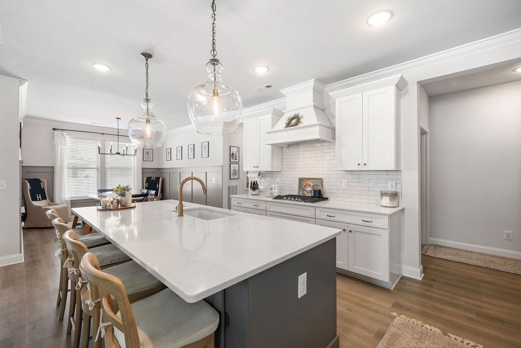Welcome to this beautifully upgraded home where style and function come together seamlessly. Step inside to discover stunning accent walls and elegant wainscoting in the primary suite, children’s bedroom, and breakfast nook, adding warmth and character throughout. Every bedroom features custom closets with no wire shelving. The kitchen offers a custom pantry with generous storage, a butcher block countertop, and an extra-wide island with additional storage underneath, making it perfect for both everyday living and entertaining. Cozy up by the fireplace, highlighted by beautiful built-ins, or enjoy the fully upgraded laundry room complete with cabinetry and a stylish backsplash. Step outside to the automatic screened-in porch and take in the epoxy-finished front and back porches. The entire downstairs is finished with gorgeous hardwood flooring. Thoughtfully designed and meticulously upgraded, this home truly has it all and is a must-see.