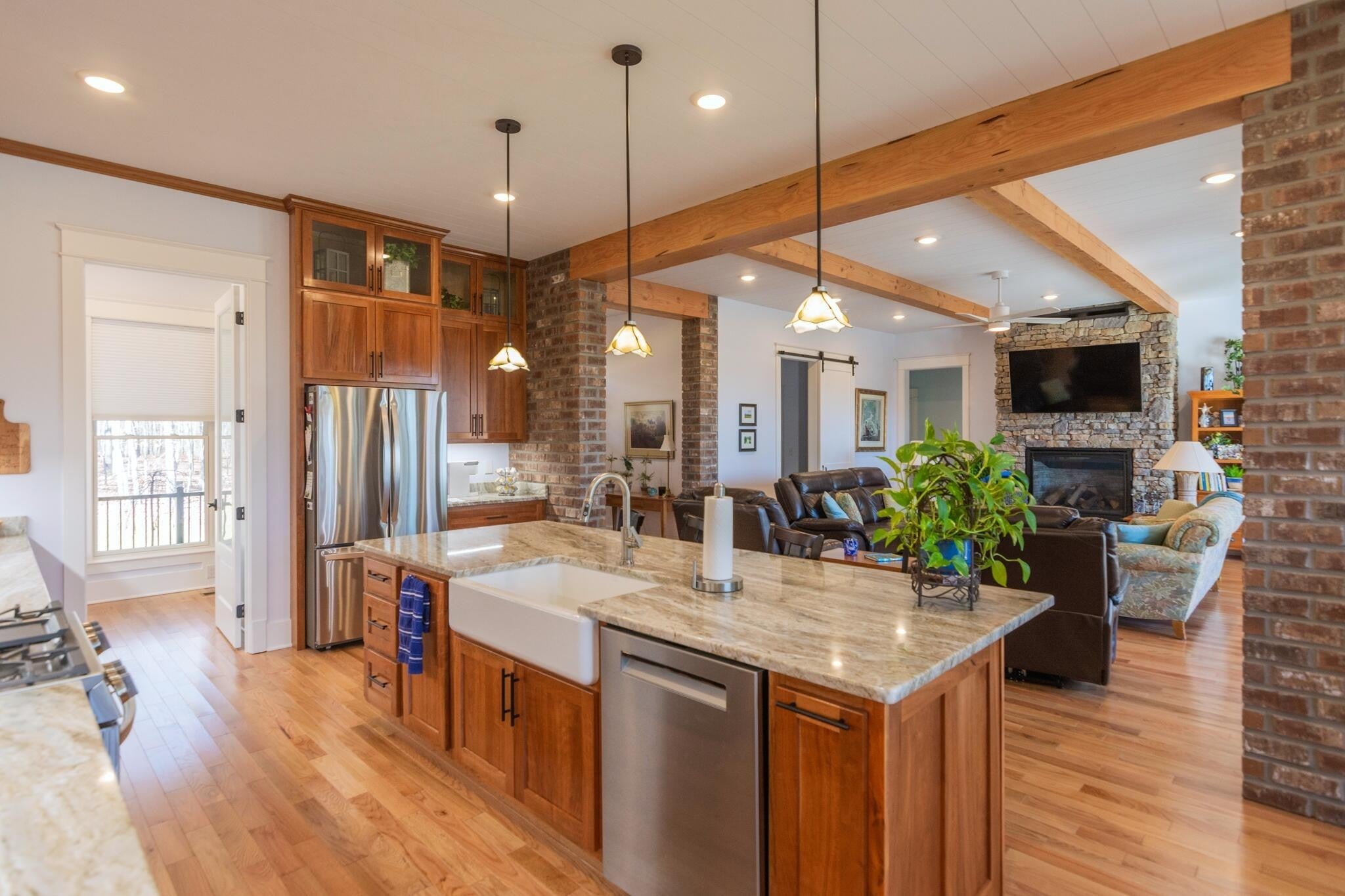 2025 Custom Mountain Retreat on 3.17 Acres in Fredonia Mountain Nature Resort. Brand-new custom home built in 2025 offering 2,971 sq ft of beautifully designed living space on 3.17 wooded acres with distant valley views. This stunning home features hardwood floors throughout, an open floor plan, and huge windows that provide abundant natural light. The spacious kitchen is a showstopper with custom cherry wood cabinets, quartzite countertops, stainless steel appliances, under-cabinet lighting, and a huge walk-in pantry, making it ideal for entertaining and everyday living. The living room features brick accents and a stacked-stone fireplace with gas logs, creating a warm and inviting focal point. The primary bedroom offers specialty beam ceilings and a large walk-in closet. Additional features include 4 bedrooms, 3 full baths with 2 half baths., can lighting throughout, a large laundry room, and a beautiful custom front door. Upstairs is a spacious bonus room with a full bathroom, perfect for guests, a home office, or recreation space. Enjoy outdoor living on the large partially covered rear deck and the convenience of an oversized 2-car garage. Located in Fredonia Mountain Nature Resort, a 3,500-acre gated nature community offering a clubhouse, 14-acre private lake, parks, ponds, miles of walking trails, a scenic creek, and a covered bridge—this home offers the perfect blend of luxury, privacy, and nature.