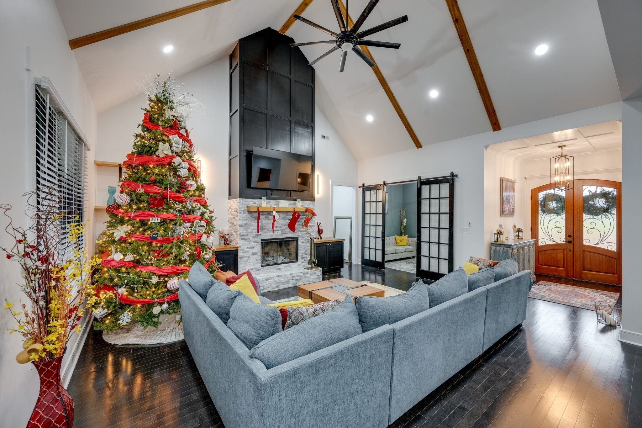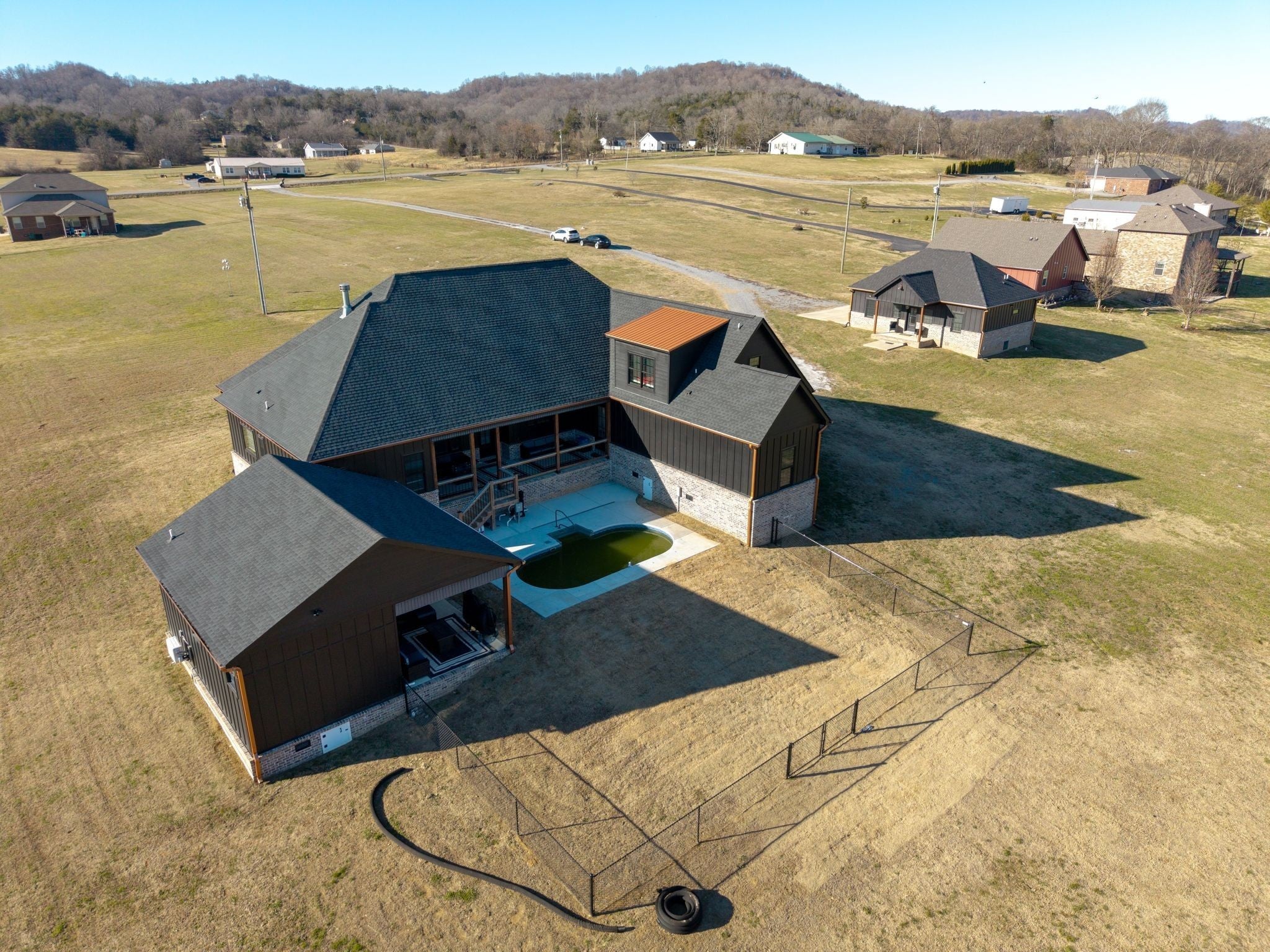 A rare opportunity to purchase two separately deeded properties—405 and 407 Shelbyville Hwy—being sold as a package, each with its own MLS number and separate pricing which offers exceptional flexibility for ownership and future use. 405 sits on 5.1 acres and 407 sits on 4.34 acres. 405 Shelbyville Hwy serves as the primary residence and is thoughtfully designed for both everyday living and entertaining. The home features wood flooring throughout, a formal dining room with coffered ceilings, and a great room with soaring ceilings, stacked-stone wood-burning fireplace, and custom built-in cabinetry. The isolated primary suite offers a spa-like retreat with a soaking tub and tiled shower. Most areas of the home feature 8-foot 5-panel doors, adding to the upscale architectural feel. The chef’s kitchen is equipped with a built-in refrigerator, induction cooktop, double wall ovens, wine cooler, warming drawer, custom cabinetry, and recessed lighting. The pantry includes built-in space designed for a double-sided refrigerator. A well-appointed laundry room features designer tile flooring, solid surface countertops, and an apron sink, complemented by a custom-built drop zone for daily organization. Outdoor living is exceptional with a 31-foot patio overlooking a private backyard, an in-ground pool, and a pool house with workout equipment that will remain with an acceptable offer. An outdoor kitchen with smoker and grill, copper gutters, and an outdoor storage building complete the property’s exterior amenities. 407 Shelbyville Hwy is a 2-bedroom, 2-bath residence offering approximately 1,046 square feet and provides excellent flexibility as a guest house, multigenerational living option, or private retreat. This property was previously used as a short-term rental, presenting income-producing potential, subject to buyer verification of local regulations. 407 Shelbyville is listed at $275,000.