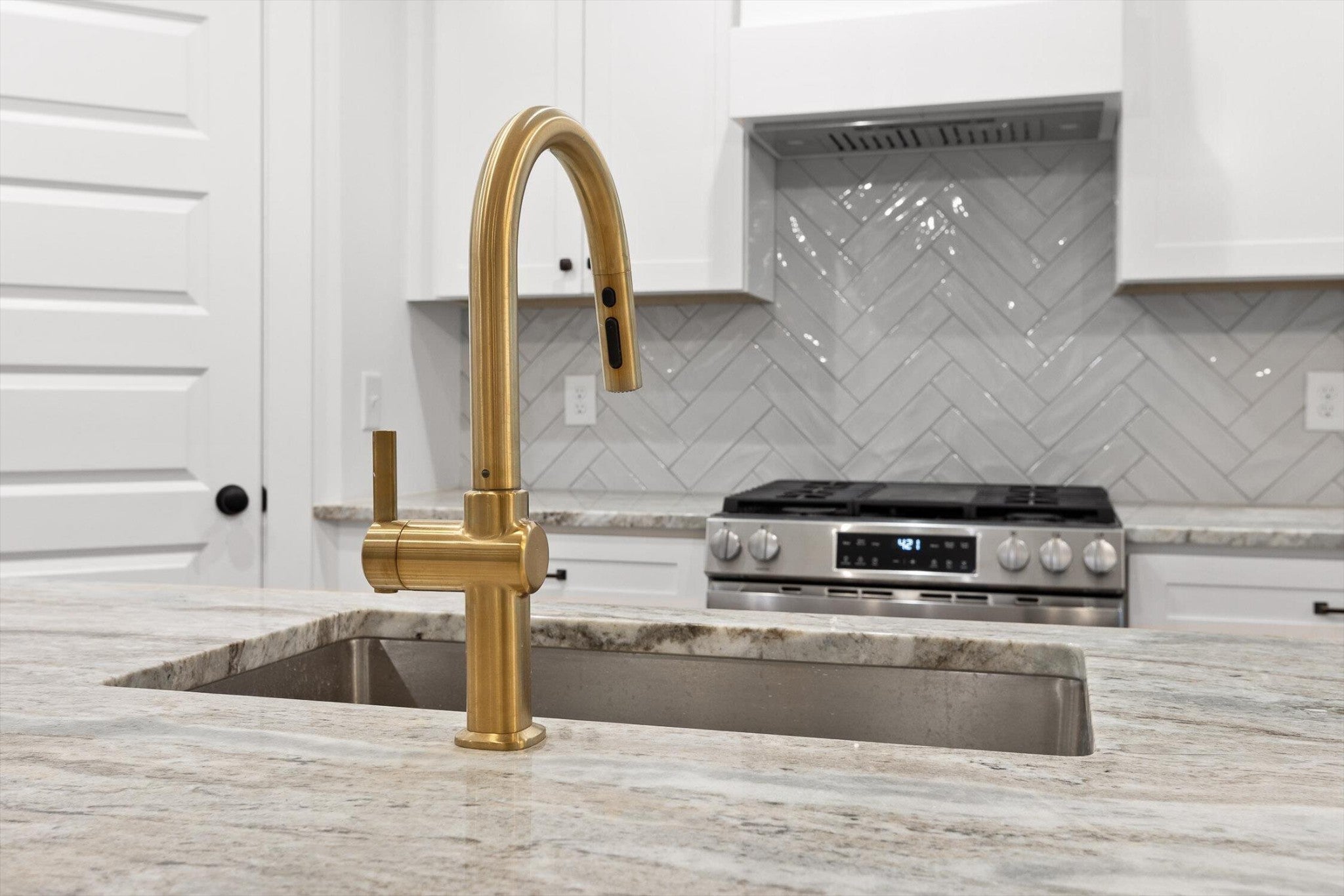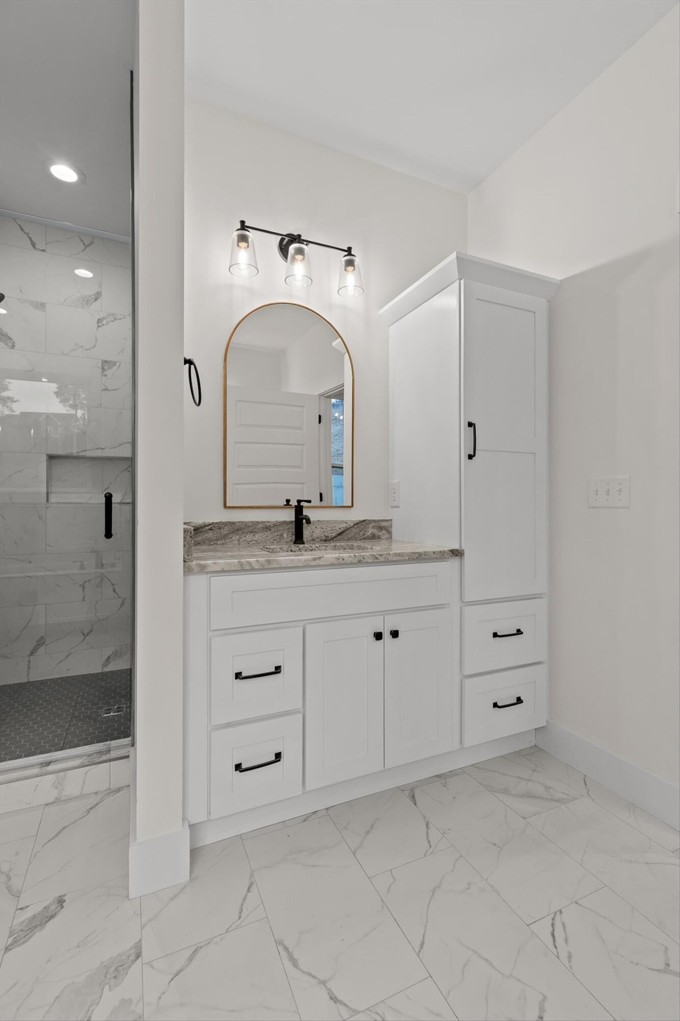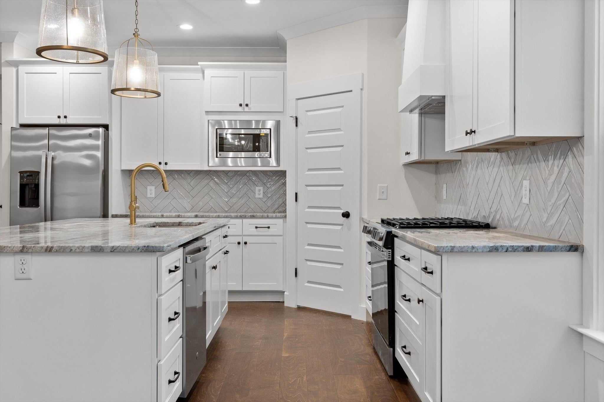 This brand-new home offers timeless character paired with modern comfort, located just off E. Brainerd Road in a peaceful, walkable neighborhood and directly across the street from the community pool—an ideal setting for both convenience and lifestyle. From the inviting front porch to the clean trim lines, metal roof, and mixed exterior siding, the exterior delivers strong curb appeal. Step inside to a bright, open-concept main level anchored by a vaulted living room centered around a cozy gas fireplace—perfect for gathering with family and friends. The living space flows seamlessly into the modern kitchen, which features a large center island, stainless steel appliances, a gas stove, pantry, and ample workspace for entertaining. French doors open to the back porch, creating a smooth transition to outdoor living and a fenced-in backyard ideal for pets or play. The main-level primary suite is a private retreat with a treyed ceiling and abundant natural light. The spa-inspired primary bathroom includes a large soaking tub, a spacious walk-in shower, and separate vanities with built-in storage. A laundry room with a sink adds everyday convenience. Also on the main level is a private guest suite with its own bath—perfect for an in-law suite, home office, or study. Upstairs, two generously sized bedrooms with large closets share a Jack-and-Jill bathroom. A spacious loft provides flexible use as a home office or family TV area, while an additional bonus room and full bathroom offer even more living space. With its new construction, thoughtful layout, quality finishes, and access to community amenities in a walkable neighborhood, this home offers a perfect blend of comfort, style, and modern living.