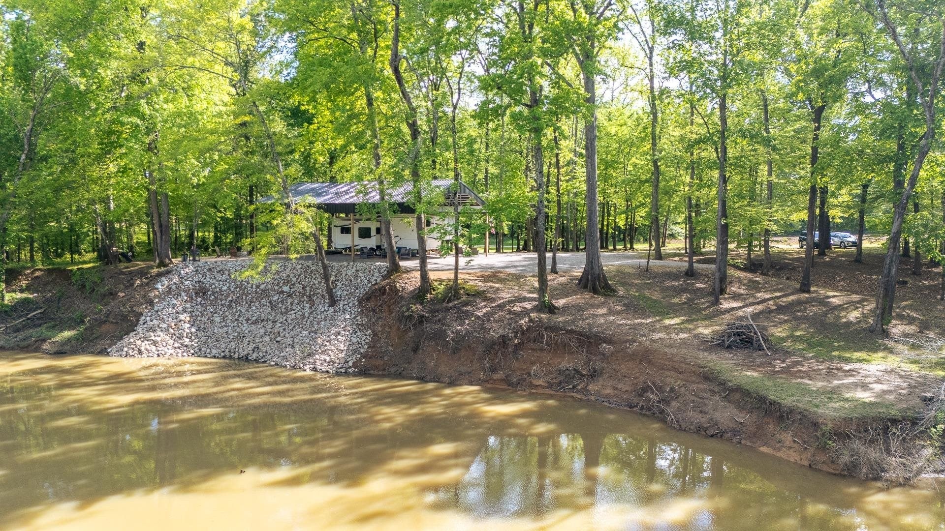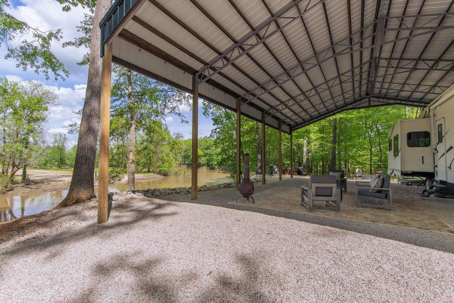 If you're looking for a serene camping getaway, these waterfront recreational lots are already set up and ready for summer fun! This creekside property offers direct access to the majestic Tennessee River. The lot includes a new 36x50 canopy cover with a 12x12 brick paver patio. A new electrical panel (2024), public water, and septic system are already in place. The gravel driveway provides ample parking and also space for a second RV with a second water hookup. A portion of the bank has already been rip-rapped.