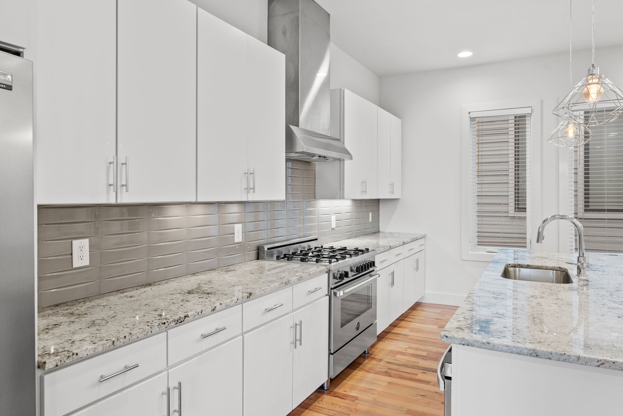 - Range, Dishwasher, Disposal, Microwave, Refrigerator, Stainless Steel Appliance(s)