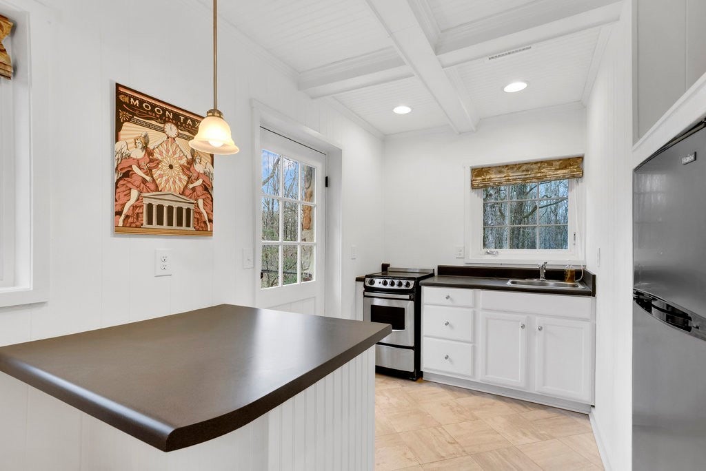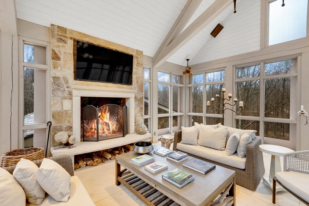 Nestled in the very heart of Sewanee, just one block from the iconic All Saints’ Chapel, this exquisitely renovated 1900s stone cottage offers a rare blend of timeless Southern charm and refined modern luxury. Thoughtfully restored with an unwavering commitment to quality, the main residence welcomes you from its inviting front porch into sun-drenched interiors adorned with warm original hardwood floors, a stunning gas fireplace, and an abundance of natural light. The gracious dining room—perfect for elegant family dinners or intimate gatherings—features a built-in bar that effortlessly elevates entertaining. The open, spacious kitchen is a true showpiece, boasting custom cabinetry, striking quartz countertops, and a seamless flow into the heart of the home. The serene primary suite is a private retreat, where mornings begin with soft mountain sunrises and evenings end in comfort, complete with a beautifully appointed ensuite bath. Upstairs, guests enjoy a secluded bedroom, while children will delight in the charming bunk room—each space thoughtfully designed for comfort and character. Undoubtedly, the crown jewel of the home is the extraordinary back porch. With vaulted ceilings, exposed beams, and a custom-designed chandelier, this space is nothing short of spectacular. Designed for year-round enjoyment, it features a stone wood-burning fireplace, ceiling-mounted heaters, and automatic drop-down winter screens—making cool Sewanee evenings both cozy and unforgettable. Adding to the property’s exceptional appeal is a beautifully appointed guest cottage, complete with a micro kitchen, living area, bath, a spacious bedroom accommodating a king-sized bed, ideal for guests, extended family, or rental opportunities. Rich in history, elevated in design, and perfectly positioned within Sewanee’s most coveted setting, this remarkable property embodies the Southern Living lifestyle—an elegant yet effortless retreat that discerning buyers will instantly call home.